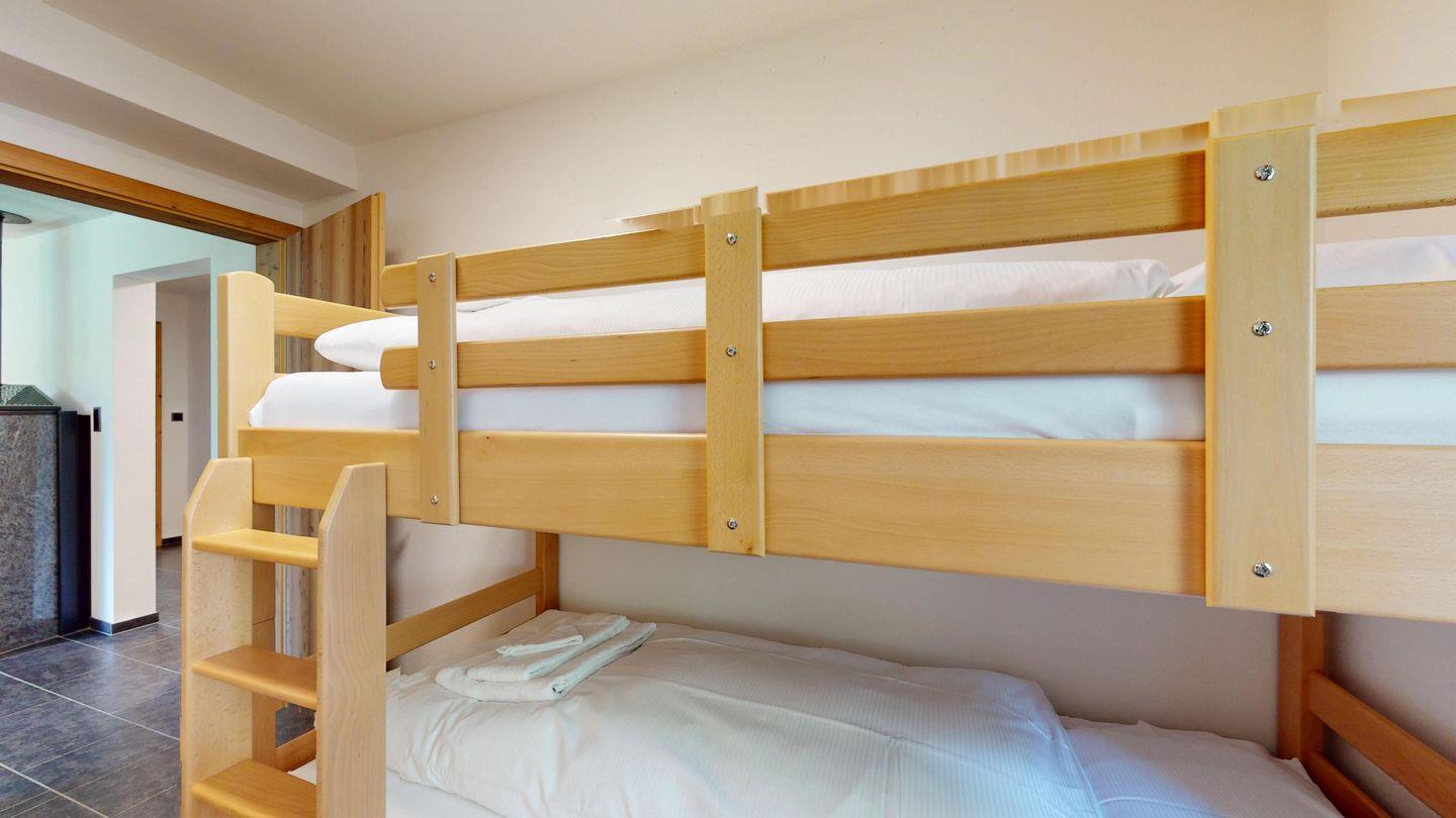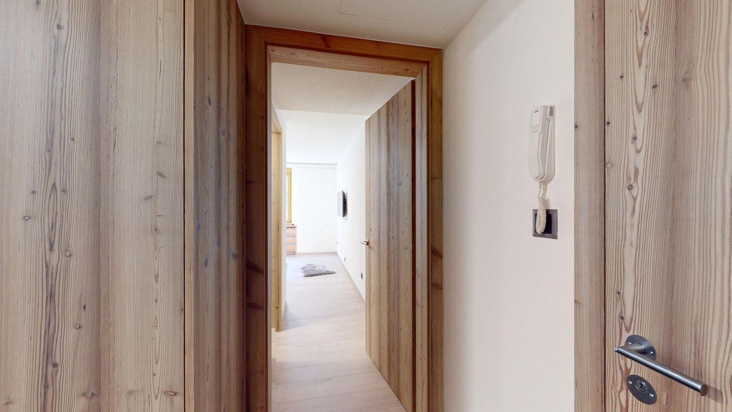 Moderne und sehr geschmackvoll eingerichtete 4½-Zimmerwohnung im Erdgeschoss. Eingang mit Garderobe. Wohnzimmer mit TV, Schwedenofen und Ausgang auf die Terrasse. Offene Küche mit Essbereich, Induktionsherd, Geschirrspüler und Ausgang zum Wintergarten. Zwei Doppelzimmer mit TV, eines mit Ausgang zum Balkon, eines mit begehbarem Kleiderschrank. Ein Schlafzimmer mit Etagenbett. Zwei Badezimmer mit Dusche, WC, Lavabo. Eigene Waschmaschine und Tumbler. Ein Garagenstellplatz ist ebenfalls vorhanden. Haustiere sind nicht erlaubt.