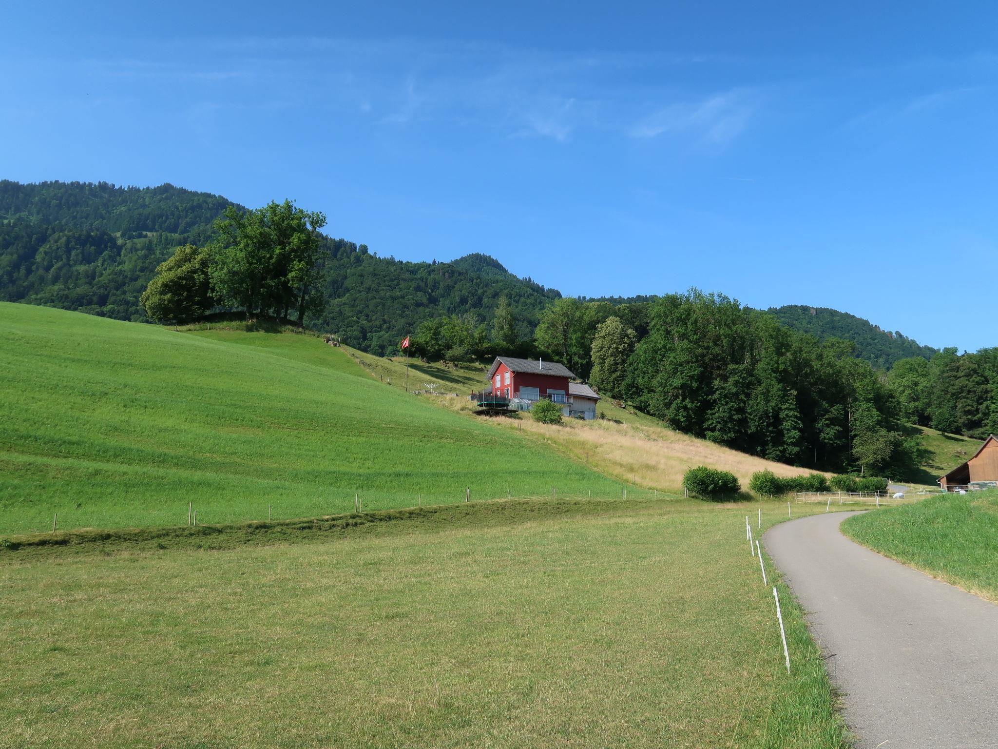 Comfortable single-family house, 3 storeys, built in 2014, surrounded by meadows and fields. On the outskirts, 700 m from the centre, in a secluded, quiet, sunny position, 700 m from the lake, in a cul-de-sac, in the countryside. In the house: storage room for skis, central heating system. Motor access to the house. Parking at the house. Grocery, supermarket, restaurant 700 m, bus stop 700 m, railway station "Reichenburg" 1.2 km, outdoor swimming pool 5 km, indoor swimming pool 15 km, bathing lake 700 m. Well-known ski regions can easily be reached: Flumserberge 25 km, Hoch Ybrig 35 km, Amden 20 km. Please note: the owner lives in the same residence. covered shelter for bicycles.