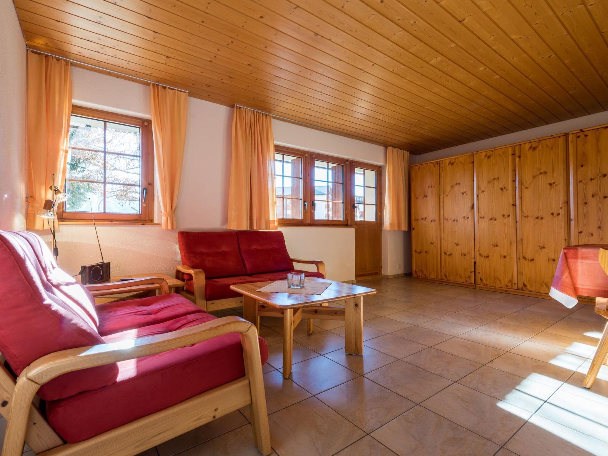 The 2 1/2-room apartment is suitable for 1 to 4 people and features a separate bedroom as well as a living area with a kitchen and two folding beds. A highlight is the south-facing balcony with unobstructed views of the Valais four-thousanders. The apartment is non-smoking, very well-maintained and clean. Amenities include Wi-Fi, satellite TV, an elevator, a washing machine and a dryer. In winter, a closed ski room with a modern boot drying system and disinfection is available. In summer, a lawn with a barbecue area in front of the house invites you to linger.