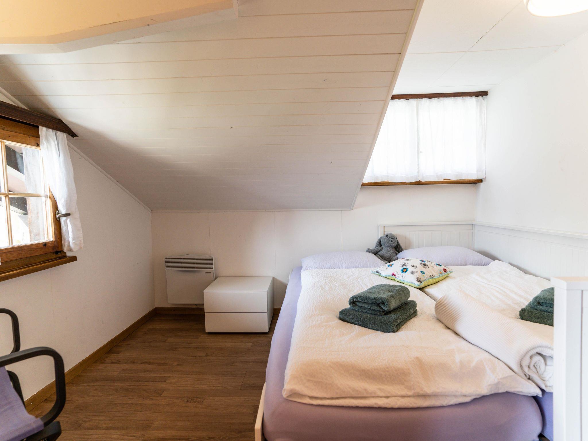 The 3 1/2-room apartment accommodates up to six people in an area of 46 m². The kitchen is equipped with a dining table and a Nespresso coffee machine. For restful sleep, there is a bedroom with a double bed, another with two single beds and a room with a sofa bed (1.60 x 2 meters). An additional sofa is available in the living room. The bathroom features a shower and a toilet. For entertainment and connectivity, there is a TV and free Wi-Fi. A south-facing balcony, accessible from the double room and the living room, completes the offer.