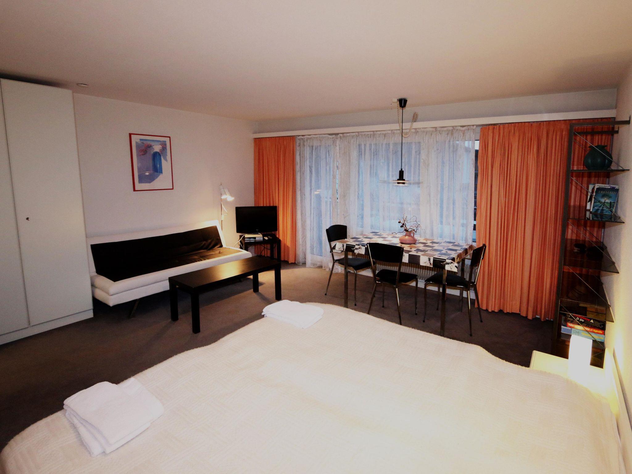 Studio located in quiet and sunny area, consisting of 1 bed-sitting room with 2 beds, kitchen, 1 bath/WC and south-facing balcony with amazing mountain view. Free Wifi is available. Only 10 walking minutes to the centre & ski station. In winter there is a bus station just in front of the house. The bus passes every 20 minutes a drives stops outside the cable car station.