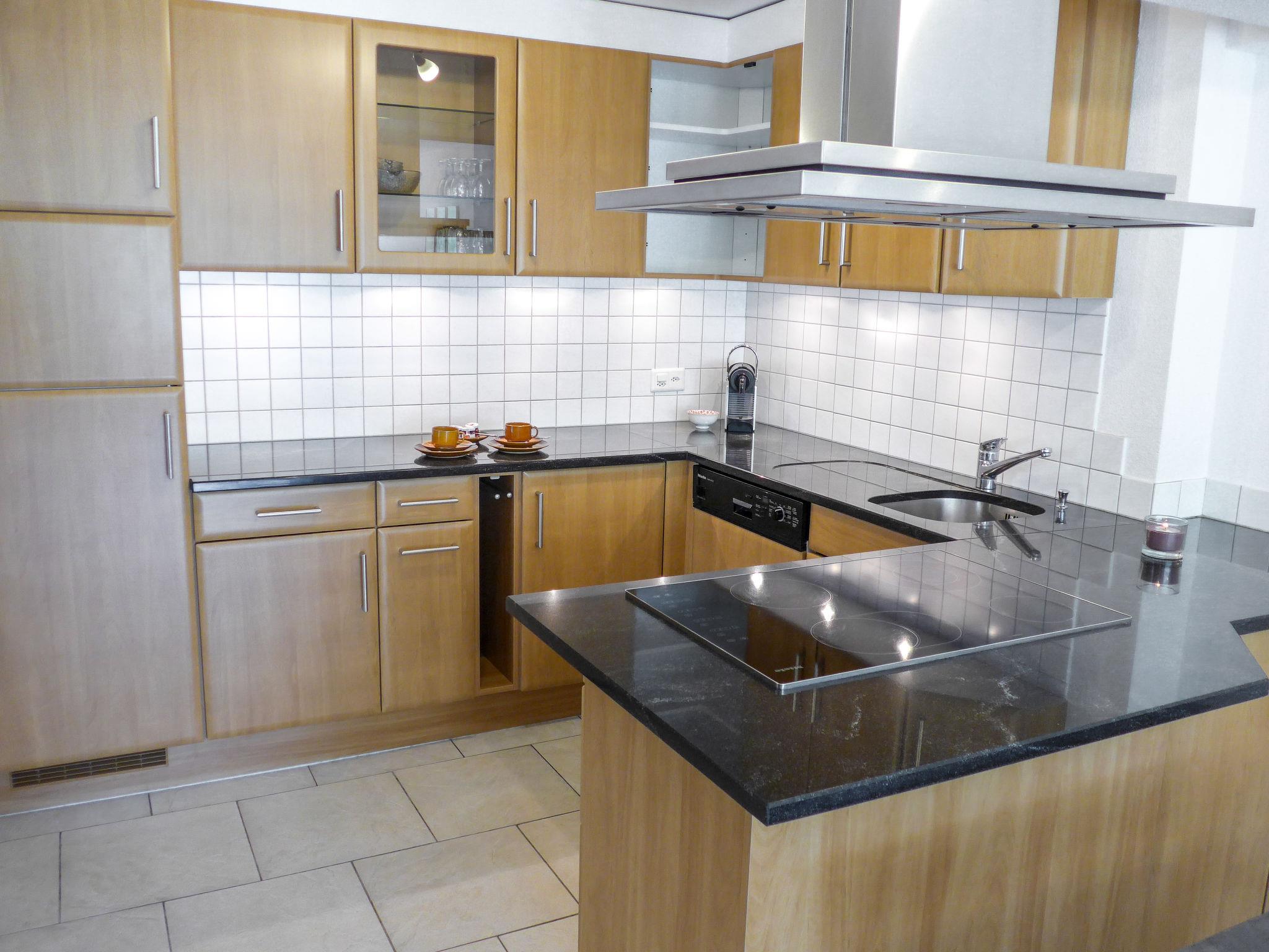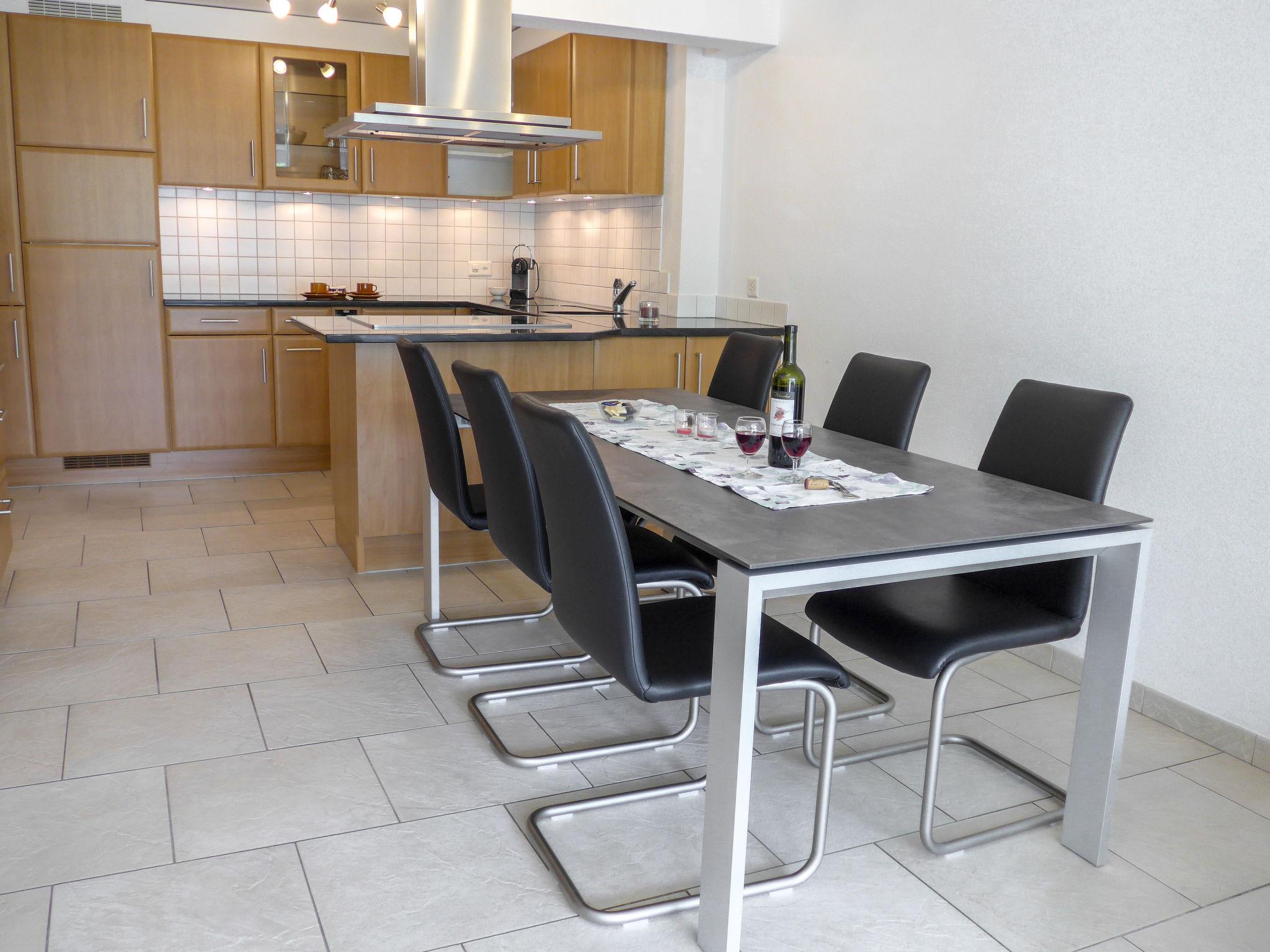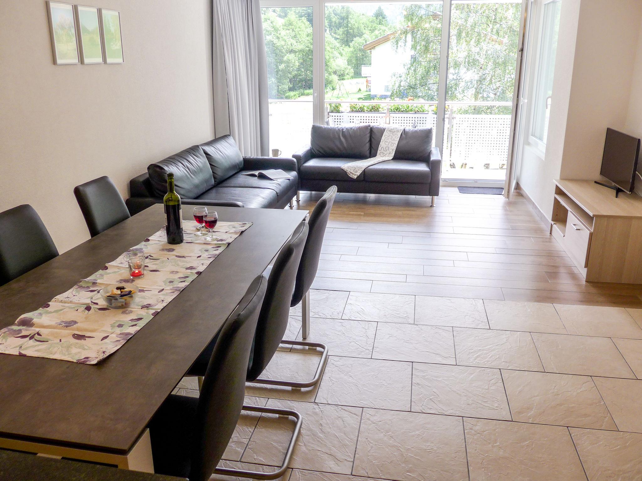 4-room apartment 105 m2 on 2nd floor. Renovated in 2015, modern furnishings: living/dining room with satellite TV and radio. Exit to the balcony, south facing position. 1 room with 2 beds (90 cm, length 190 cm). Exit to the balcony, west facing position. 1 room with 2 beds. Exit to the balcony, south facing position. 1 room with 2 beds (90 cm, length 190 cm). Open kitchen (oven, dishwasher, 4 ceramic glass hob hotplates, toaster, microwave, electric coffee machine, Capsules for coffee machine (Nespresso) extra, fondue Set (cheese)) with dining table. Bath/WC, shower/WC. Floor heating. Balcony, south facing position and west facing position. Terrace furniture. Very beautiful view of the mountains. Facilities: baby cot, hair dryer. Internet (WiFi, free). Parking (1 car). Please note: non-smokers only. Maximum 1 pet/ dog allowed.
