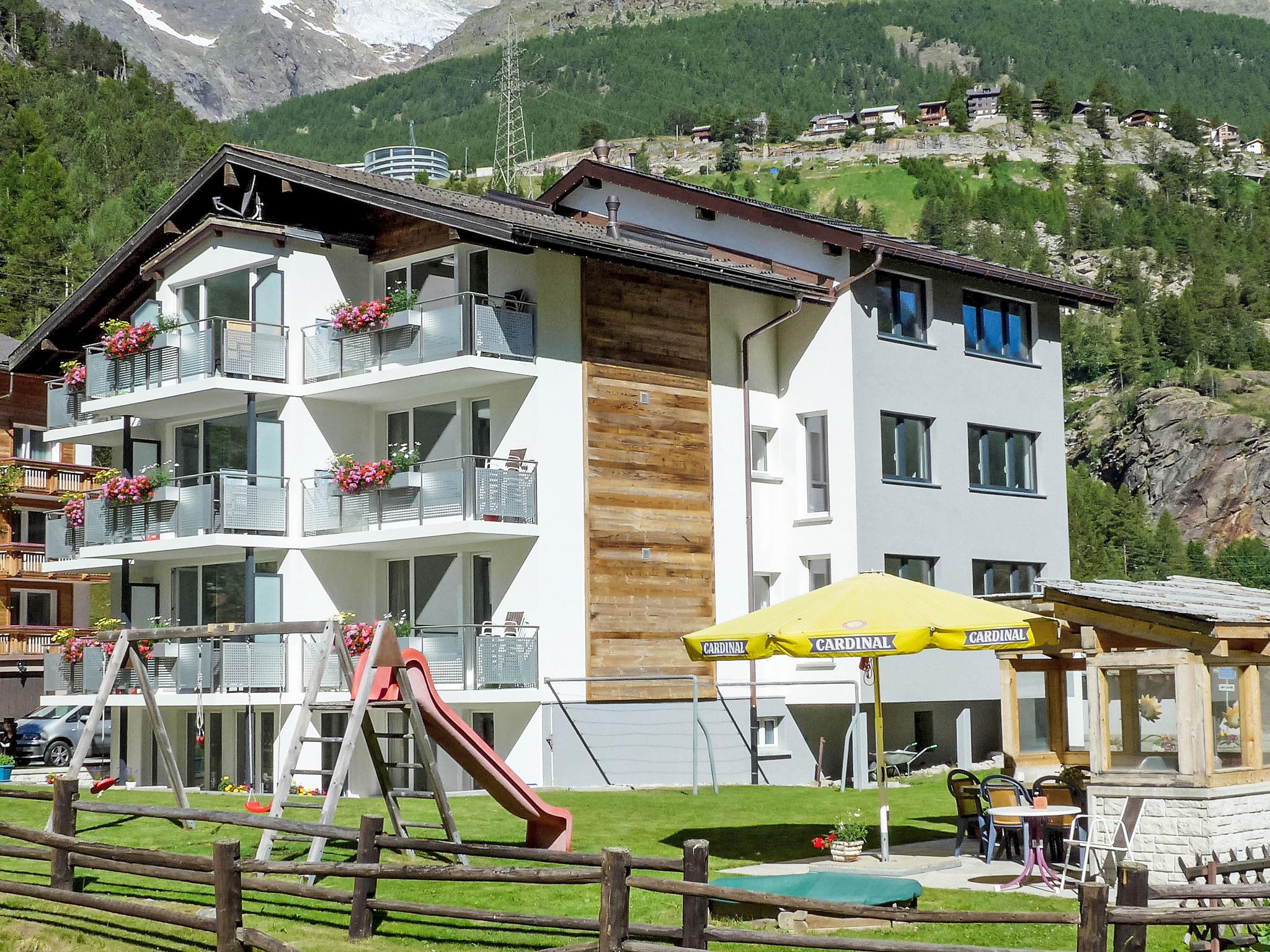 Apartment block "Amici", 1'590 m a.s.l., 4 storeys. Outside the resort, 1.5 km from the centre of Saas Grund, in a quiet, sunny position, 1.5 km from the skiing area. For shared use: lawn for sunbathing. Barbecue, children's playground (slide, swing, sandbox). In the house: storage room for skis, central heating system, washing machine, tumble dryer (for shared use, extra). Motor access to the house. Parking at the house. Shop 1.5 km, bus stop 100 m. Cable car 1.5 km, gondola lift 1.5 km, skisport facilities 1.5 km, slopes 1.5 km, ski school 1.5 km, cross country ski track 50 m, ice rink 1.5 km. Please note: the owner lives on the same property. Additional accommodations can be booked. Please note: Non-smoking house. The SaastalCard offers various discounts on cable cars and free regional buses in the Saas Valley. One parking space per apartment is included, any additional parking spaces (CHF 5.00/day) are available only upon request and subject to availability.