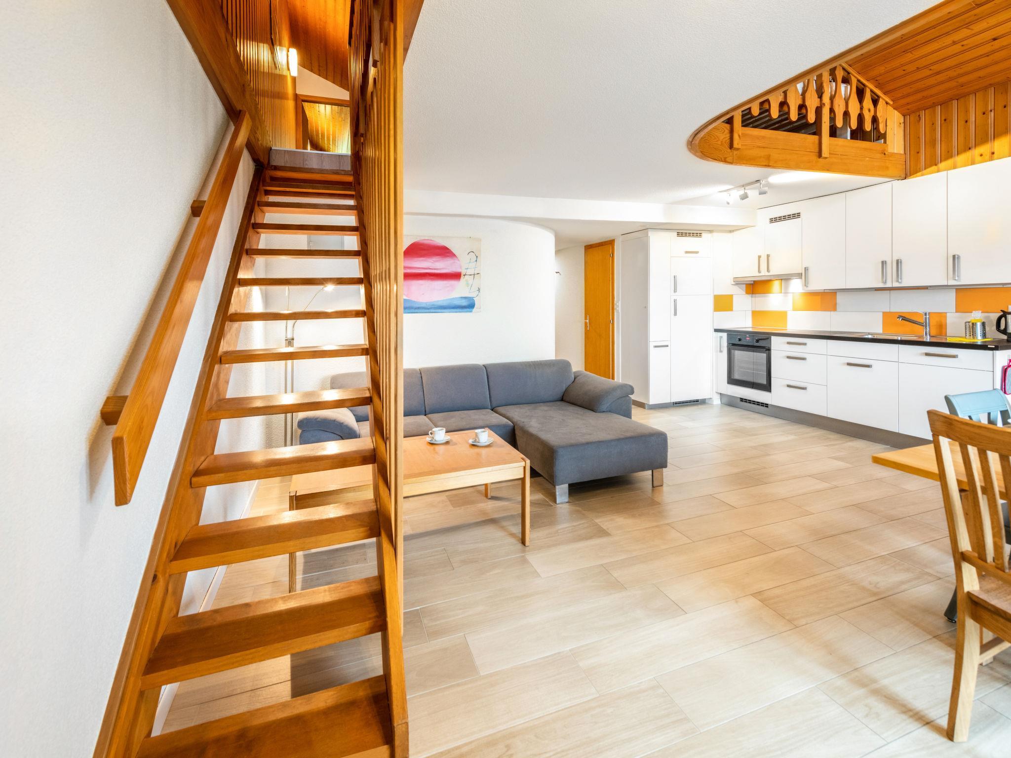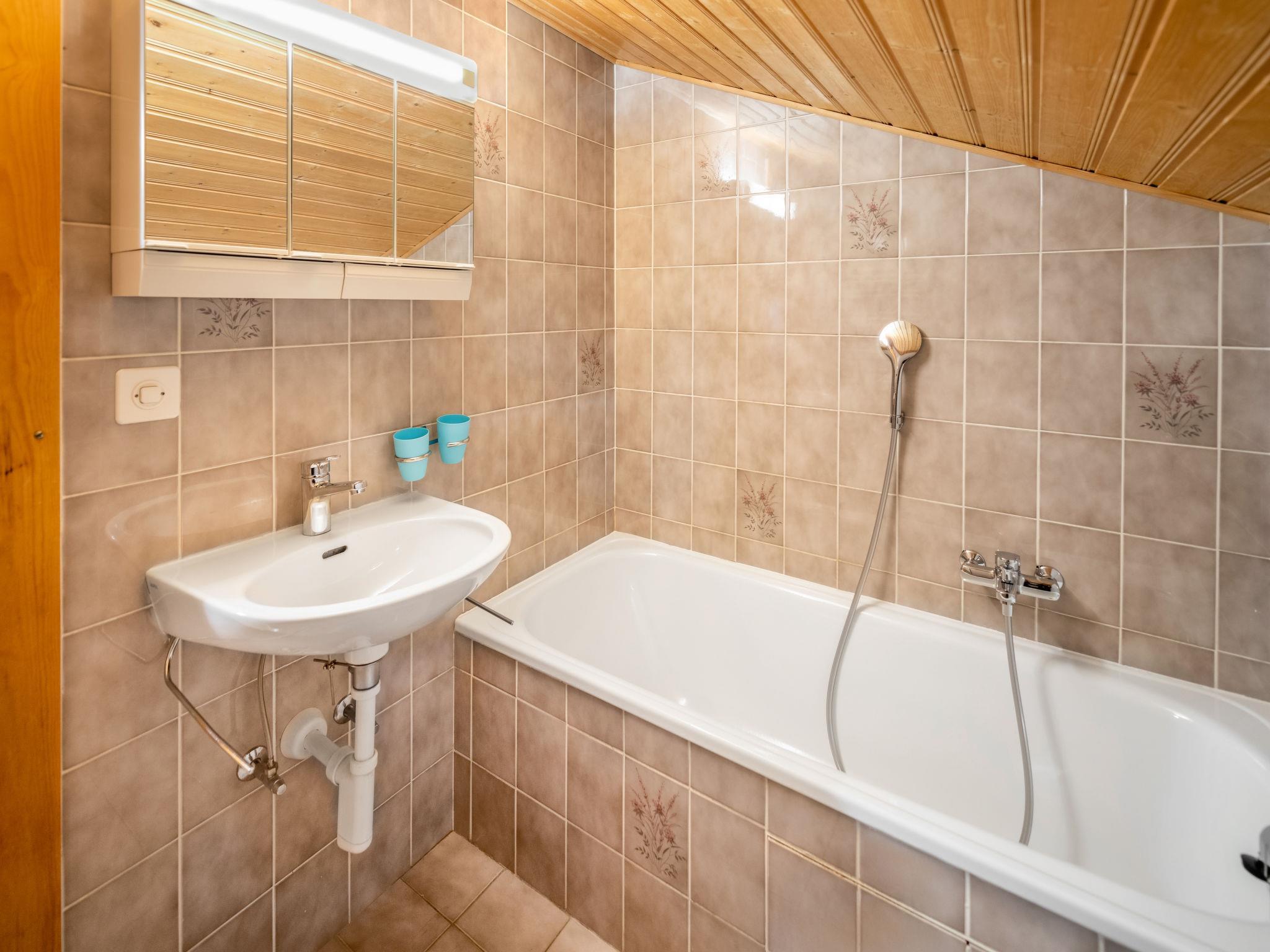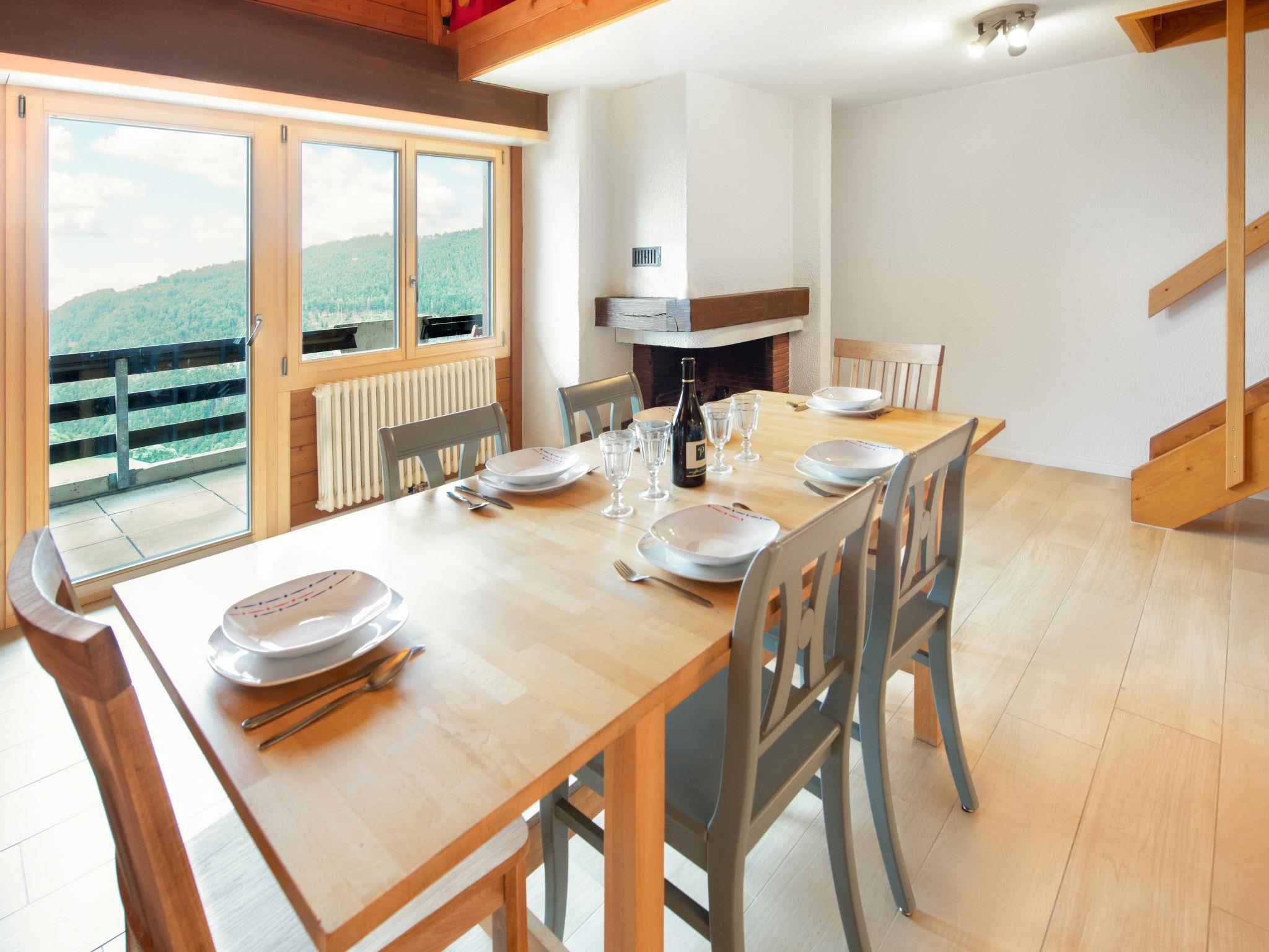 3-room apartment 105 m2 on 2 levels on 3rd floor, south facing position. Comfortable and cosy furnishings: living/dining room with open-hearth fireplace and dining table. Exit to the balcony. 1 double bedroom with 1 double bed. Open kitchen (oven, dishwasher, 4 induction hot plates, toaster, kettle, microwave, electric coffee machine). Bathroom, sep. WC. Upper floor: 1 room with sloping ceilings with 3 beds. Open gallery with sloping ceilings with 1 bed. Exit to the balcony. Bathroom, sep. WC. Balcony, small balcony. Balcony furniture. Marvellous view of the mountains, the valley and the countryside. Facilities: hair dryer. Internet (WiFi, free). Parking at the house. Please note: suitable for families. Non-smokers only. Maximum 1 small pet/ dog allowed. Instead of an enclosed bedroom, some sleeping areas are located in an open-plan area (gallery, alcove, etc.).