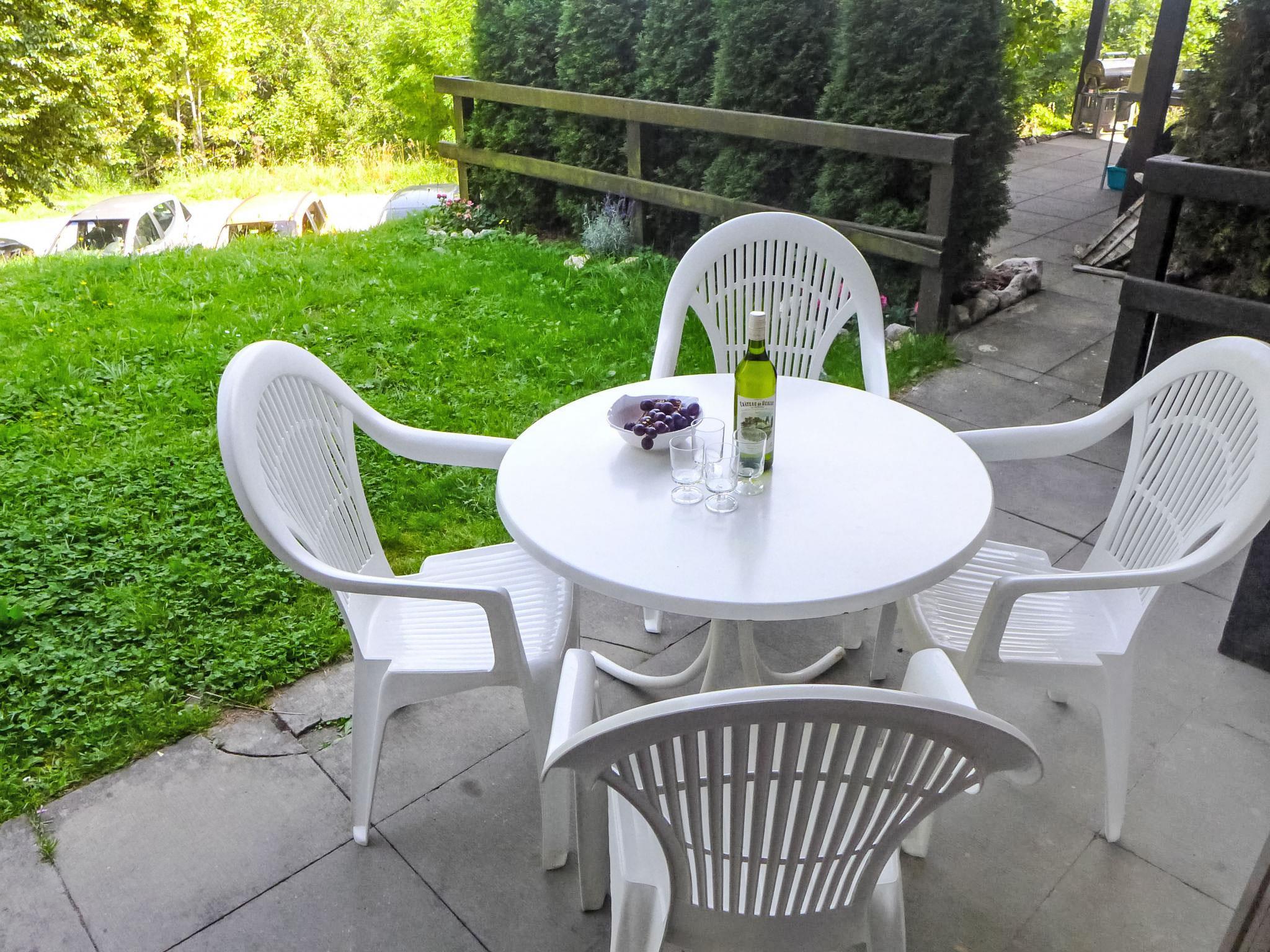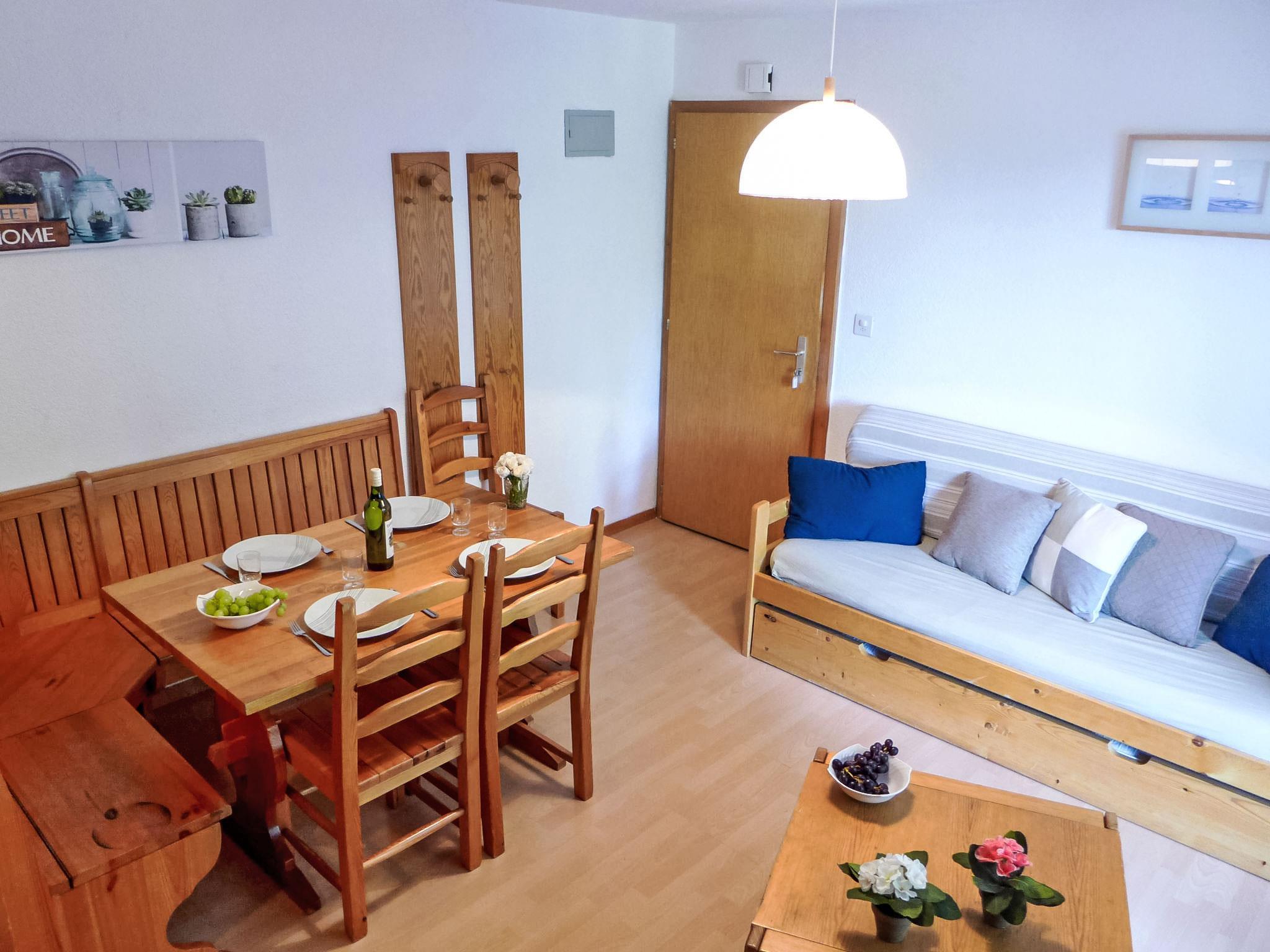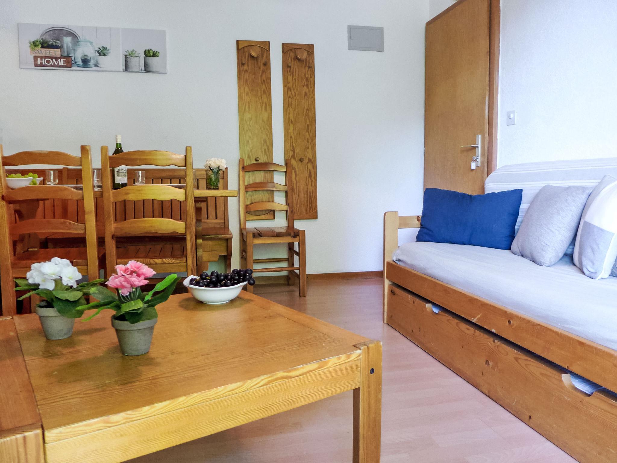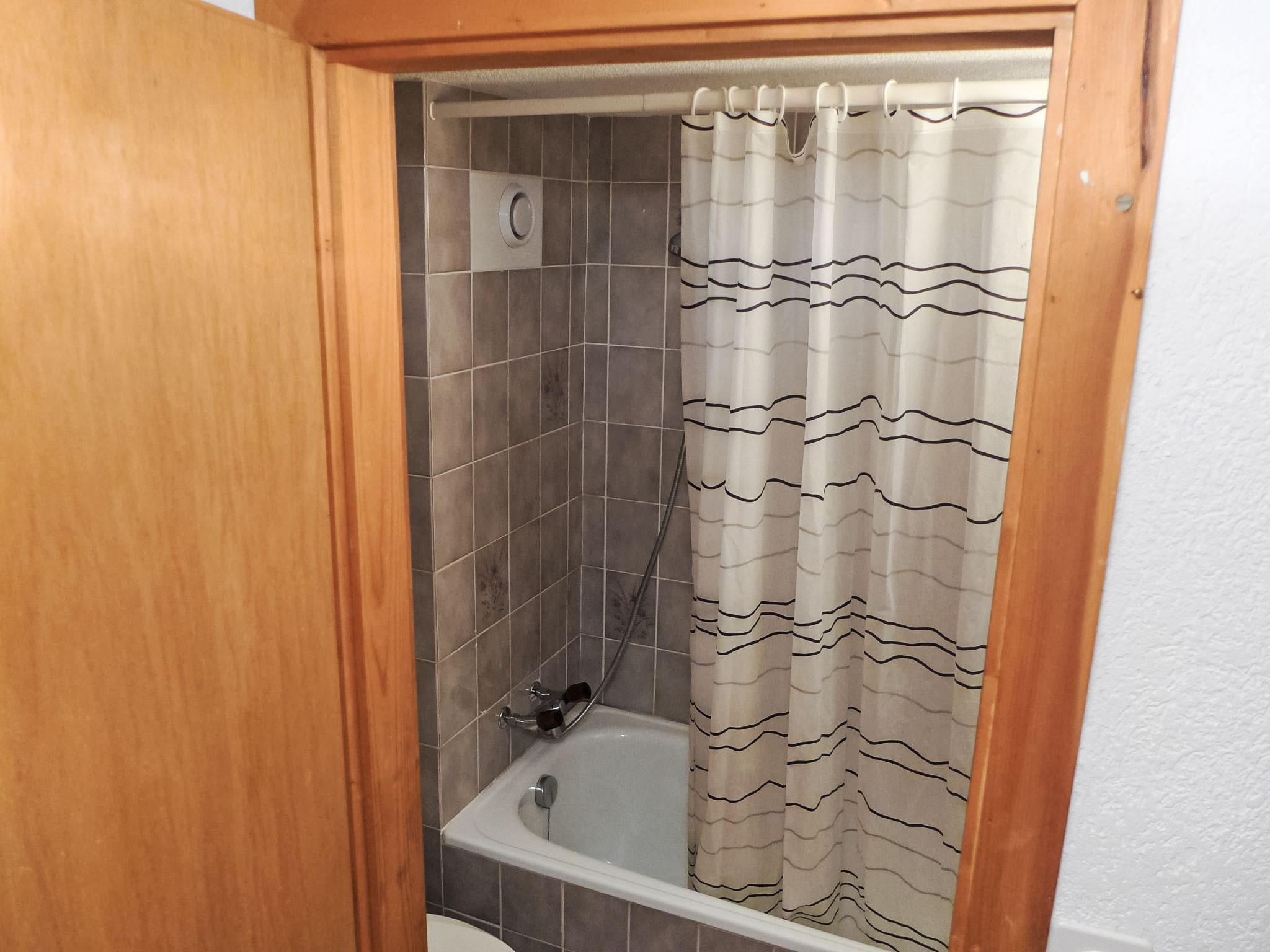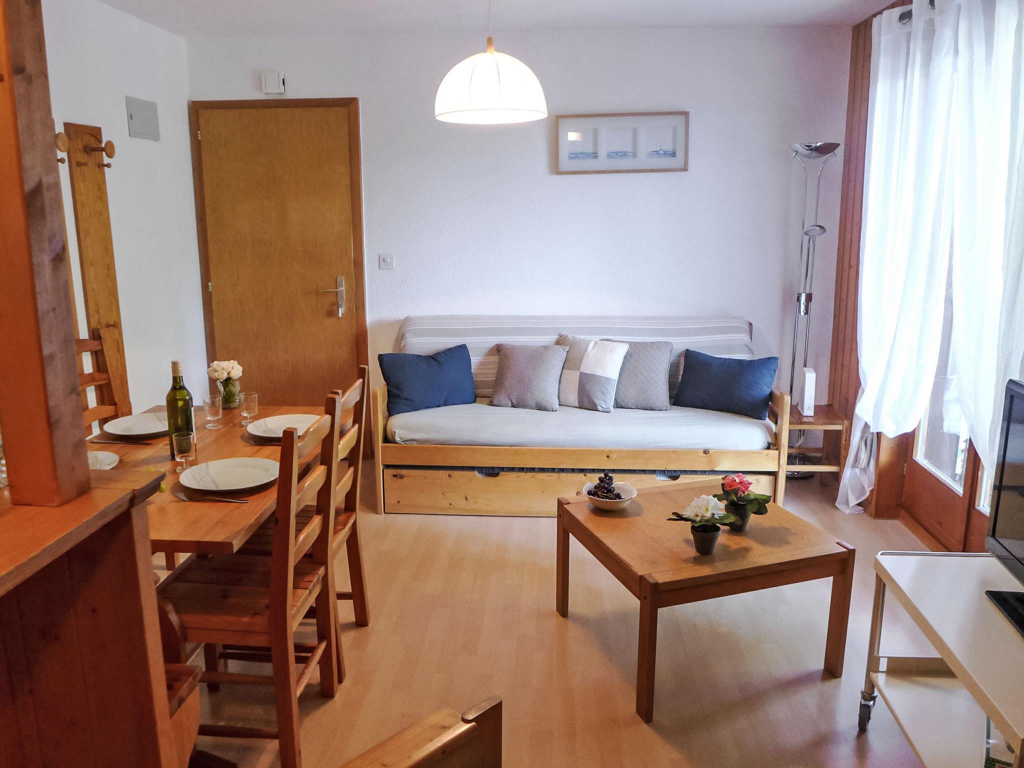 3-room apartment 72 m2 on 3 levels, on the ground floor, north-east facing position. Simple and practical furnishings: living/dining room with 1 sofabed, Scandinavian wood stove, dining table, cable TV and heating stove. Exit to the terrace. Kitchenette (4 hot plates, oven, toaster, kettle, fondue Set (cheese)). Heating. Upper floor: 1 room with 1 french bed (140 cm, length 190 cm). Exit to the balcony. Bath/WC. 2nd upper floor: 1 room with sloping ceilings with 2 beds. Shower/WC. Balcony, terrace. Terrace furniture. Partial view of the mountains and the valley. Facilities: Internet (WiFi, free). Parking (fenced). Maximum 1 pet/ dog allowed.
