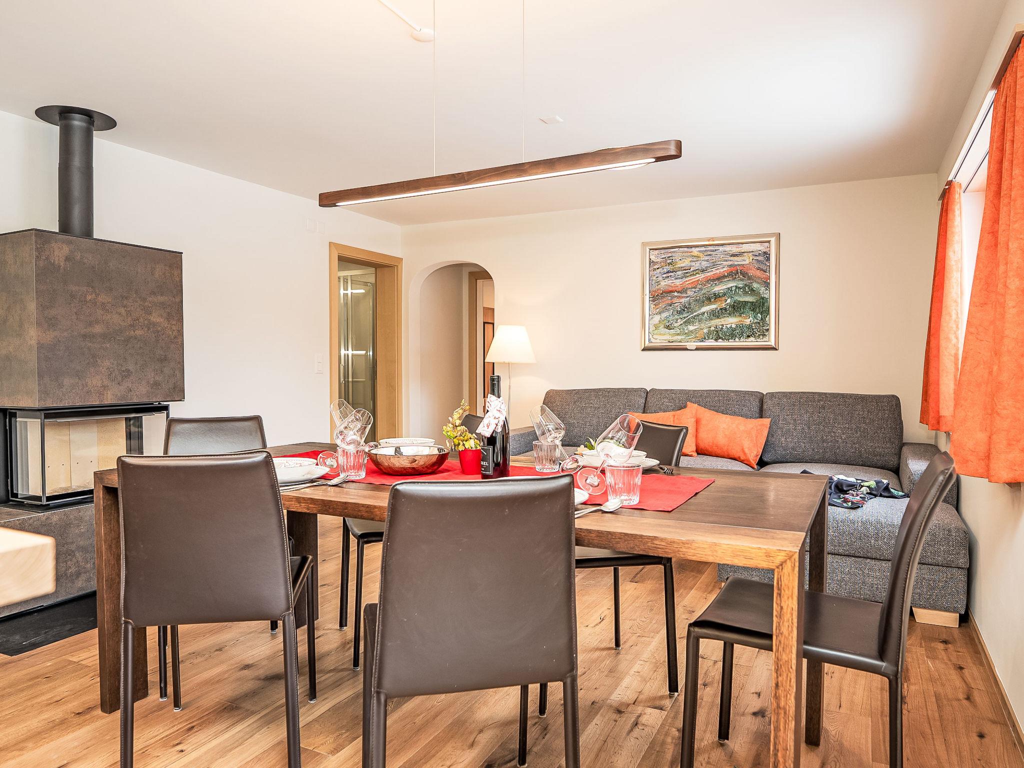 "Chesa Giere", 3-room apartment 75 m2, on the ground floor. Spacious and bright, fully renovated in 2026, modern and tasteful furnishings: open large living/dining room, window onto the courtyard with 1 sofabed (160 cm, length 200 cm), open-hearth fireplace, dining table, kitchen corner and TV (flat screen). 1 double bedroom with 1 double bed (1 x 180 cm, length 200 cm). 1 room with 1 bed (90 cm, length 200 cm). Exit to the patio. Kitchen-/living room (oven, dishwasher, 4 ceramic glass hob hotplates, toaster, kettle, electric coffee machine, Capsules for coffee machine (Delizio) extra, raclette grill, fondue Set (cheese)) with small bar. Shower/WC. Underfloor heating. Parquet floors. Beautiful view of the mountains and the resort. Facilities: hair dryer. Internet (WiFi, free). Parking space n Tschêl blov, garage space n Tschêl blov at the house, height 200 cm, width 230 cm. Please note: non-smokers only, non-smoking house. Maximum 1 small pet/ dog allowed. No lift. A new building will be constructed opposite the house. Noise emissions are expected from April to December 2026.