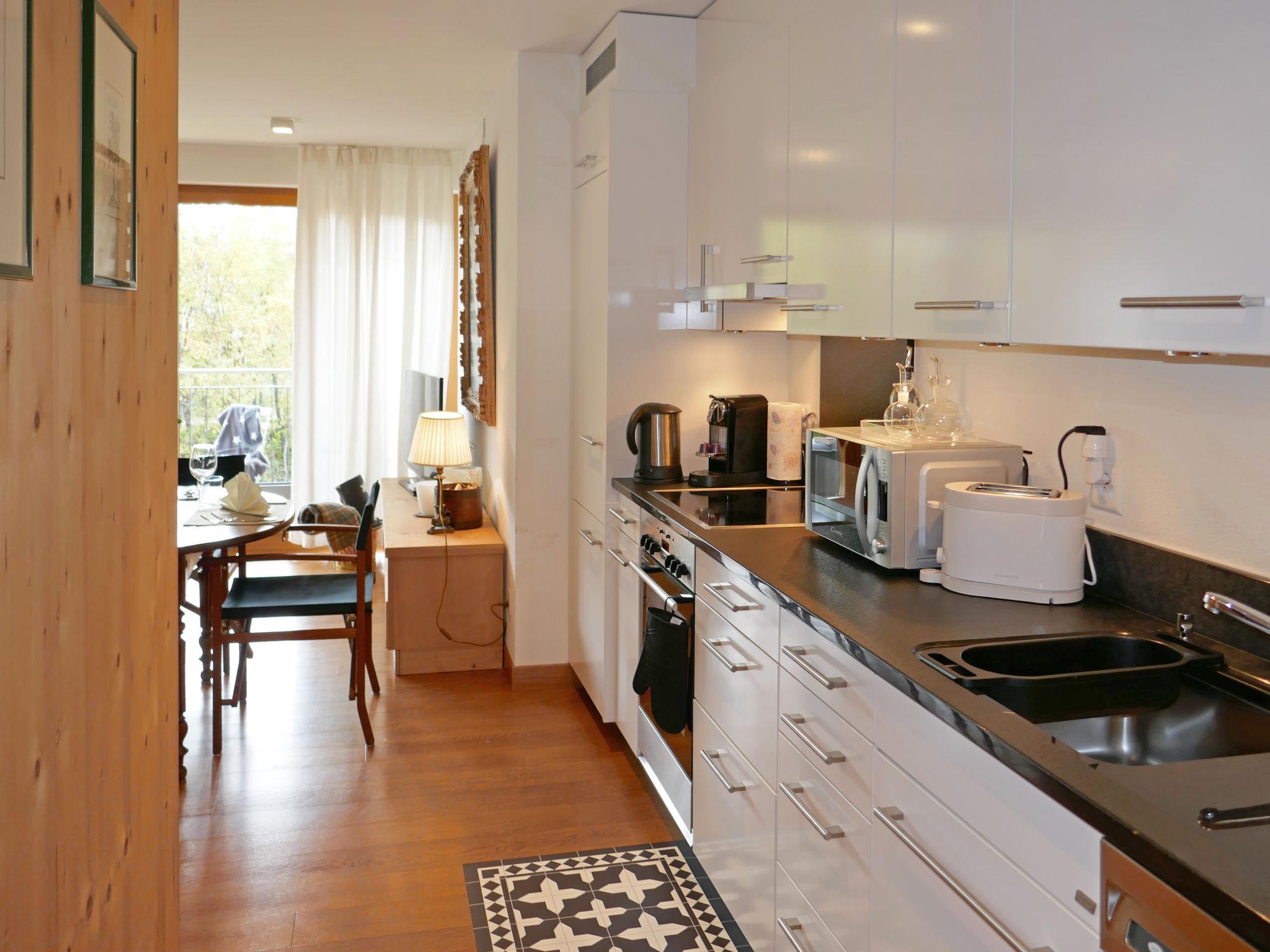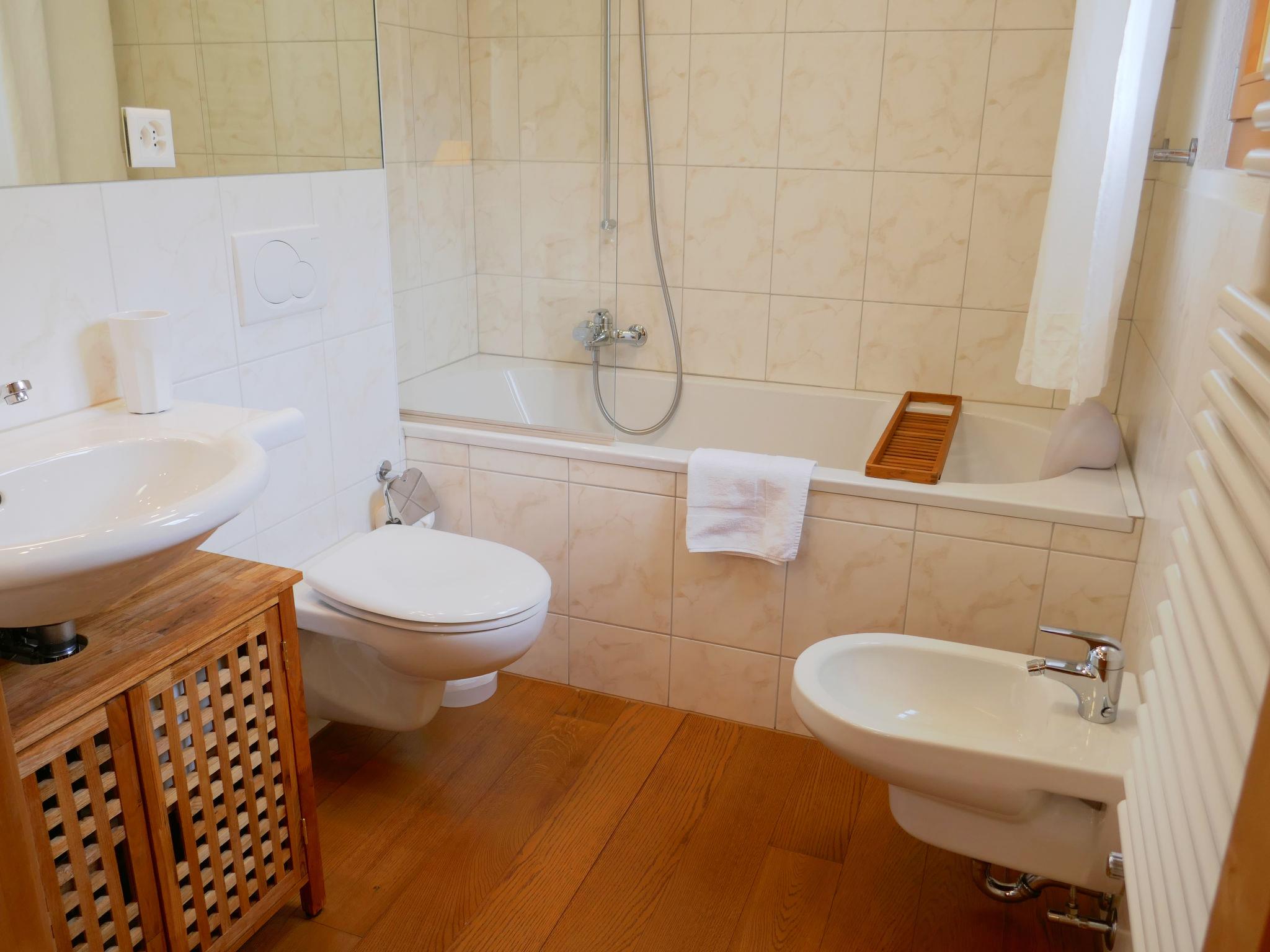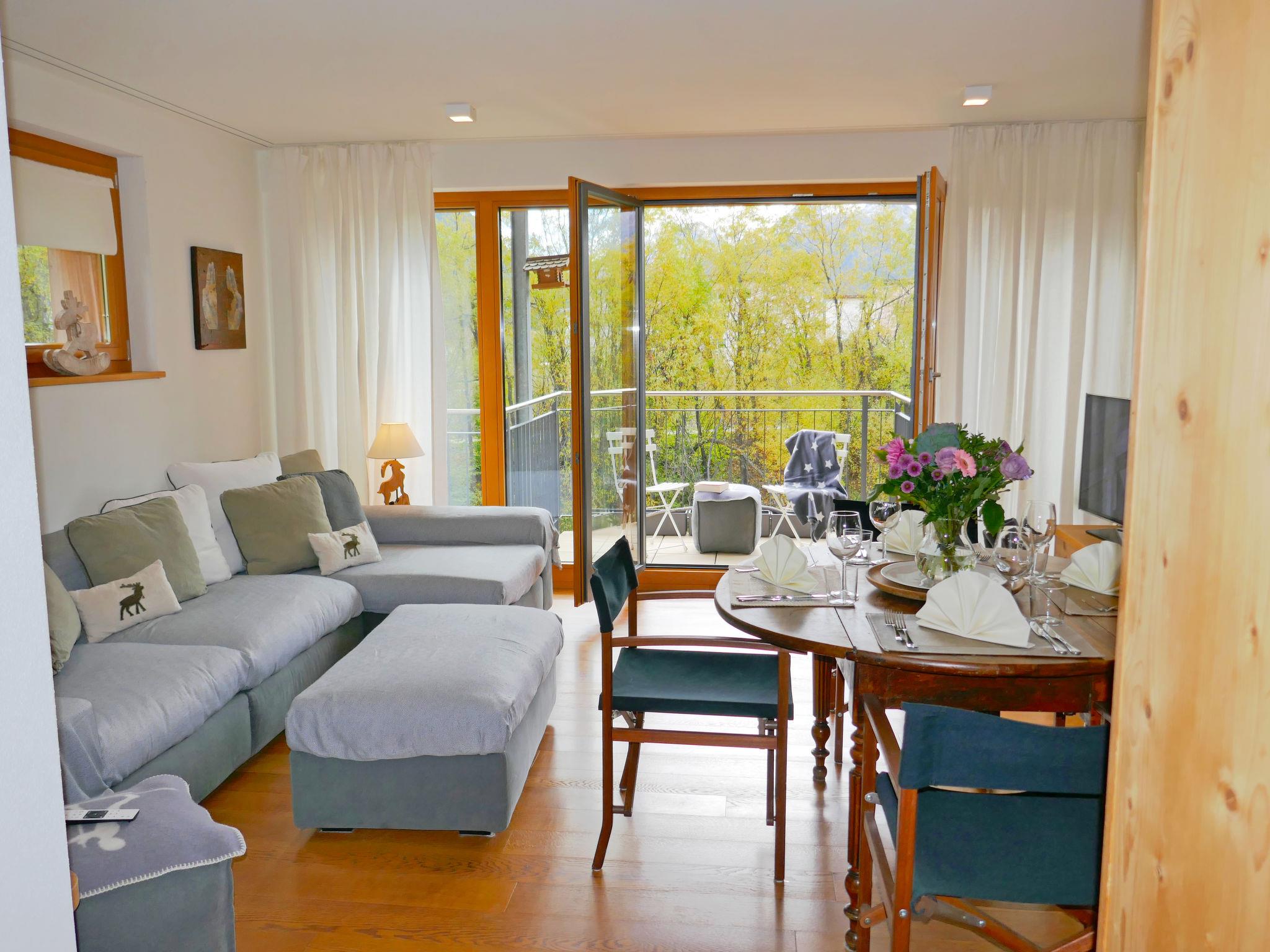 "Chesa San Bastiaun B4", 3-room apartment 60 m2 on 1st floor, south-east facing position. Object suitable for 2 adults + 2 children. Bright, tasteful and cosy furnishings: living/dining room with dining table and TV (flat screen), DVD. Exit to the balcony. 1 double bedroom 10 m2 with 1 french bed (1 x 160 cm, length 200 cm). 1 children's room 6 m2 with 1 x 2 bunk beds (2 x 90 cm, length 190 cm). Open kitchen (oven, dishwasher, 4 ceramic glass hob hotplates, toaster, kettle, microwave, electric coffee machine, Capsules for coffee machine (Nespresso) extra, raclette grill, fondue Set (chinoise, cheese)). Bath/bidet/WC, shower/WC. Heating. Wooden floors. Balcony furniture. Very beautiful view of the mountains and the river. Facilities: iron, hair dryer. Internet (WiFi, free). Garage space n B4 on the property (1 car), height 230 cm, width 250 cm. Please note: suitable for families. Non-smokers only, non-smoking house.
