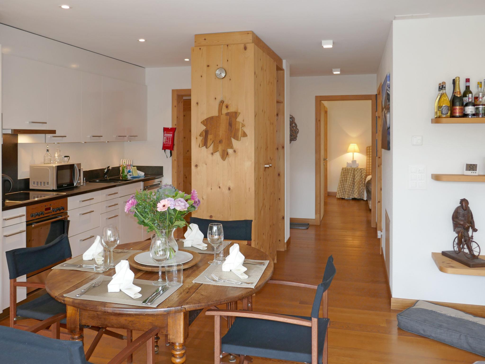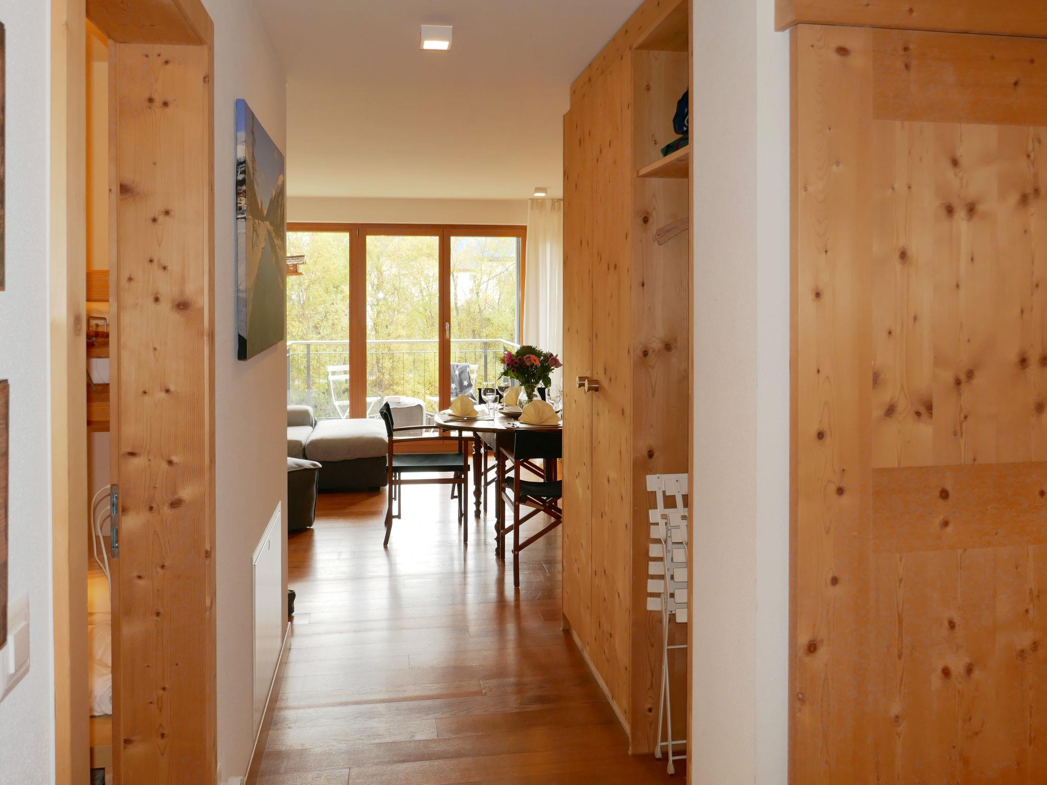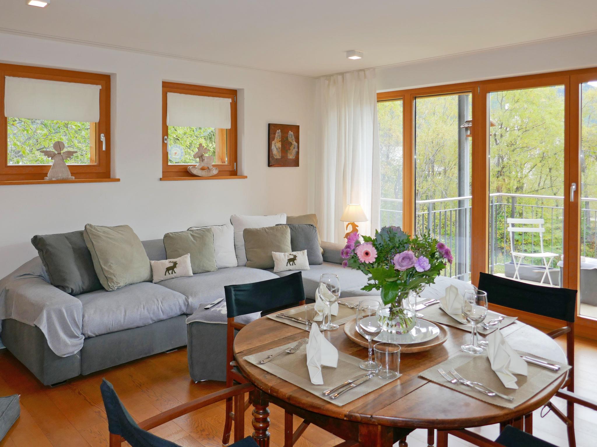 "Chesa San Bastiaun B4", 3-room apartment 60 m2 on 1st floor, south-east facing position. Object suitable for 2 adults + 2 children. Bright, tasteful and cosy furnishings: living/dining room with dining table and TV (flat screen), DVD. Exit to the balcony. 1 double bedroom 10 m2 with 1 french bed (1 x 160 cm, length 200 cm). 1 children's room 6 m2 with 1 x 2 bunk beds (2 x 90 cm, length 190 cm). Open kitchen (oven, dishwasher, 4 ceramic glass hob hotplates, toaster, kettle, microwave, electric coffee machine, Capsules for coffee machine (Nespresso) extra, raclette grill, fondue Set (chinoise, cheese)). Bath/bidet/WC, shower/WC. Heating. Wooden floors. Balcony furniture. Very beautiful view of the mountains and the river. Facilities: iron, hair dryer. Internet (WiFi, free). Garage space n B4 on the property (1 car), height 230 cm, width 250 cm. Please note: suitable for families. Non-smokers only, non-smoking house.