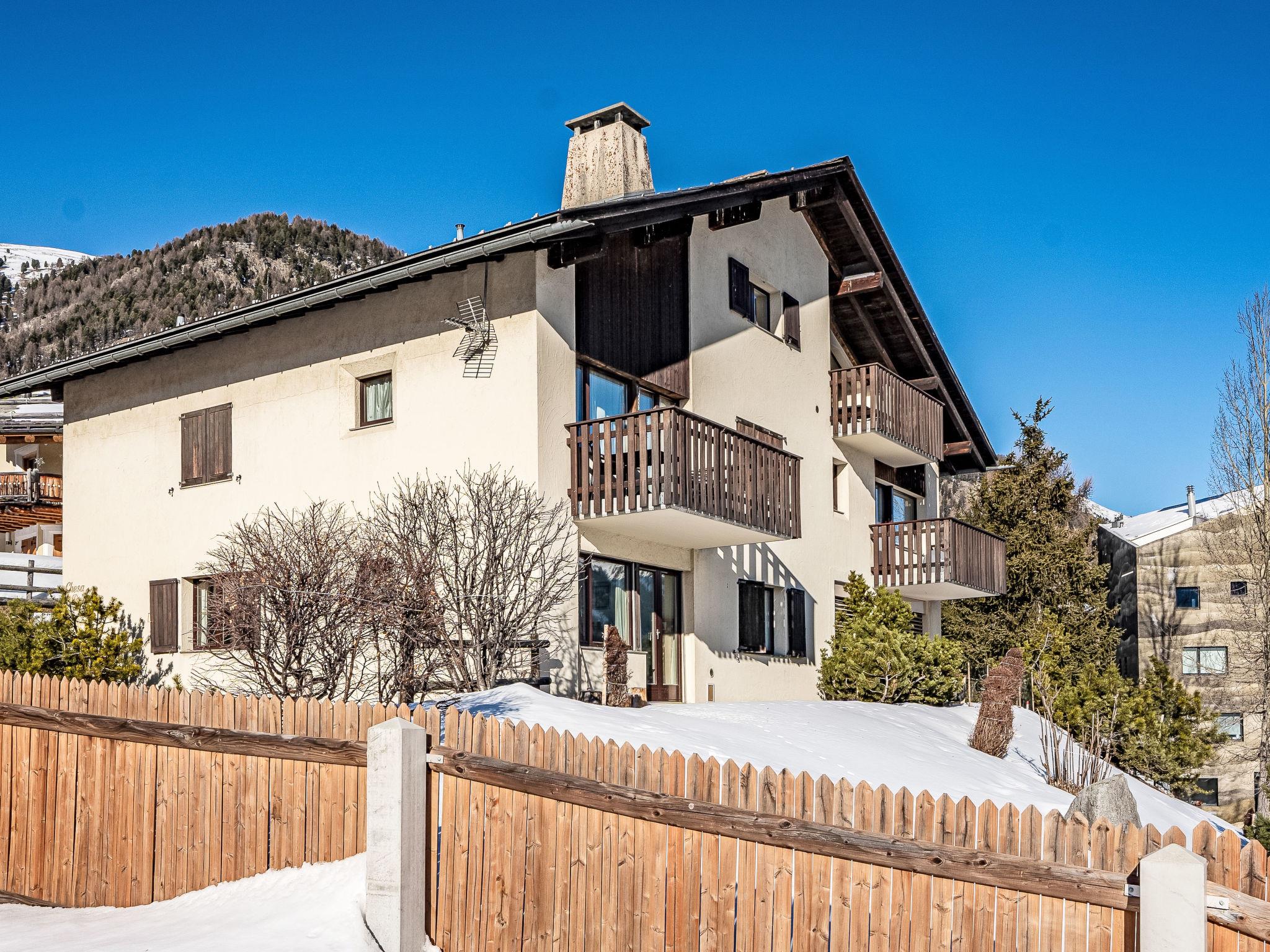 Samedan: Simple apartment house "Chesa Primula", 3 storeys, built in 1974. On the outskirts, 300 m from the centre of Samedan, in a sunny position on a slope, in the residential district. In the house: washing machine (extra), tumble dryer (for shared use, extra), drying room. Steep motor access to the grounds. In Winter: please take snow chains, 4x4 car recommended in winter. Communal covered parking space n 1 at the house. Shop, grocery, supermarket 400 m, restaurant 300 m, bus stop "Samedan Central" 300 m, railway station "Samedan" 800 m, indoor swimming pool 8 km, thermal baths "Mineralbad Samedan" 600 m. Golf course (18 hole) 700 m, surf school 8 km, sailing school 8 km, tennis 2.1 km, riding stable 9.6 km, walking paths from the house 200 m, mountain railway 5 km, gondola lift 3.1 km, slopes 200 m, ski rental 700 m, ski bus stop 300 m, ski school 3.1 km, children's ski school 200 m, sled run 5 km, cross country ski track 700 m, ice rink 800 m, children's playground 150 m. Nearby attractions: Segantini-Museum in St. Moritz 9.5 km, La Planta Samedan 300 m, Olympia Bob Run - Celerina 5.5 km. Well-known ski regions can easily be reached: Corviglia Piz Nair 3.1 km, Furtschellas - Corvatsch 14 km, Lagalb - Diavolezza 18 km. Well-known lakes can easily be reached: St. Moritz See 5 km, Silvaplaner See 13 km, Stazer See 8 km. Hiking paths: Muottas Muragles, Via Engiadina, Corviglia Piz Nair. Please note: no lift.