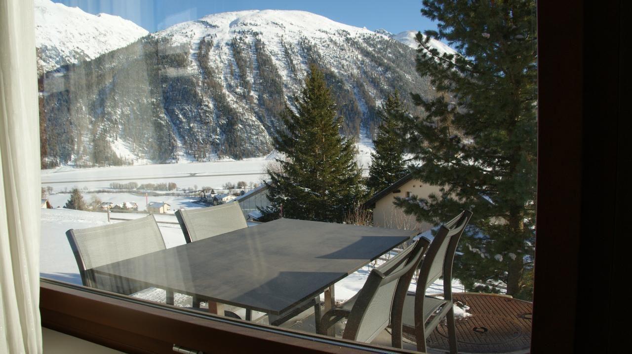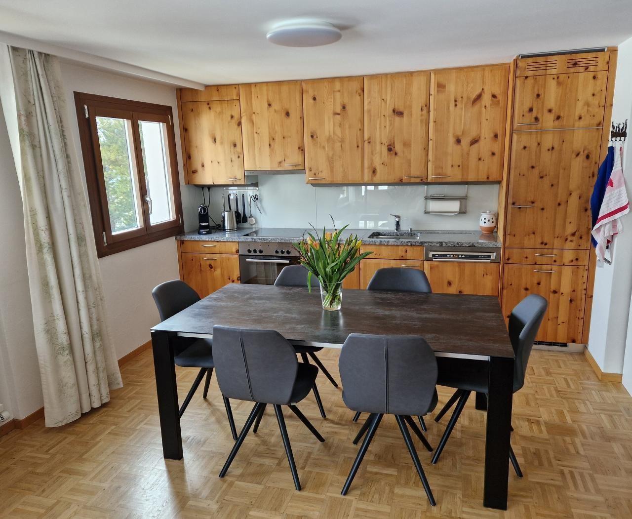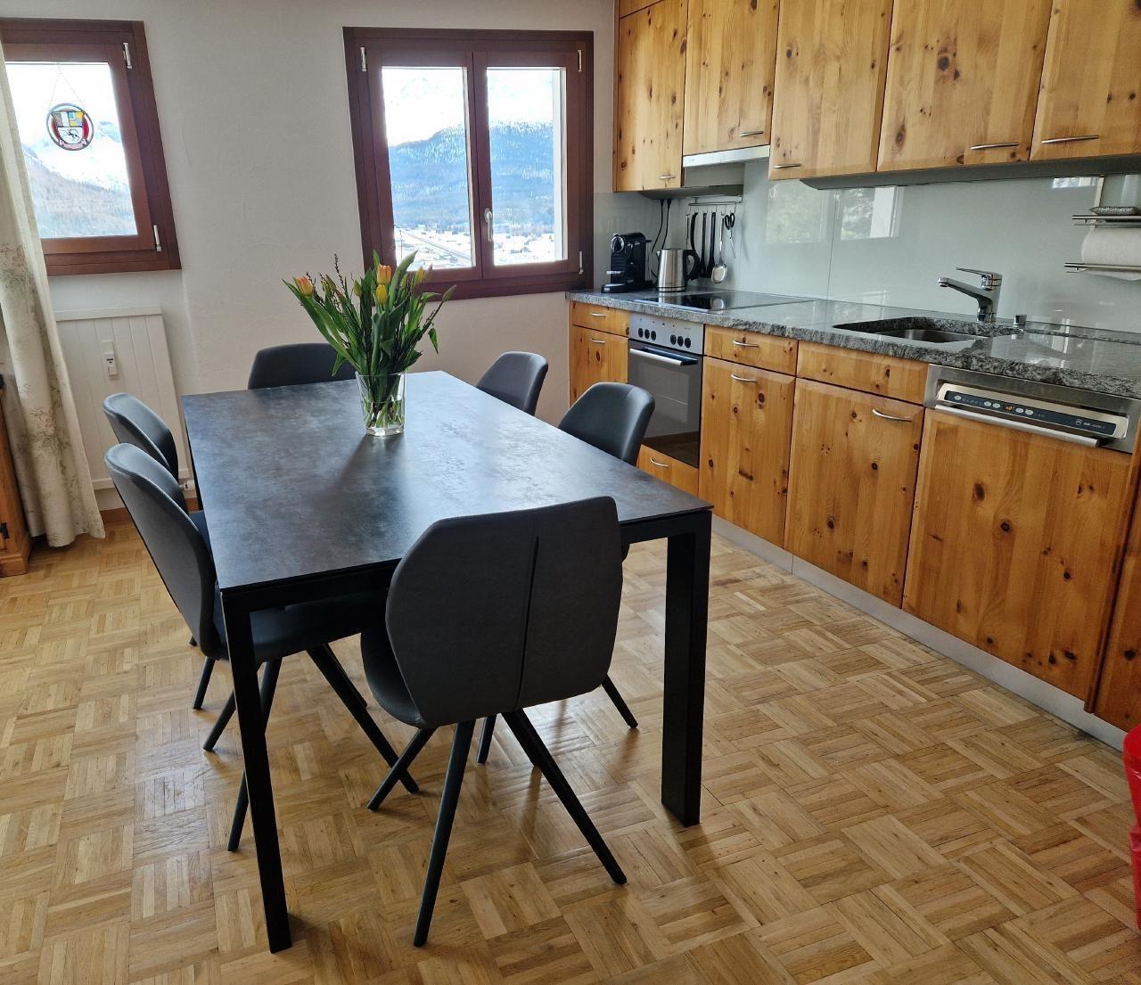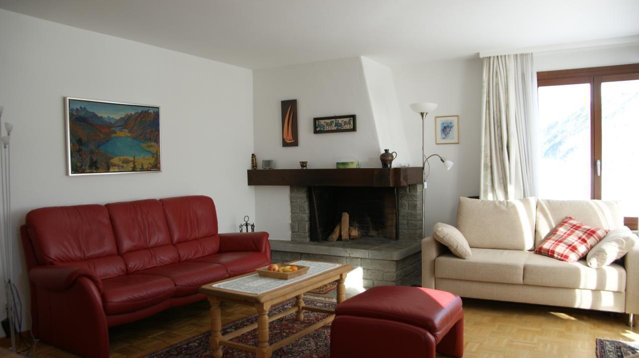 Friendly furnished 3.5 room flat in a 4-family house in a panoramic, sunny location on the ground floor with seating area. Typical Grisons house in modern style. Well-equipped kitchen in the dining and living room, large dining table with comfortable chairs, upholstered suite and fireplace. TV, radio, internet. 2 bedrooms with spacious wardrobes. 2 bathrooms, one with shower and one with bathtub, each with toilet and washbasin. Area of the flat: 62 m2.