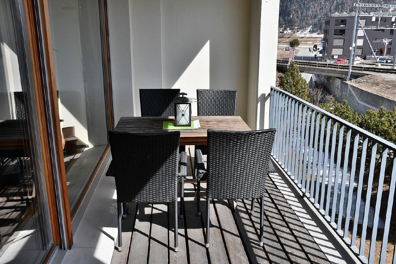 The large balcony is the highlight of the outdoor area and offers an uninterrupted view of the impressive panorama of the Engadine mountains. A garage and a lift/elevator provide additional comfort. The bus stop is just 100 metres away, making the accommodation an ideal starting point for various activities.