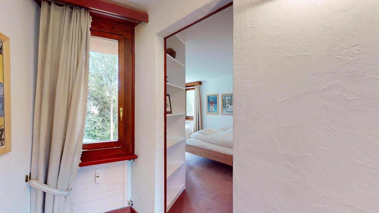 2½ Zimmerwohnung mit ca. 60 m² im 1. Stock mit Aufzug. Eingang mit Garderobe, Wohn- / Essbereich, Ausgang zu einem kleinen Balkon mit Blick auf die Berge. Fernsehen und Internet. Kleine separate Küche mit Backofen, Kühlschrank, Kaffeemaschine und Geschirrspüler. Schlafzimmer mit Doppelbett. Badezimmer mit Badewanne, Waschbecken und Bidet. Ein Garagenparkplatz (190cm hoch). Waschküche und Skiraum.