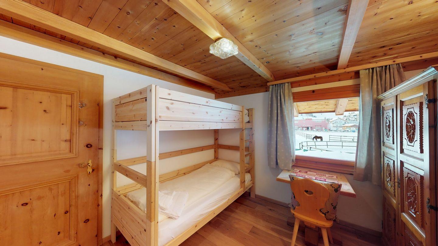 Die Wohnung verfügt über ein grosszügiges Wohnzimmer mit offener Küche. Vom Wohnzimmer aus gelangt man auf den Balkon mit herrlichem Blick Richtung St. Moritz und dem Piz Mezdi. Die zwei Schlafzimmer sind einmal mit einem Doppelbett und einmal mit einem Etagenbett ausgestattet. Ein weiteres Zimmer, welches als Garadobe und Abstellzimmer dienen kann, steht den Gästen zusätzlich zur Verfügung.