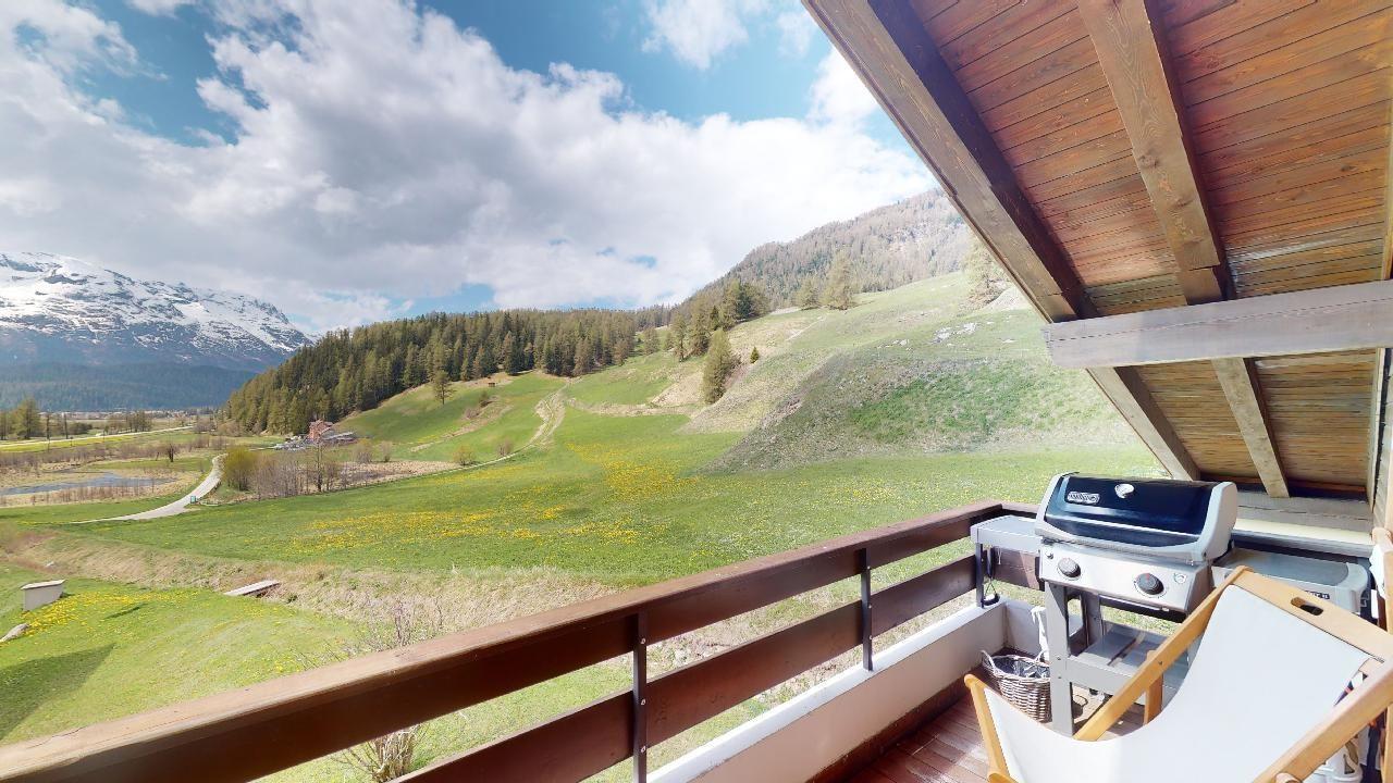 Grosszügige und moderne 5-Zimmerwohnung in Samedan. Drei Schlafzimmer, zwei mit En Suite Bad, Wohnzimmer mit Balkon und Gasgrill, moderne Küche, Gäste-WC. Skiraum und Waschküche zur Mitbenutzung, gute Lage, Bahnhof und Coop zu Fuß erreichbar.