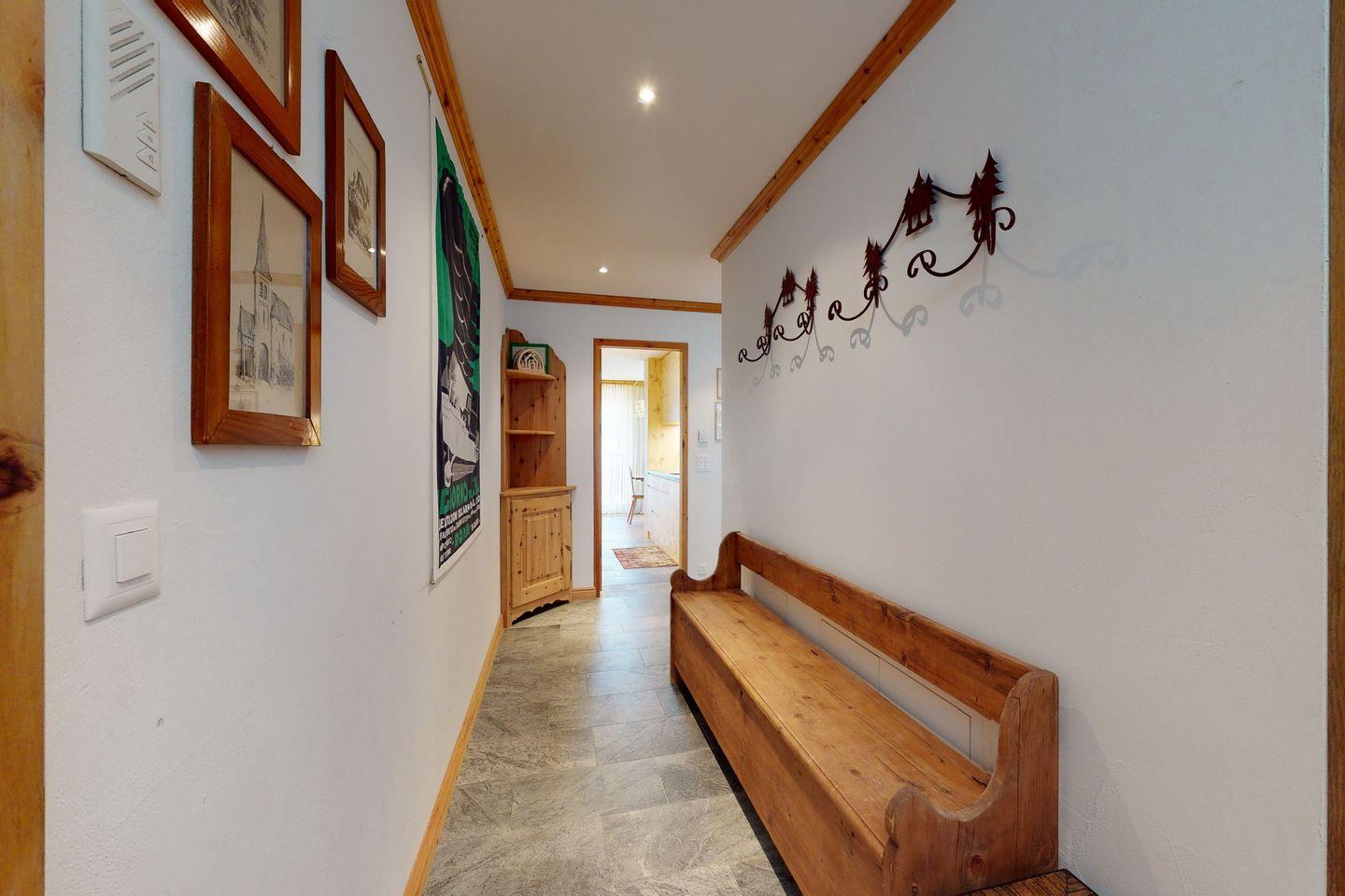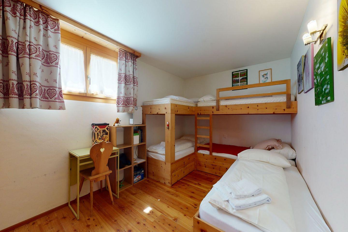 Die Wohnung verfügt über ein geräumigen und hellen Wohnbereich mit zwei Sofas, TV sowie einem Esstisch. Die Wohnung hat insgesamt drei Schlafzimmer: eines mit einem Doppelbett, eines mit zwei Einzelbetten und eines mit insegsamt 4 Kajütenbetten. Die Wohnung wird jedoch an maximal 6 Personen vermietet und nur auf Anfrage an 8 Personen. Die Küche wurde im Jahr 2021 komplett renoviert. Es stehen zwei Badezimmer zur Verfügung. Eines der Badezimmer ist mit einer Dusche und WC, das andere mit einer Badewanne, Bidet und WC ausgestattet. Vom Gartensitzplatz geniesst man eine atemberaubende Aussicht auf die umliegenden Berge.