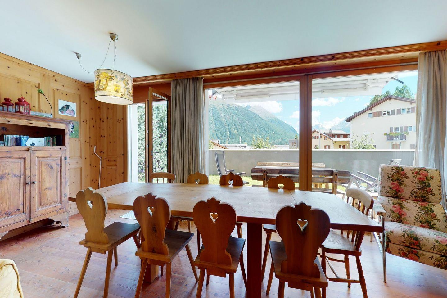 Grosszügige 4 Zimmer-Wohnung an guter und ruhiger Lage oberhalb von Samedan mit sonniger Terrasse.
