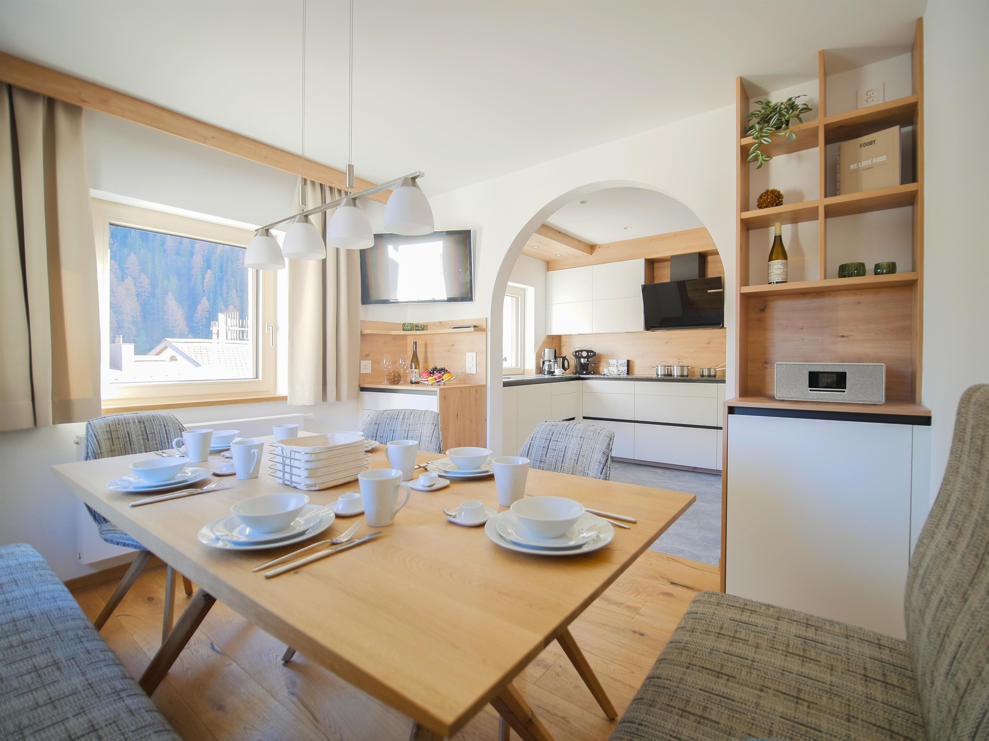 This duplex attic apartment in «Samnaun-Compatsch» offers light-filled rooms and a spacious kitchen combined with an adjacent living area. It can host up to 10 persons. Two or three families as well as skiing or hiking groups can find a cozy place to stay, while 4 separate bedrooms offer enough privacy for everyone. The bathroom on the first floor consists of a toilet, shower and a bath tub. The second floor bathroom offers an additional toilet and shower. In addition to two balconies, three parking spaces as well as a private ski room including a ski boot heating, a dishwasher, E.S.E. coffee maker and free Wifi are part of the holiday experience. On demand, the local bakery delivers fresh bread to the door every early morning.