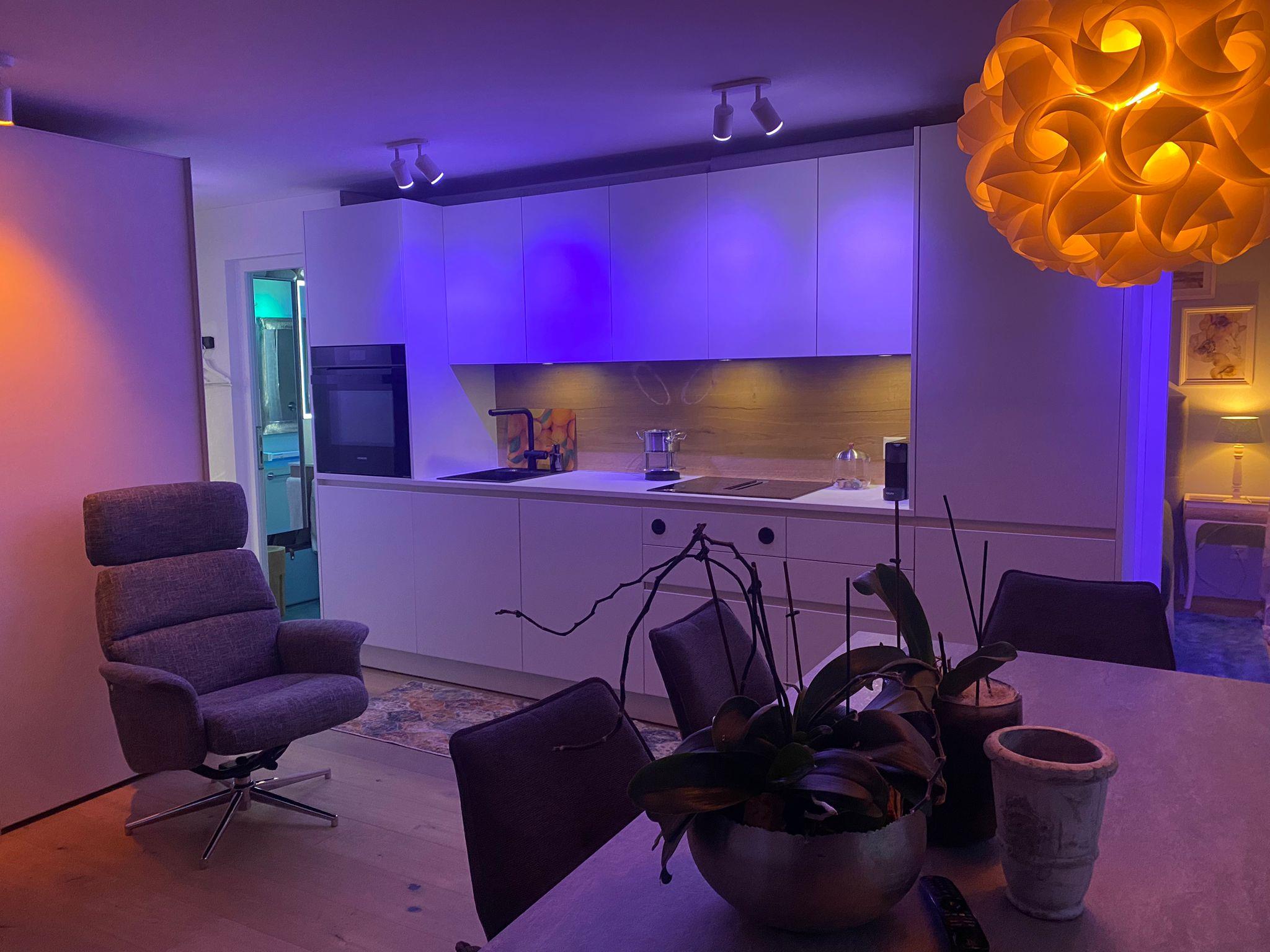 Experience unforgettable days in our lovingly designed, new, and fully equipped holiday apartment, located in a sunny and peaceful area right in the heart of the charming village of Samnaun-Compatsch.The free Samnaun bus stops just a few steps from our house and takes you directly to the valley station, where you can access a ski area that is second to none.- And at the end of the day, you can ski right back to our doorstep.Our Amenities:Our apartment has a private entrance and features:2 Bedrooms: Equipped with high-quality box spring beds (180 x 200 cm) and built-in wardrobes.Bathroom: Includes a shower, toilet, towels, and a hairdryer.Kitchen: Fully equipped with an oven/microwave, induction stove, refrigerator, dishwasher, coffee machine, blender, dishes, pans, pots, fondue, and raclette sets.Living Area: Features a sofa bed (additional charge for an extra person: CHF 30/night) and a smart TV.The entire apartment is equipped with Philips Hue lighting, offering countless color-coordinated variations to suit your mood.High-speed fiber-optic internet is available free of charge.DAB+ Digitalradio (UKW, Audiostreeming like Spotify, Bluetooth, USB with charging possibility and MP3)Additional Benefits:Private free parkingRestaurants, après-ski venues, shops, and the Alpenquell Pool are just a few minutes away.