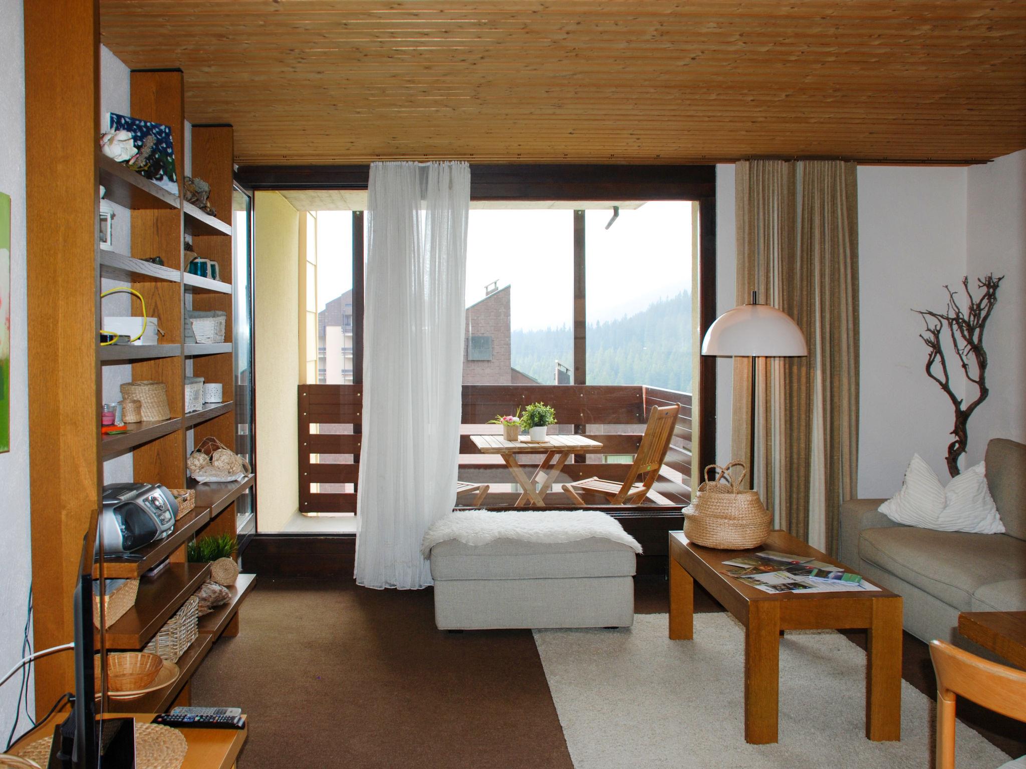 "Panorama View 905", 2-room apartment 49 m2 on 9th floor. Object suitable for 2 adults + 2 children. Spacious, comfortable and cosy furnishings: living/sleeping room with 1 sofabed (140 cm, length 190 cm), dining table, cable TV, flat screen and radio. Exit to the balcony. 1 double bedroom with 1 double bed (2 x 90 cm, length 200 cm). Small kitchen (4 hot plates, oven, toaster, kettle, electric coffee machine, Capsules for coffee machine (Nespresso) extra). Bath/WC. Small balcony, south facing position and west facing position. Balcony furniture. Marvellous panoramic view of the mountains, the countryside and the resort. Facilities: hair dryer. Internet (WiFi, free). Please note: non-smokers only. Maximum 1 pet/ dog allowed.