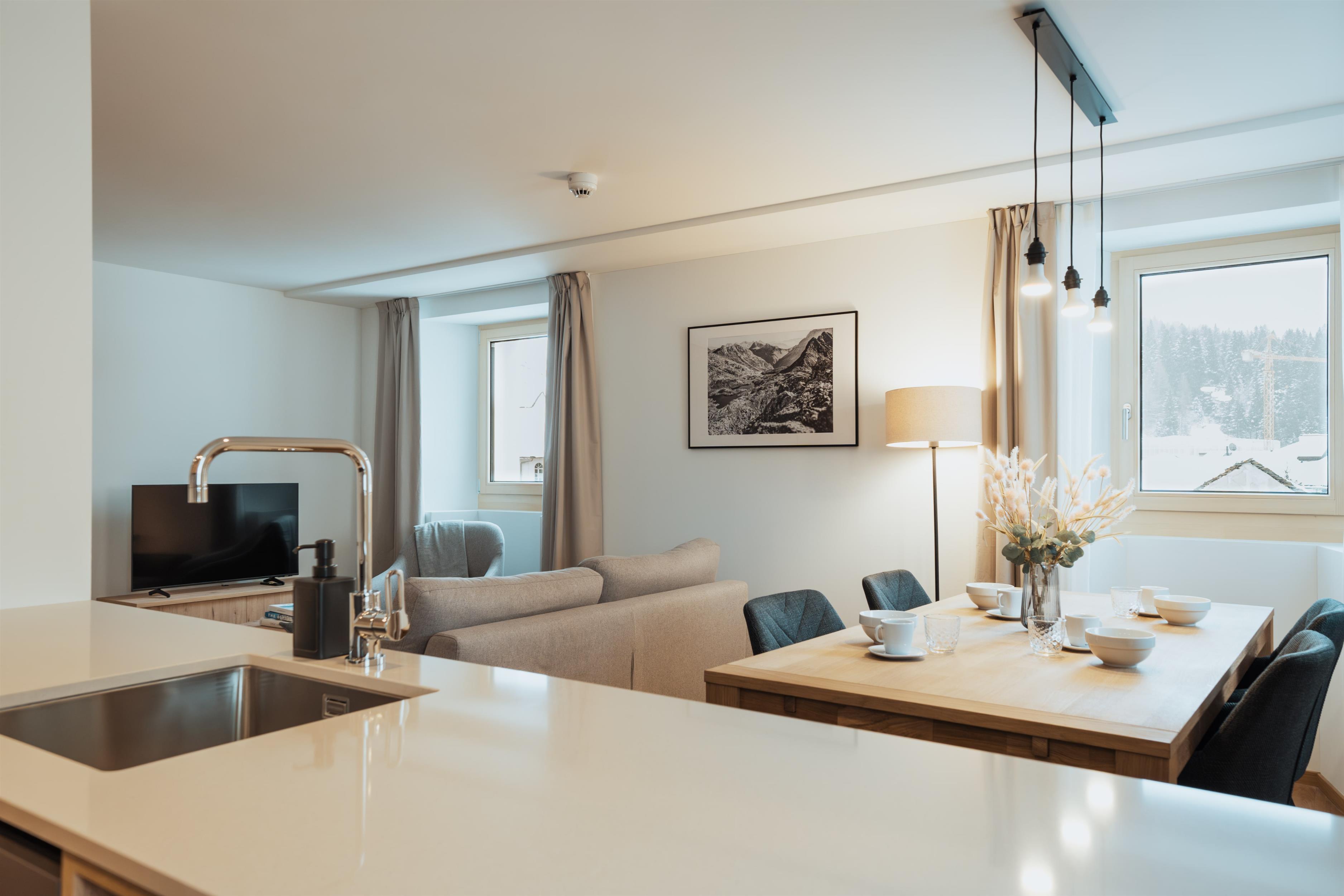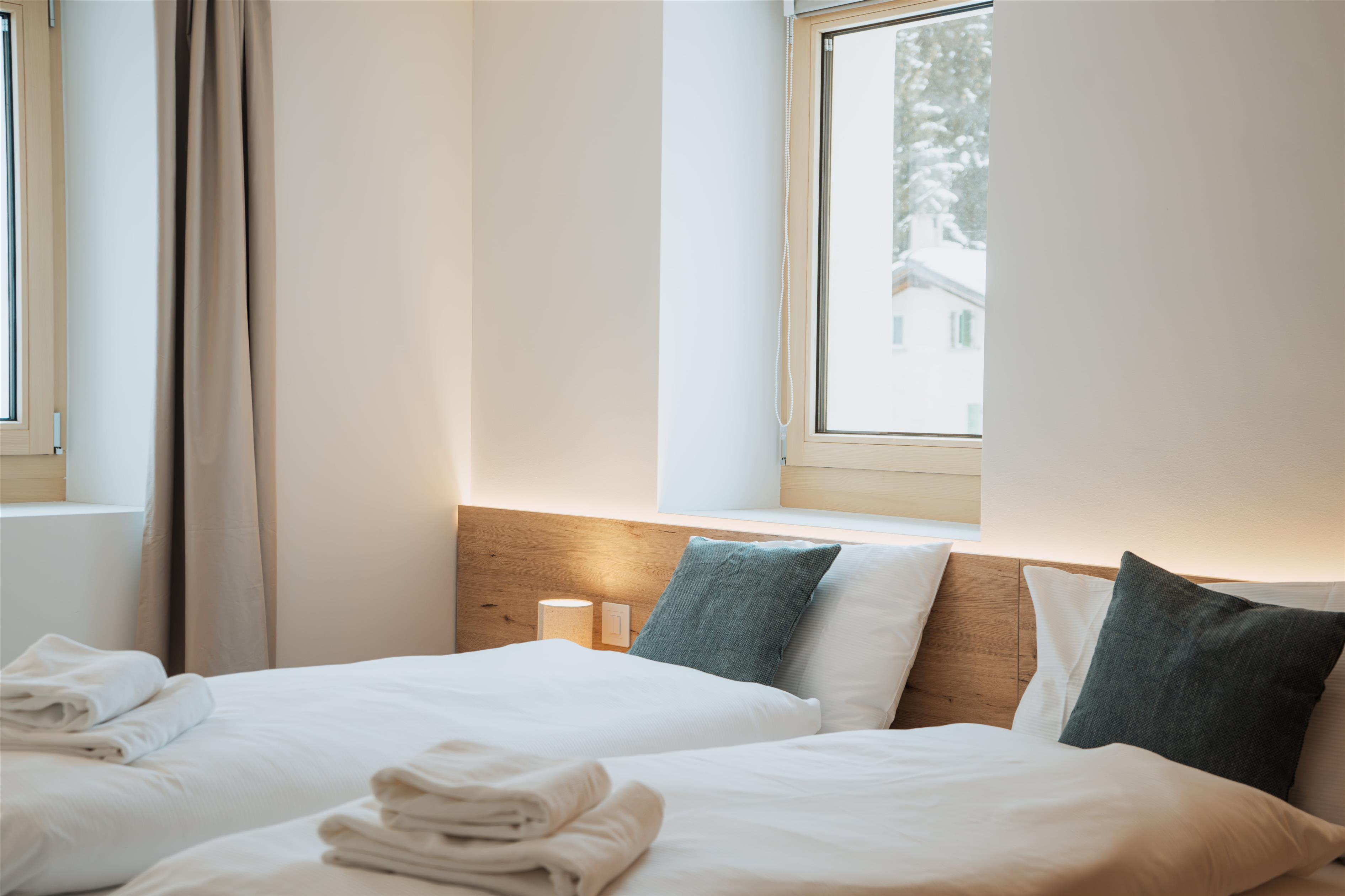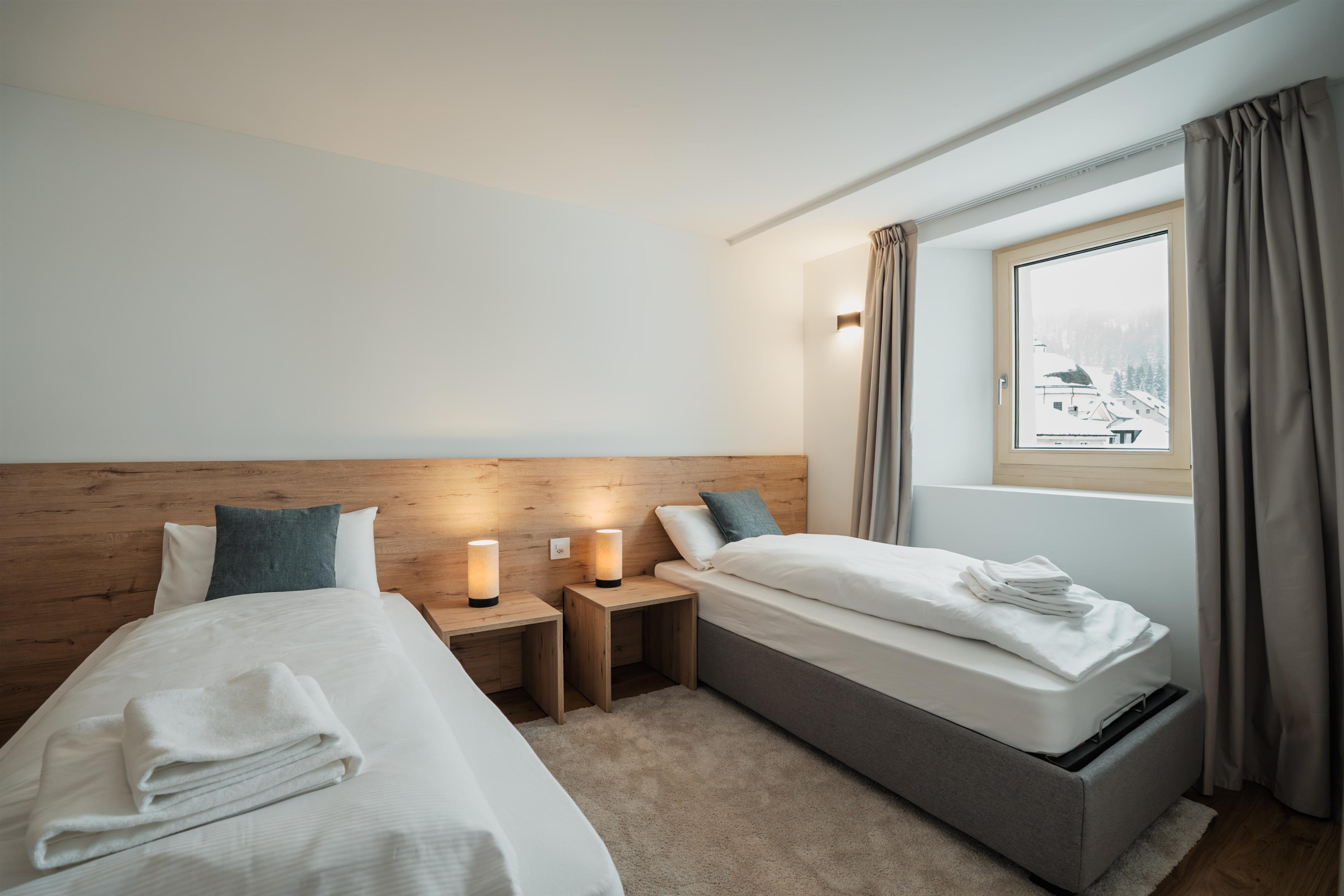 The San Bernardino Alpine Apartments comprise a total of 55 finely furnished flats in three exclusive residences, Castanea, Larix and Tilia, where the concept of alpine living is reinterpreted and celebrated with passion in a beautiful mountain landscape in the green area of Pian Cales. The flats offer numerous services, a unique concierge service, access to a wellness and spa area, ski and mountain bike storage.