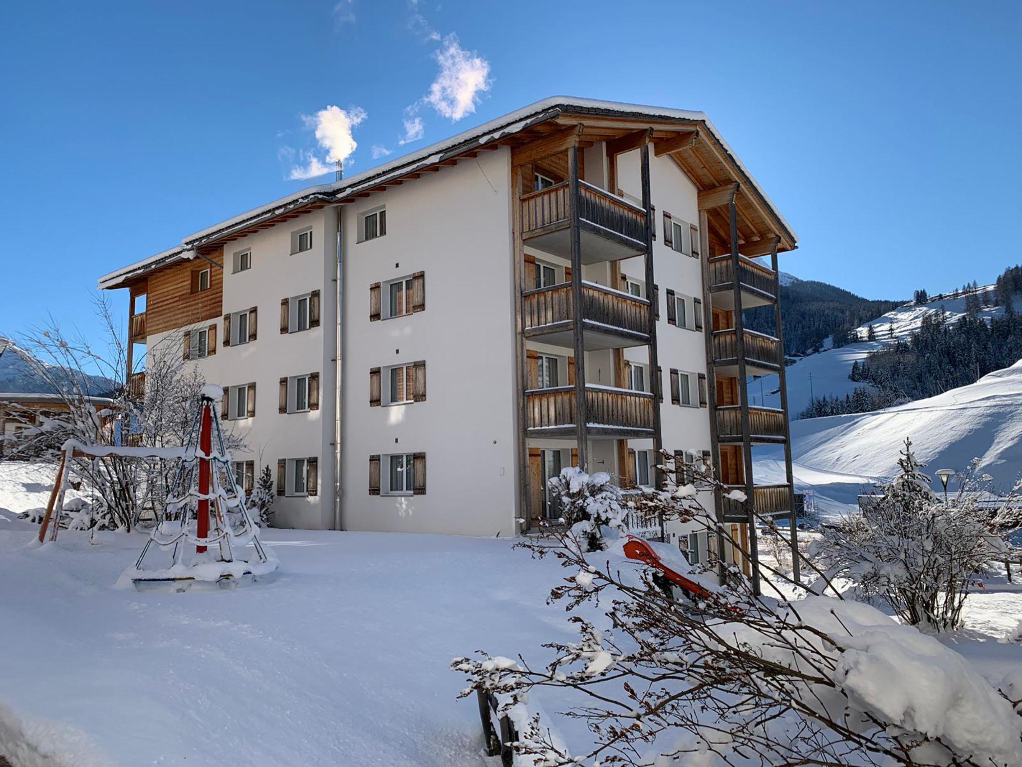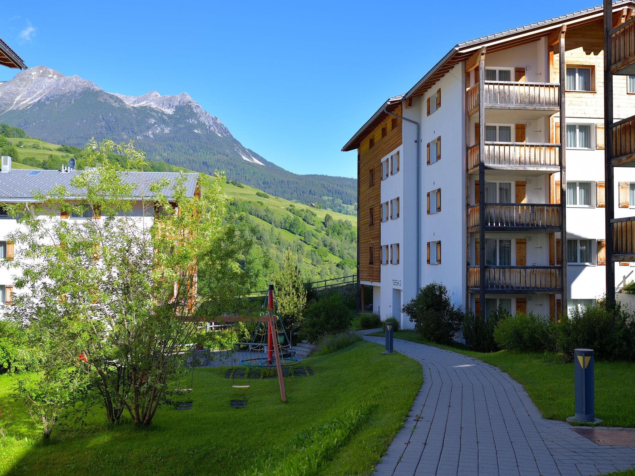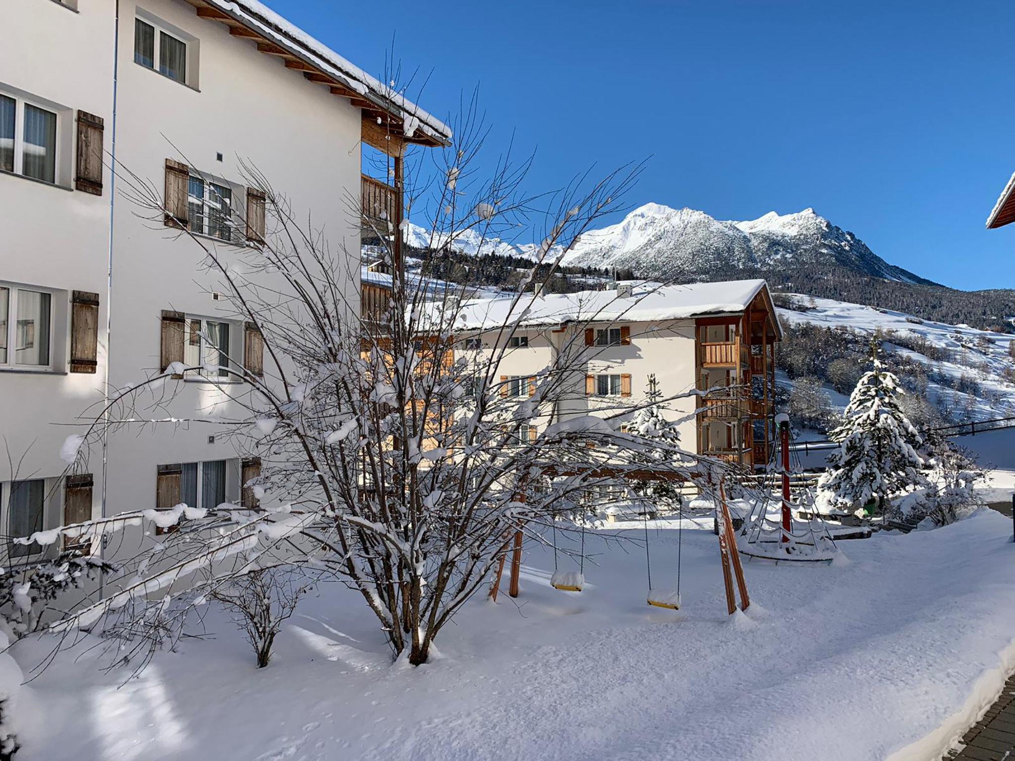 Child friendly, cosy, comfortable resort "Surses Alpin", 1'200 m a.s.l.. 4 houses in the resort. In the resort, 200 m from the centre, in a quiet, sunny position on a slope, 300 m from the skiing area. For shared use: property, lawn for sunbathing. Children's playground (slide, swing). In the complex: reception, WiFi, playroom, table football, lift, storage room for bicycles, storage room for skis, central heating system, washing machine, tumble dryer (for shared use, extra), drying room. Motor access to the house. Parking (extra) at the house. Shop, grocery, restaurant 200 m, bus stop 200 m, railway station "Tiefencastel" 9 km, bathing lake. Golf course (18 hole) 15 km, minigolf 400 m, ski lift 300 m, chair lift, gondola lift 300 m, skisport facilities, slopes, ski rental 300 m, ski bus stop 10 m, ski school, sled run, cross country ski track, ice rink 800 m, children's playground 50 m. Well-known ski regions can easily be reached: Lenzerheide 20 km, St.Moritz 38 km. Hiking paths: Parc Ela, Engadin 35 km. The photo is just an example. Discounted ski passes (from 3 days) available on site.