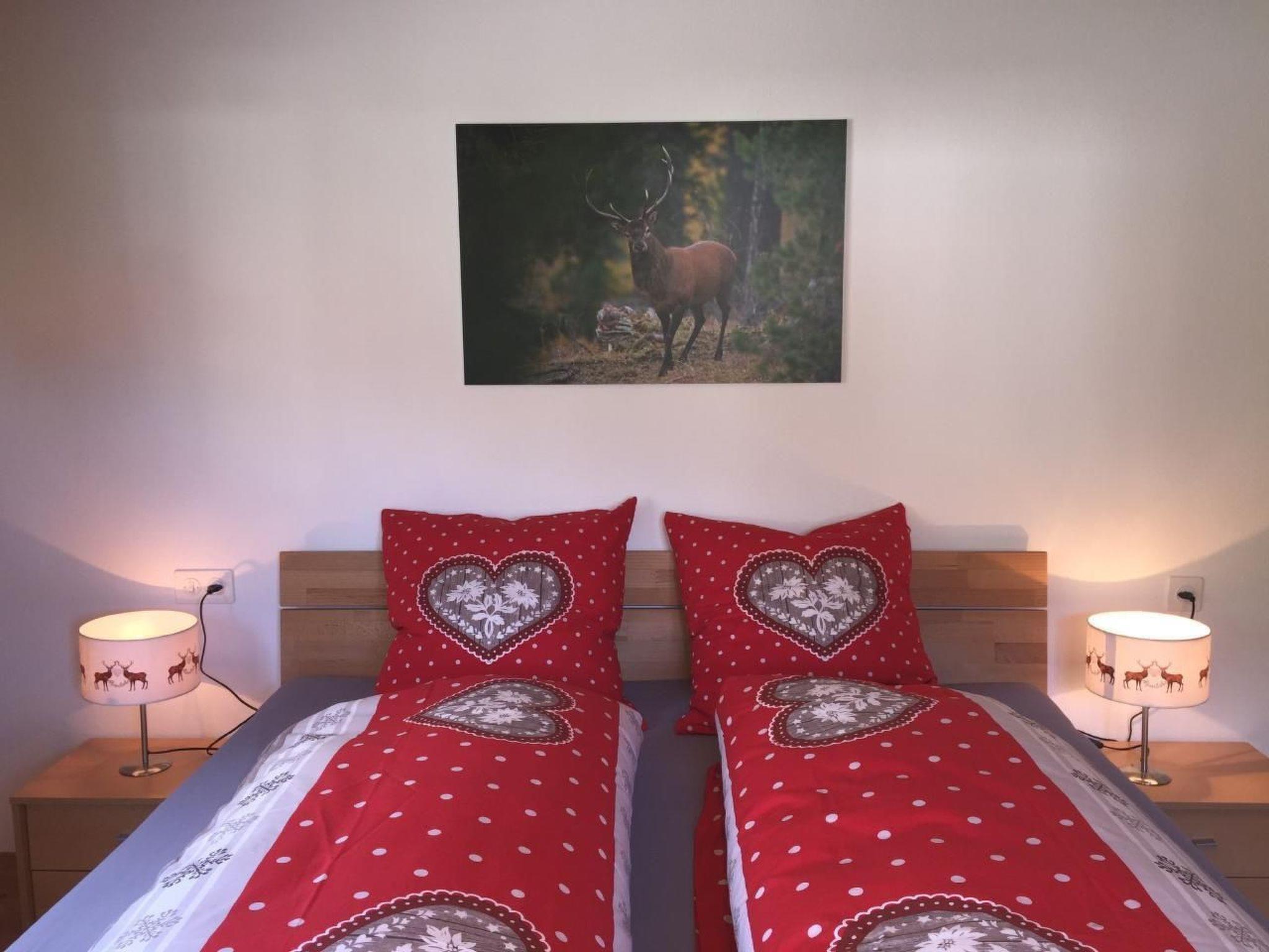 The outdoor area of the holiday flat invites you to enjoy the idyllic tranquillity and fresh mountain air to the full. There is a large garden for your exclusive use, which offers plenty of space to relax or play. You can also make yourself comfortable on the terrace, under the covered seating area, and end the day in peace and quiet.