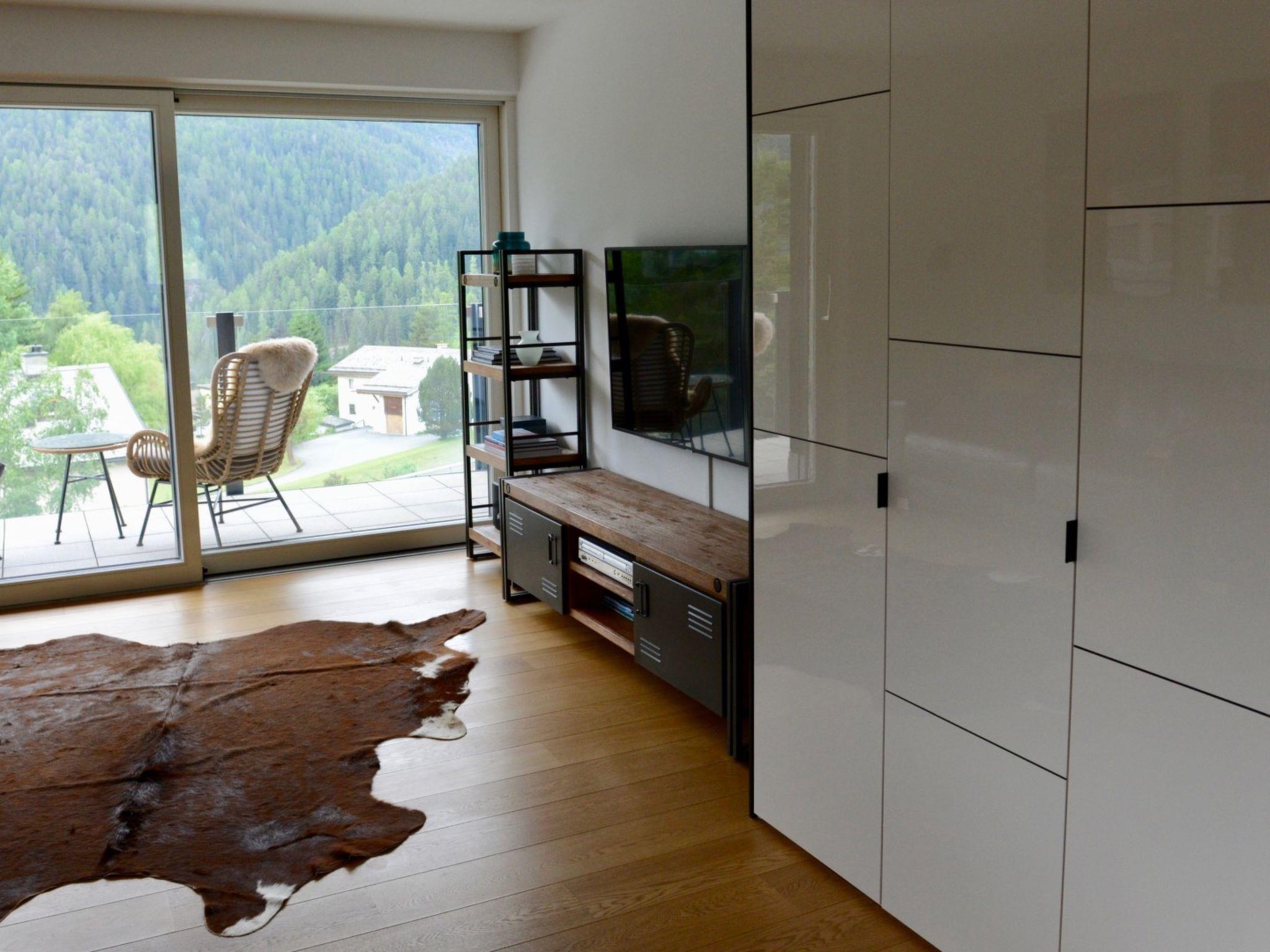 This 2,5-rooms flat is situated close to the cable car station in Scuol (Motta Naluns) and is furnished modern, comfortably and cozy. The flat disposes of 5 beds and is very suitable for families.There is a bunk bed with an additional third bed to pull out in the bedroom. This additional bed has a high bed frame and therefore is very convenient for small children who risk to fall out in the night. The big wardrobe offers plenty of storage space.You will find a sofa bed in the living room. The couch has a top quality Bültex-mattrasse (size 160x200) and a slatted frame and guarantees a comfortable and deep sleep.In the well equipped kitchen you can easily cook for 5 persons. The dishwasher helps you with the dishes.The balcony looks toward south from where you enjoy a picturesque panorama over the valley and the mountains on the opposite side. There are many windows and the flat is very sunny. You can use the combined washing-drying-machine which is located in the bathroom.This 2,5-rooms flat ist situated close to the cable car station in Scuol (Motta Naluns) and is furnished modern, comfortably and cozy. The flat disposes of 5 beds and is very suitable for families.There is a bunk bed with an additional third bed to pull out in the bedroom. This additional bed has a high bed frame and therefore is very convenient for small children who risk to fall out in the night. The big wardrobe offers plenty of storage space.You will find a sofa bed in the living room. The couch has a top quality Bültex-mattrasse (size 160x200) and a slatted frame and guarantees a comfortable and deep sleep.In the well equipped kitchen you can easily cook for 5 persons. The dishwasher helps you with the dishes.The balcony looks toward south from where you enjoy a picturesque panorama over the valley and the mountains on the opposite side. There are many windows and the flat is very sunny. You can use the combined washing-drying-mashine which is located at the bathroom.Conditions and extrasOn arrival please check-in at the reception of the Hotel Bellaval next to the apartment (Via da Ftan 494, tel. +41 81 864 14 81). You are expected there. Additional services can be booked at the Bellaval Hotel next door, such as: Bike/mountain bike rental, wellness, additional cleaning, laundry service, catering, etc.The ski school is located next door in the gondola station. Group lessons for children always from Monday to Friday.Occupancy1-5 Persons1-5 Adults0-4 Children (0-17 year(s))