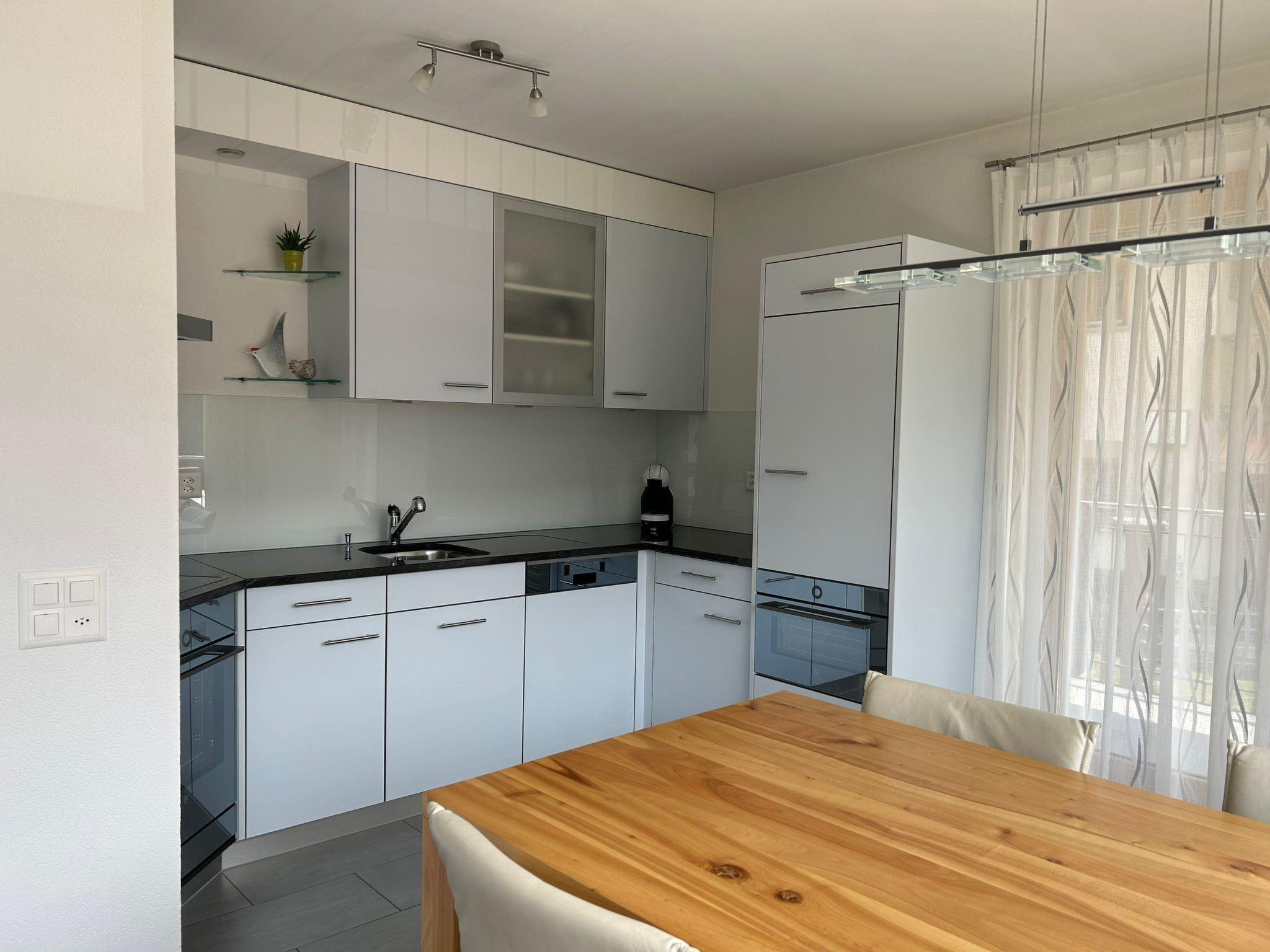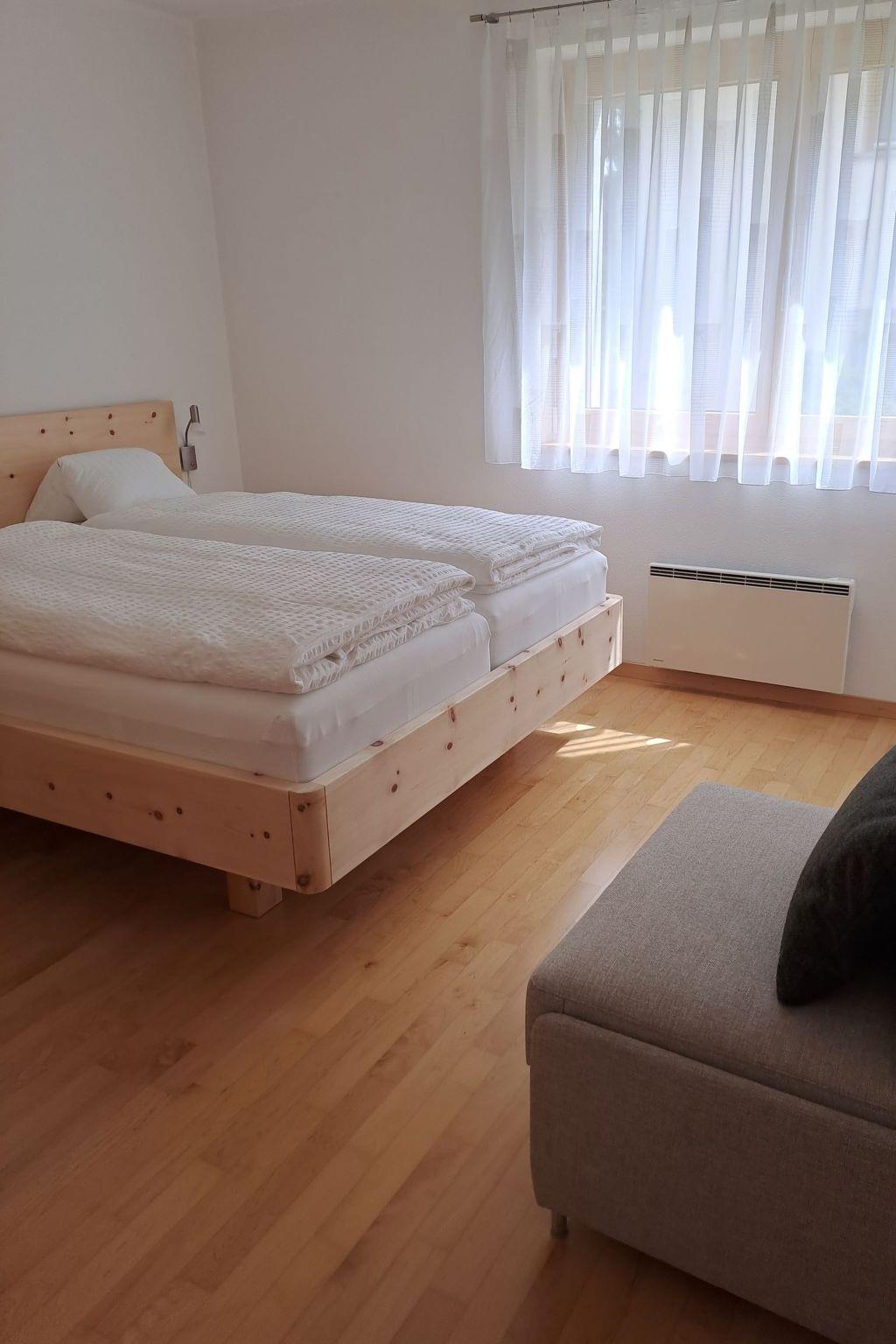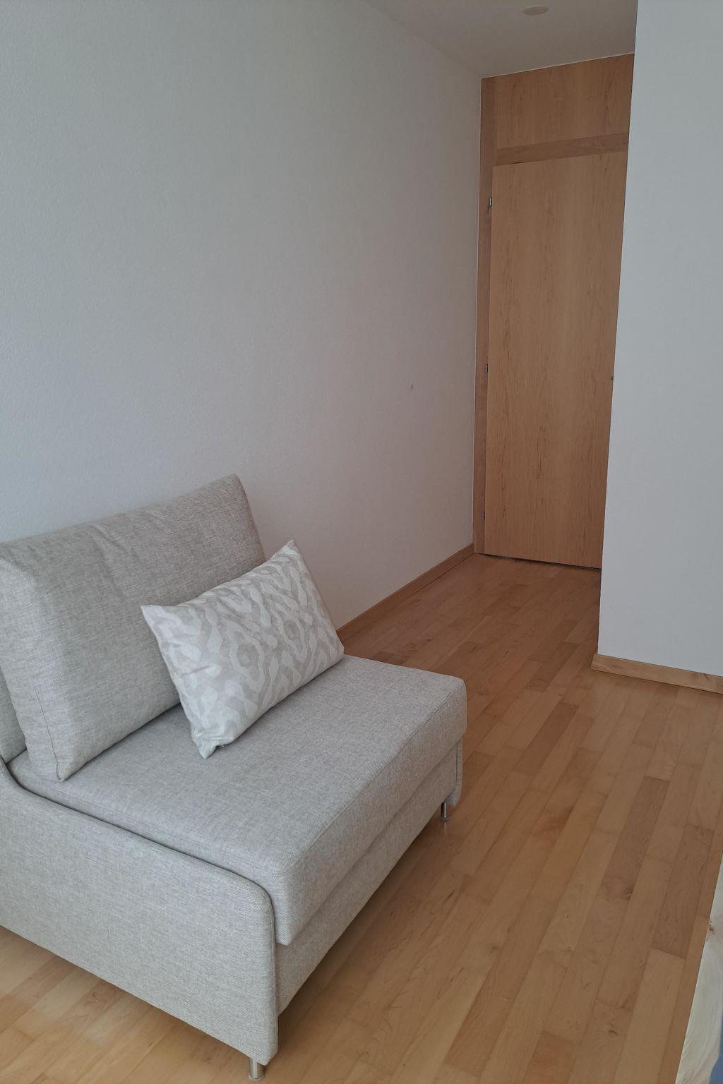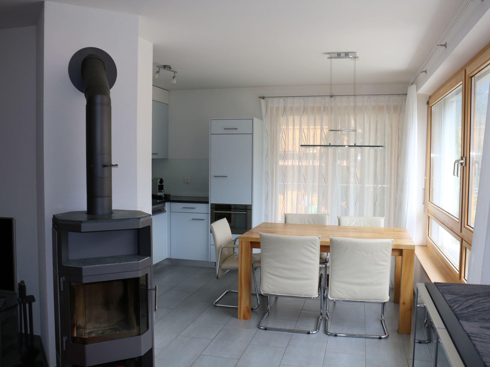 The beautiful ***** 2 1/2 room apartment is situated on the 1st floor in a quiet location with a panoramic view of the beautiful mountains with balcony on the south and east side. The apartment has large window fronts to the south side with unique view. The furnishing of the apartment is very modern and comfortable. Balcony access from dining room and bedroom, equipped with table, chairs, deckchairs, parasol. Kitchen-living room: granite cover with glass rear wall, glass ceramic hob, oven, steamer, dishwasher, Expresso coffee machine, solid cherry wood table with leather swing chairs. Living room: plate floor with floor heating, Swedish stove, Sat TV, large flat screen, DVD, radio, wireless internet, sofa with Rolf Benz salon table Bedroom: maple parquet floor, double bed with comfort mattresses and a sofa bed, satin bed linen, leather cupboard. Bathroom: bathtub with glass shower attachment, double-seal toilet cupboard, towel dryer. Reduit: washing machine, tumble dryer. Entrée: wardrobe, closet. House with underground parking and lift.The furnishing of the apartment is very modern and comfortable. Balcony access from dining room and bedroom, equipped with table, chairs, deckchairs, parasol. Kitchen-living room: granite cover with glass rear wall, glass ceramic hob, oven, steamer, dishwasher, Expresso coffee machine, solid cherry wood table with leather swing chairs. Living room: plate floor with floor heating, Swedish stove, Sat TV, large flat screen, DVD, radio, wireless internet, sofa with Rolf Benz salon table Bedroom: maple parquet floor, double bed with comfort mattresses and a sofa bed, satin bed linen, leather cupboard. Bathroom: bathtub with glass shower attachment, double-seal toilet cupboard, towel dryer. Reduit: washing machine, tumble dryer. Entrée: wardrobe, closet.Occupancy1-4 Persons1-4 Adults0-3 Children (0-17 year(s))