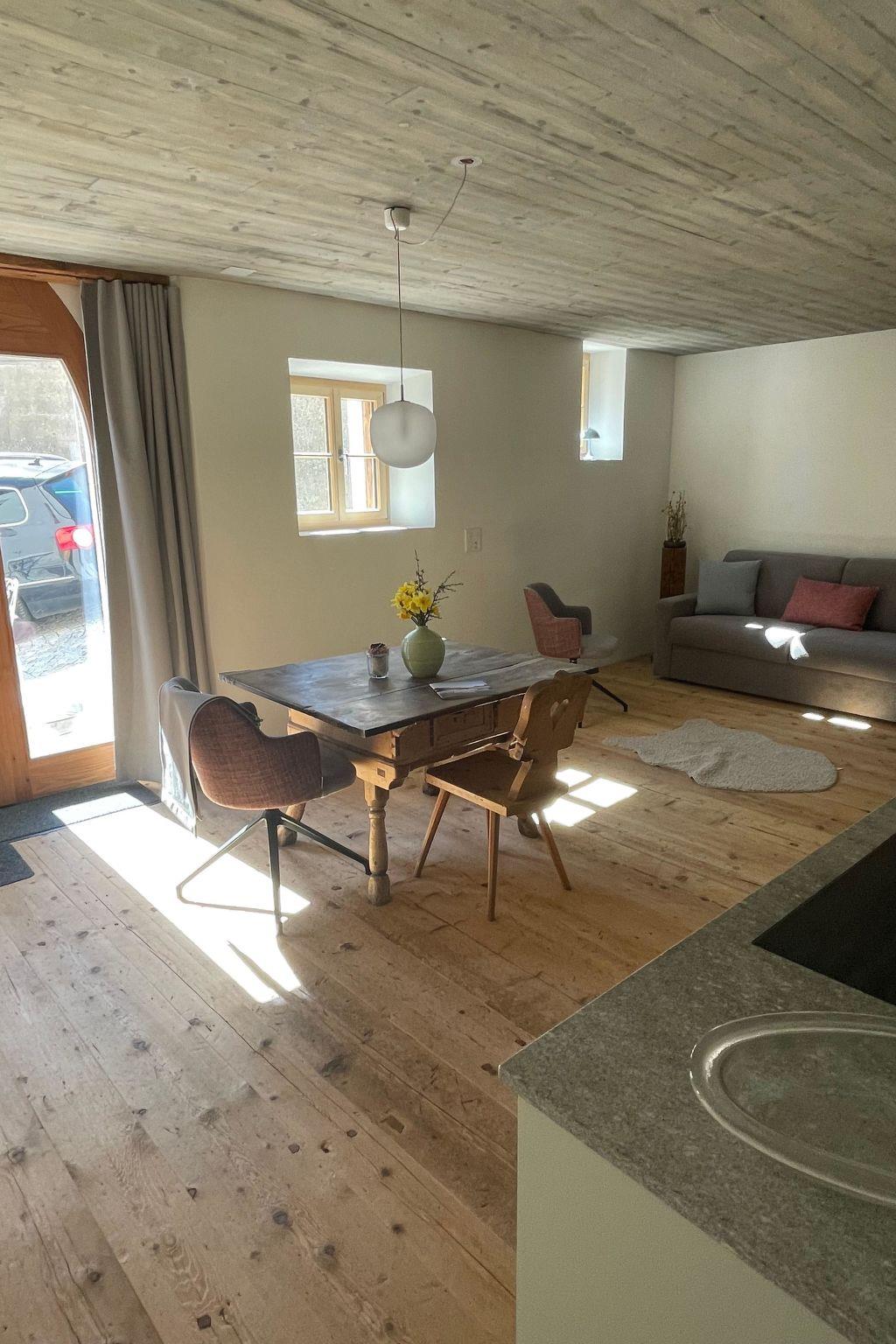 Willkommen in Ihrem persönlichen Rückzugsort im Unterengadin! Unsere liebevoll eingerichtete Ferienwohnung im schönen Scuol bietet auf ca. 50m² alles, was es für erholsame Tage in den Bergen braucht - und noch ein bisschen mehr.Die Wohnung befindet sich in einem 500 jährigen typischen Engadinerhaus, stilvoll renoviert mit viel Liebe zum Detail: massive Holzböden, eine natürliche Farbgestaltung, handverlesene Möbelstücke und moderne Akzente sorgen für ein rundum behagliches Wohngefühl.Highlights der Wohnung:Gemütliches Wohn-/Esszimmer mit bequemer Couch, rustikalem Holztisch und viel TageslichtVoll ausgestattete Küche mit allem, was Sie zum Kochen brauchenSeparates Schlafzimmer mit hochwertigem Bett und Ort zum Arbeiten.Modernes Badezimmer mit DuscheGratis Glasfaser WLAN (geeignet auch für Homeoffice), gemütliche Leseecke, stilvolle Beleuchtung und viele kleine ExtrasIdeal für 2 Personen oder 2 Erwachsene mit 1-2 KindernDie Wohnung liegt ruhig und zentral, in wenigen Gehminuten erreichen Sie das charmante Dorfzentrum, die Bäder von Scuol oder die Talstation der Bergbahnen - perfekt für Wanderer, Skifahrer, Geniesser und Ruhesuchende.?? Sommer wie Winter ein echter Geheimtipp!Wir freuen uns auf Ihre Anfrage und darauf, Ihnen einen unvergesslichen Aufenthalt im Engadin zu ermöglichen.Konditionen und ExtrasBei Langzeitbuchungen (ab 3 Wochen) bitte Spezialpreis anfragen. AusstattungBabybett, Babyhochstuhl, Lift, Wäschetrockner im Haus, Waschmaschine im Haus, WiFiDienstleistungenBike-friendly, Familienfreundlich, Haustiere auf Anfrage, Ladestationen für E-Bike, Parkplatz: Ein- und Umladeparkplatz, öffentliche Parkplätze in der Nähe zB. in Trü (sfr. 5/3 pro Tag), Skikeller/-abstellraumLageAn Velo-/Bikeroute gelegen, Entfernung Thermalbäder (in km): 0.5, Entfernung zum Golf (in km): 3 (in Vulpera), Entfernung zum Minigolf (in km): 0.2 (in Trü beim Schwimmbad), Entfernung zum nächsten Bahnhof (in km): 1.2, Entfernung zur Loipe (in km): 3, Entfernung zur Stadt-/Ortsmitte (in km): 0.5, Mit öffentlichen Verkehrsmitteln erreichbar, Nähe Bogn Engiadina, Ruhige Umgebung, Ski In / Ski Out, Zentrale Lage (im Dorf/Stadt)UnterkunftstypFerienwohnungBelegung1-4 Personen1-4 Erwachsene0-3 Kinder (0-17 Jahr(e))