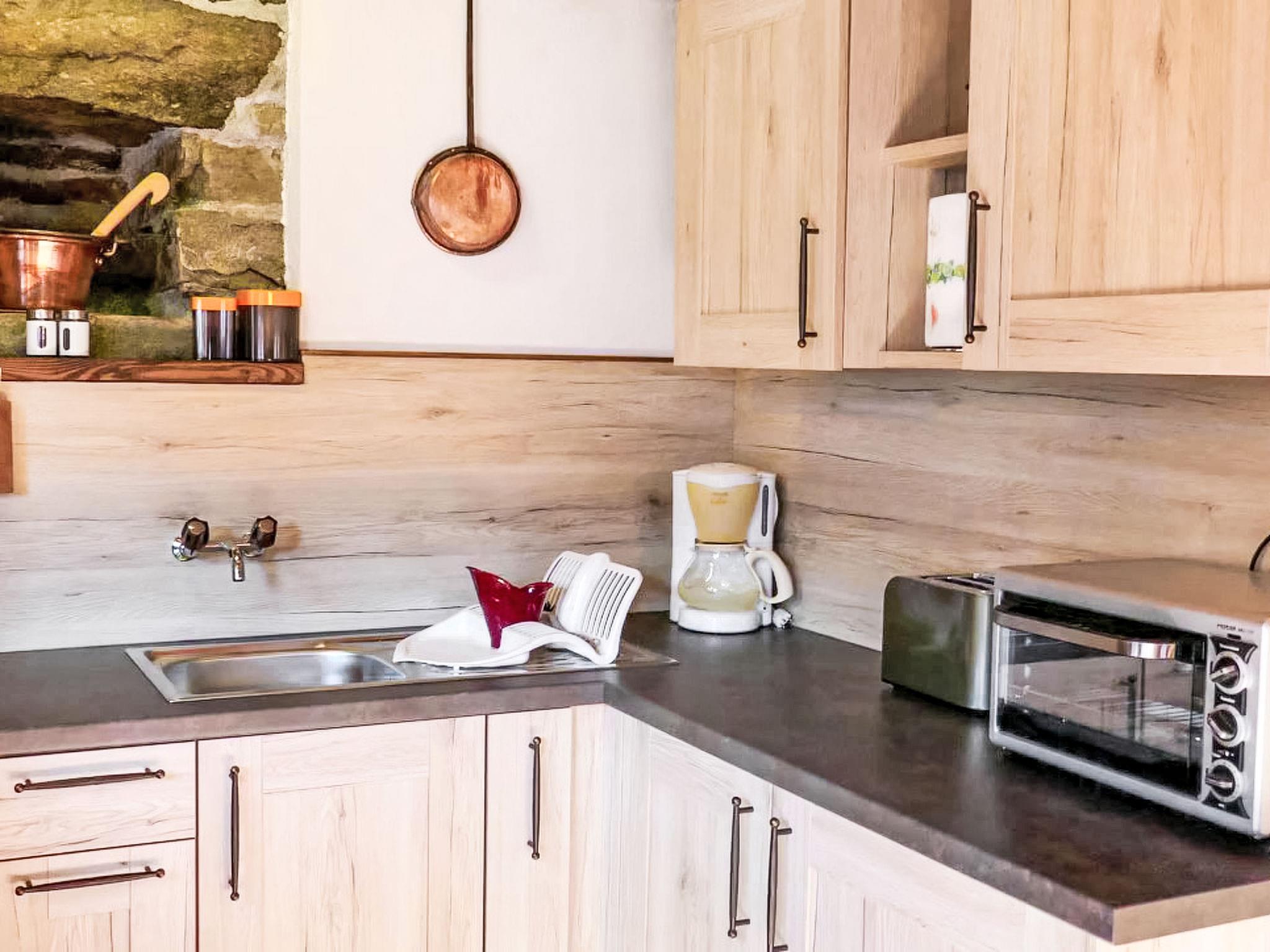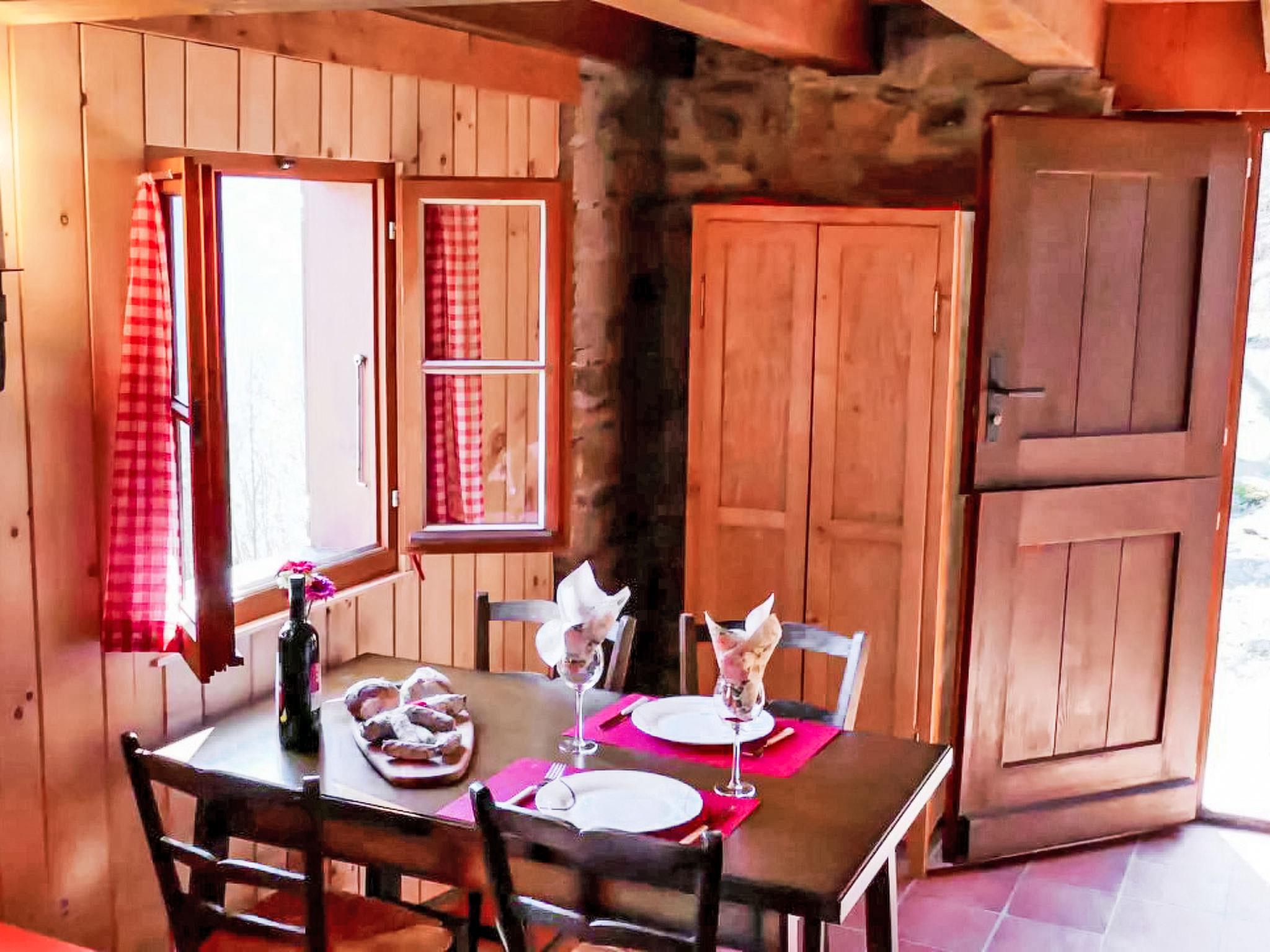 "Rustico Fey", 2-room cottage 50 m2 on 2 levels, south facing position. Comfortable and cosy furnishings: open living/dining room with open-hearth fireplace, dining table and TV (flat screen), radio. 1 room with 2 beds (90 cm, length 200 cm). Open kitchen (mini-oven, Gas stove, 3 gas rings, toaster, electric coffee machine) with bar and wood-burning stove. Exit to the patio. On the lower ground floor: (steep stair). Shower/WC. Terrace furniture, barbecue (portable), deck chairs (2). Marvellous panoramic view of the mountains, the valley and the countryside. Facilities: children's high chair, baby cot for up to 2 year olds (extra), hair dryer. Please note: non-smoking house. Maximum 1 small pet/ dog allowed. Fire extinguisher. NL-00003747