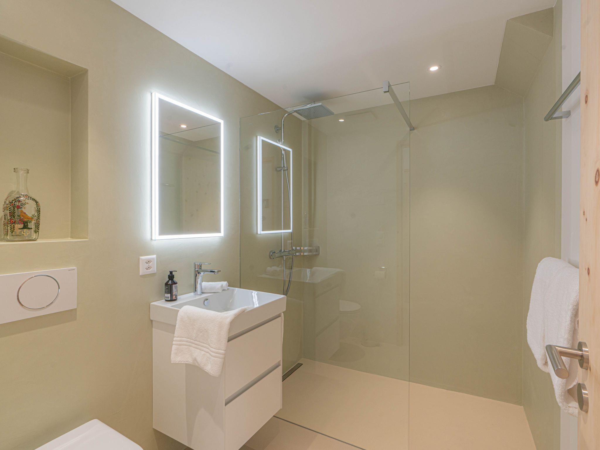 The outdoor area is characterised by the impressive mountain landscape and the proximity to nature. Although barbecues are not permitted, the surrounding area offers numerous opportunities to enjoy the fresh air and the beauty of the Swiss Alps. The ground floor location provides easy access to the flat, ideal for relaxing days surrounded by nature.