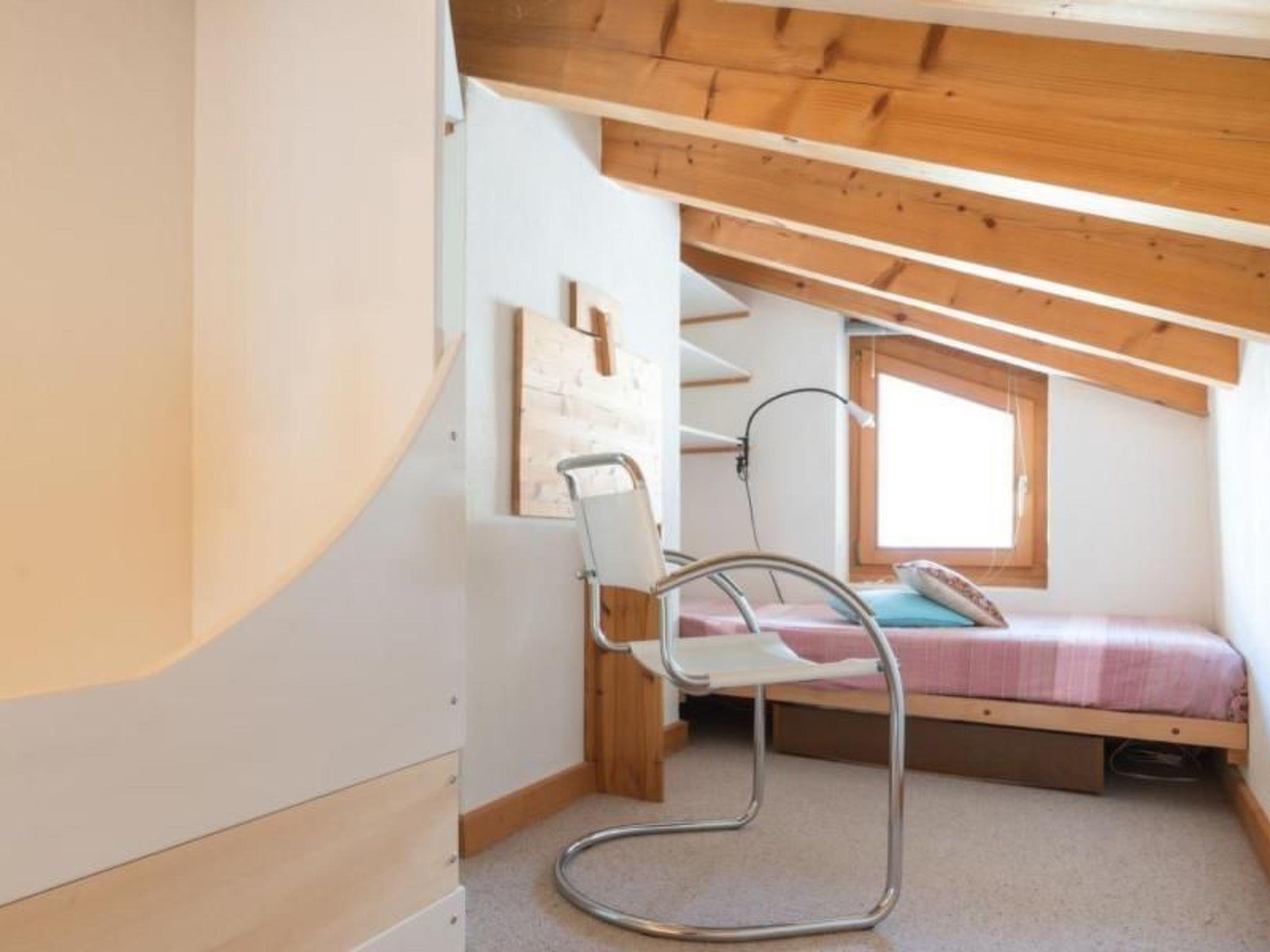 Comfortable, cosy and modernly furnished 2.5-room attic flat on the 2nd floor with gallery (62m2): Living/dining room with exposed beams, TV, DVD, radio and internet. 1 bedroom with 2 single beds. Gallery with 1 bed. Kitchen with dishwasher & Nespresso machine. Bath/shower. Balcony with dining table and four chairs with beautiful mountain view. Baby cot and high chair available, indoor parking space, underfloor heating, new flooring from 2020, washing machine/tumbler in the house. House: Small apartment house in a quiet, sunny location in Sils Maria near the VOLG shop.