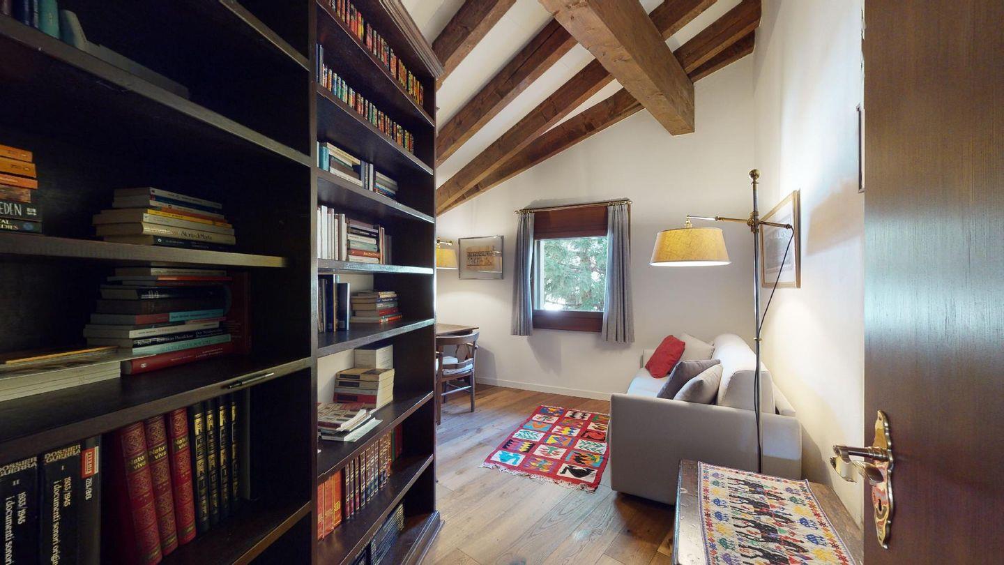 4-Zimmerwohnung im Dachgeschoss. Eingang mit Garderobe. Sehr grosses Wohnzimmer mit Essecke für bis zu 10 Personen. Das Wohnzimmer verfügt über ein Cheminée und einen Ausgang auf den Balkon mit einer wunderschönen Sicht in Richtung Sils-Baselgia. Geschlossene, ganz renovierte Küche. Separate Toilette. Doppelzimmer mit Einbauschränken und Ensuite Badezimmer mit WC/Doppellavabo/Wanne. Badezimmer mit Dusche/WC/Lavabo. Zimmer mit Einbauschränken und 2 Betten. Zimmer mit kleiner Bibliothek und Schlafsofa. 2 Garagenplätze. Haustiere sind nicht erlaubt.