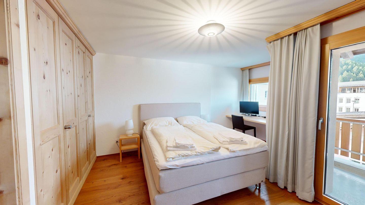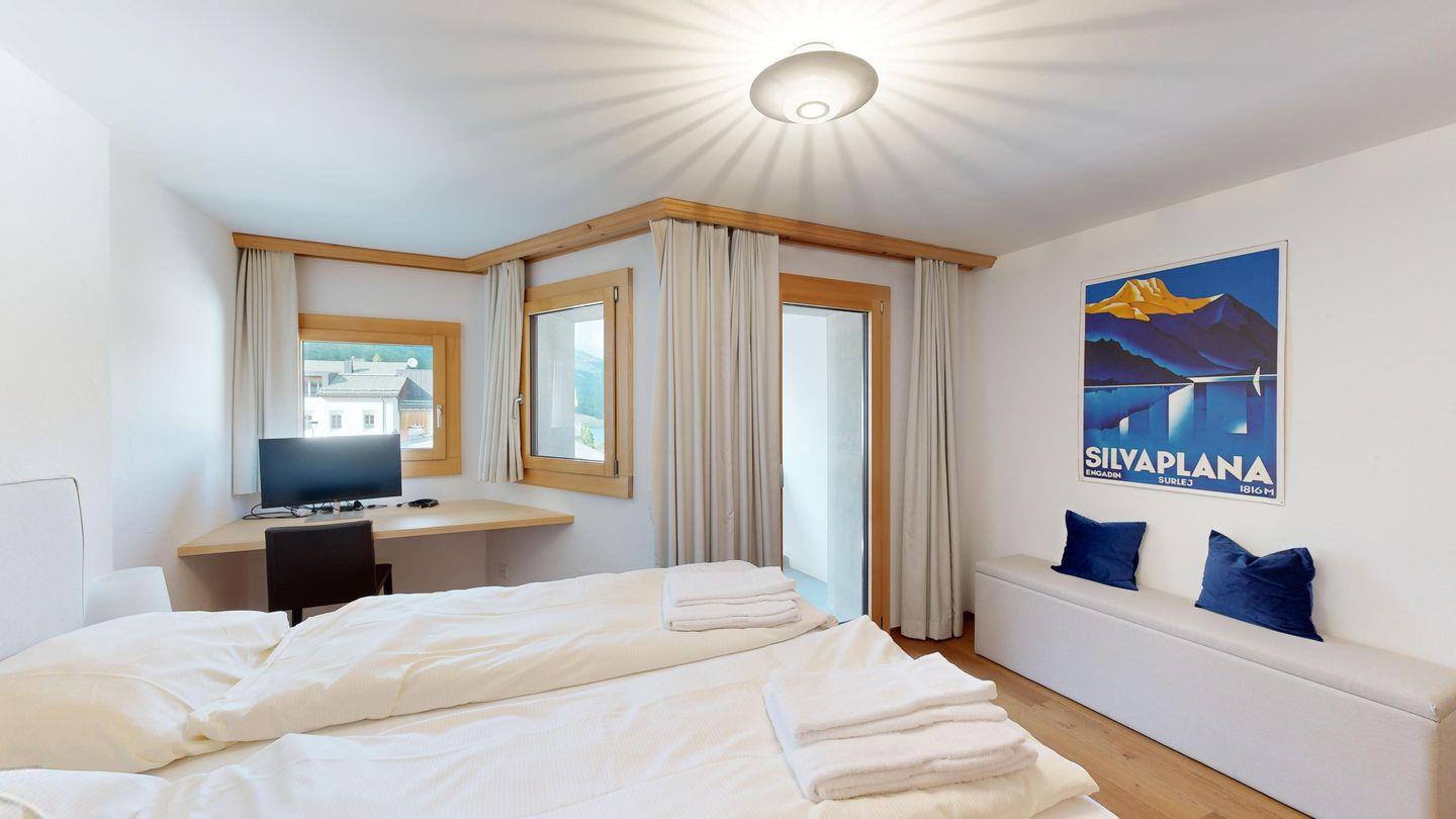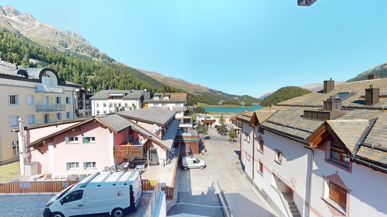 Die helle und stilvoll renovierte 2.5 Zimmerwohnung befindet sich im Herzen von Silvaplana. Sie verfügt über zwei Balkone in Richtung Nordosten und bietet eine einmalige Aussicht auf die Engadiner Seenlandschaft. Im grosszügigen und hellen Schlafzimmer befindet sich ein Doppelbett. Das von zwei Seiten zugängliche Badezimmer verfügt über eine Dusche. Die offene Küche ist komplett eingerichtet und es gibt einen grossen Esstisch für vier Personen. Das Wohnzimmer ist mit einem Sofa und einem Sessel ausgestattet. Ein Garagenparkplatz kann kostenpflichtig hinzugebucht werden, dieser verfügt über eine Ladestation für Elektrofahrzeuge.