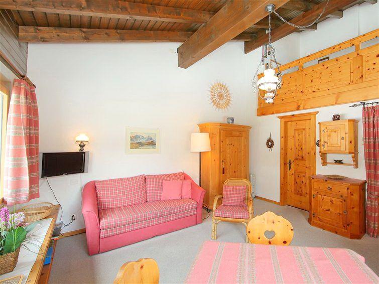 Helles und gemütliches Apartment auf 2 Stockwerken mit gepflegt eingerichtetem Wohn- und Esszimmer in Arvenholz mit Sofa- und Fernsehecke. Auf der Galerie finden Sie zwei Einzelbetten. Im Eingangsbereich der Wohnung befindet sich die Küche. Ein Badezimmer mit Dusche steht ebenfalls zur Verfügung. Waschmaschine und Trockner im Untergeschoss des Hauses zur Mitbenützung vorhanden. Ski- und Skischuhraum sind ebenfalls im Haus vorhanden. Ein Garagenparkplatz kann kostenlos genutzt werden. In der Garage steht eine Ladestation für Elektroautos zur Verfügung.
