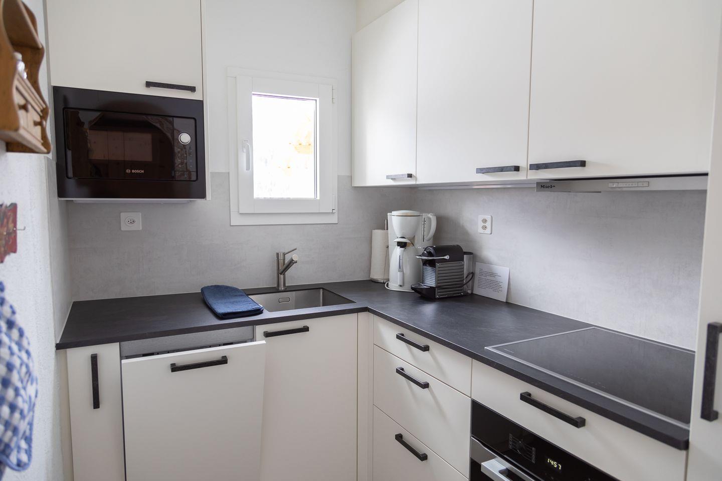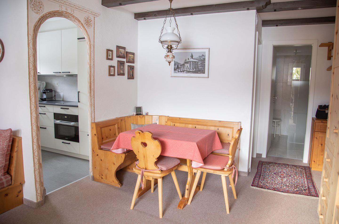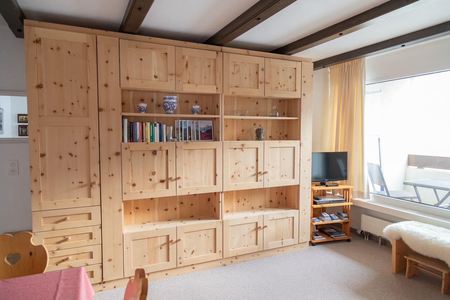 2½-Zimmerwohnung im 1. Stock. Wohnzimmer mit Essbereich, Balkon und TV. Schlafzimmer mit Doppelbett. Küche mit Herd, Ofen, Kühlschrank und Geschirrspüler. Badezimmer mit Dusche, WC und Lavabo. Ein Parkplatz in der Garage. Haustiere sind nicht erlaubt. Gemeinschaftliche Waschküche. Nichtraucherwohnung.