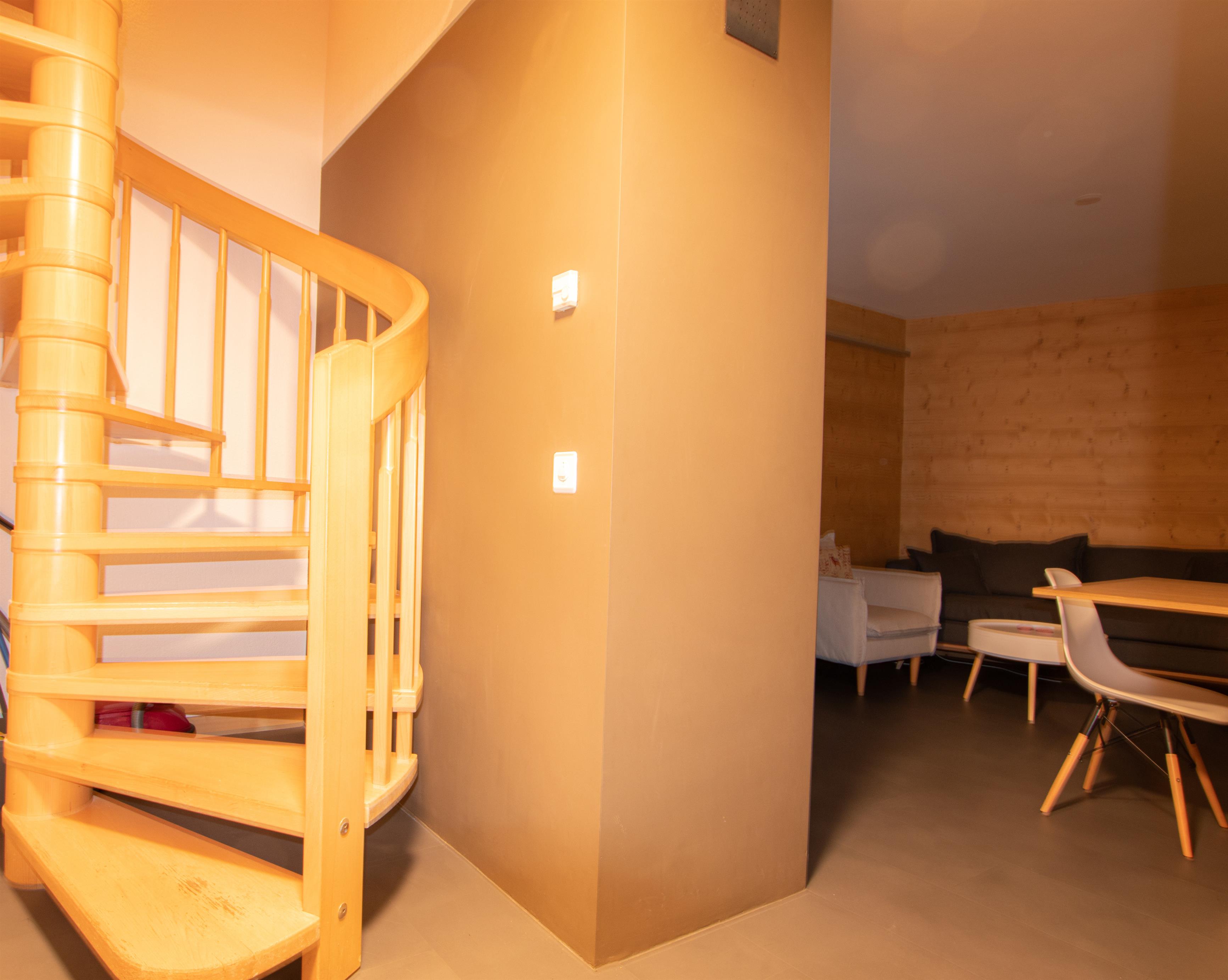 Sehr hübsches, gemütliches 5-Zimmer-Reihenchalet über 3 Etagen, ca. 120 m². Erdgeschoß: Diele mit Garderobe. Wohnraum mit Sitzgruppe, Essplatz, Ostbalkon, Kamin und Küchenzeile mit 4 Ceranfelder, Backofen, Geschirrspüler, Kühlschrank, Kaffeemaschine, Wasserkocher, Fondue-Rechaud, Raclette-Gerät. Dusche/WC. Eine Wendeltreppe führt in die 1. Etage: Flur. Großes Schlafzimmer mit franz. Bett. Doppelzimmer. Ostbalkon. Bad/WC. Dachgeschoß (Schrägen): 2x Zweibettzimmer.