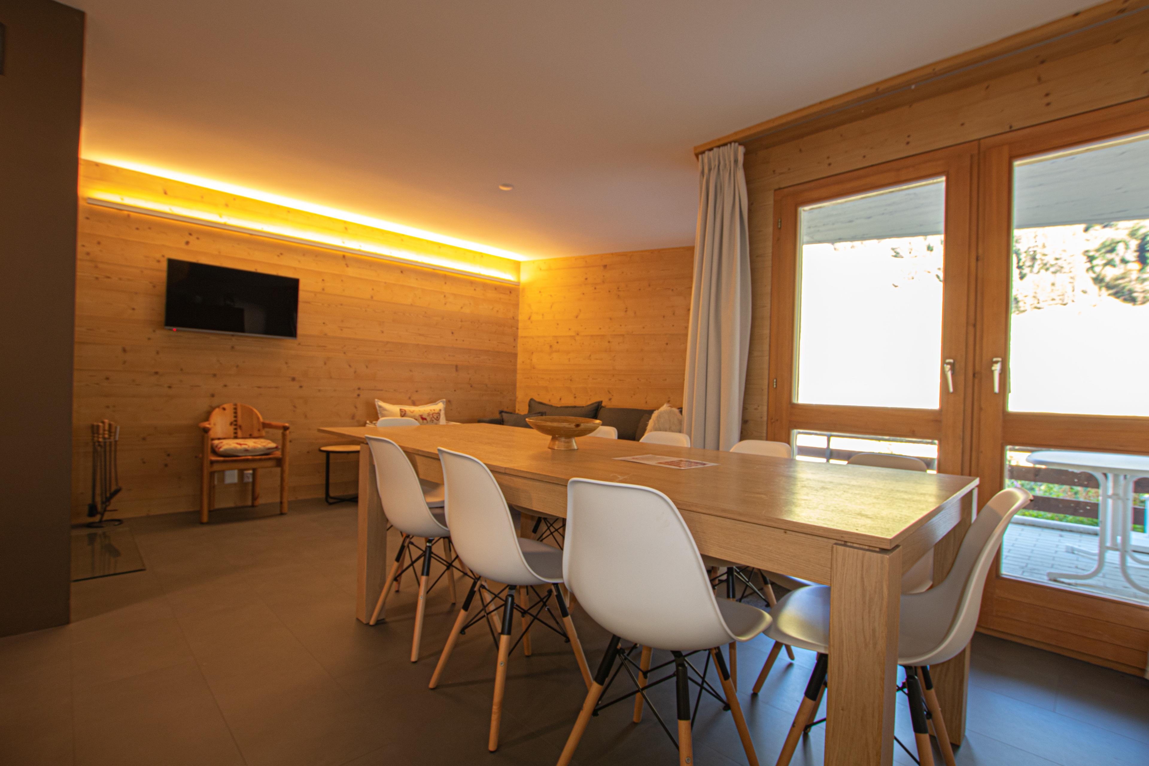Das Reihenchalet verfügt über einen Kamin (Holz im Supermarkt erhältlich), Kabel-TV, DVD-Player, Internetempfang als WLAN (kostenlos), Fußbodenheizung.
