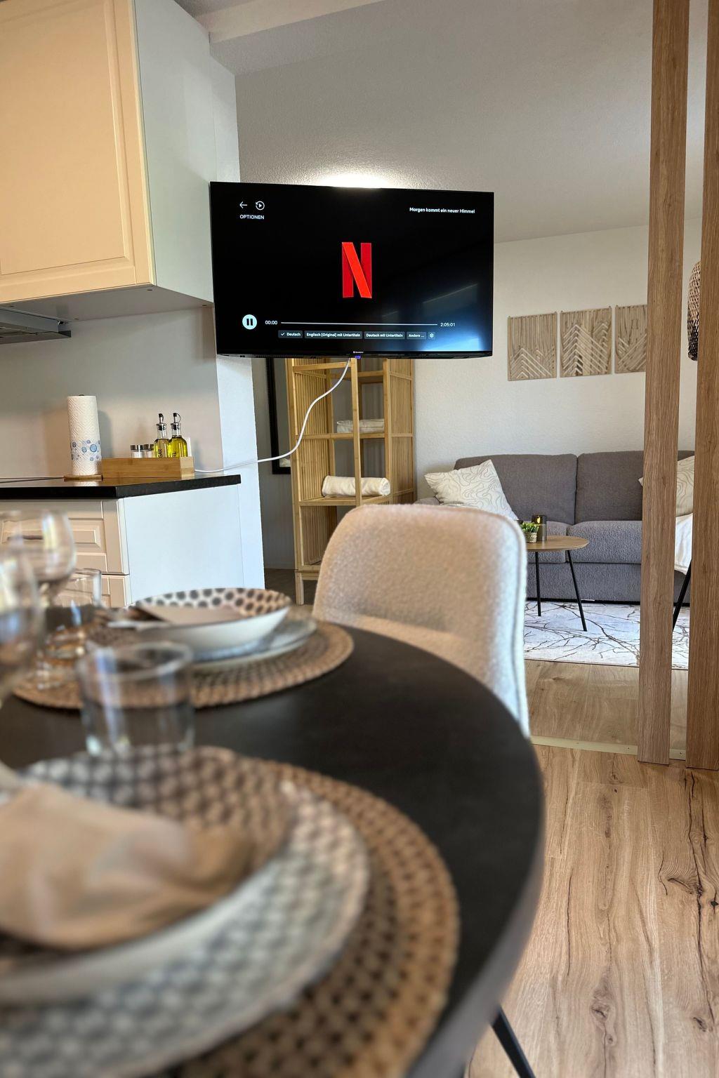 The interior of the flat is practically equipped to make your stay as comfortable as possible. An important feature is the fully equipped kitchen with ceramic hob, capsule coffee machine, dishwasher and kettle, which leaves nothing to be desired. The amenities and well thought-out layout ensure that small families or groups can feel right at home here.
