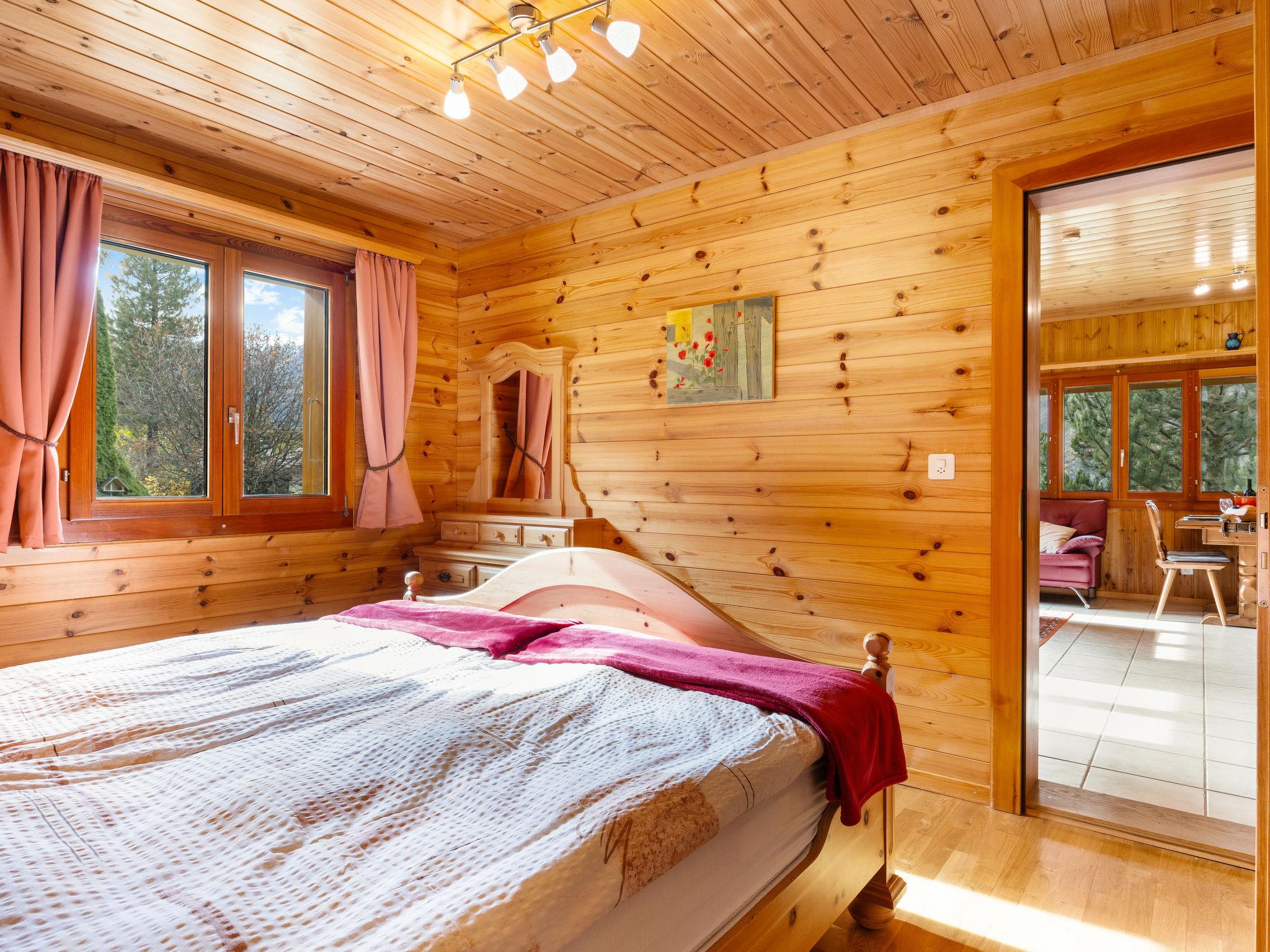 3-room chalet 72 m2. Rustic and cosy furnishings: living/dining room with open-hearth fireplace and satellite TV (flat screen), radio. Exit to the patio. 2 rooms, each room with 2 beds. Open kitchen (oven, dishwasher, 4 ceramic glass hob hotplates) with dining table. Shower/WC. Electric heating, wood heating, boiler (130 litres). Large patio 150 m2. Terrace furniture, barbecue. Very beautiful view of the mountains, the valley and the countryside. Facilities: washing machine, hair dryer. Internet (WiFi, free). Garage at 200 m. Please note: non-smokers only. 'No Pets allowed.