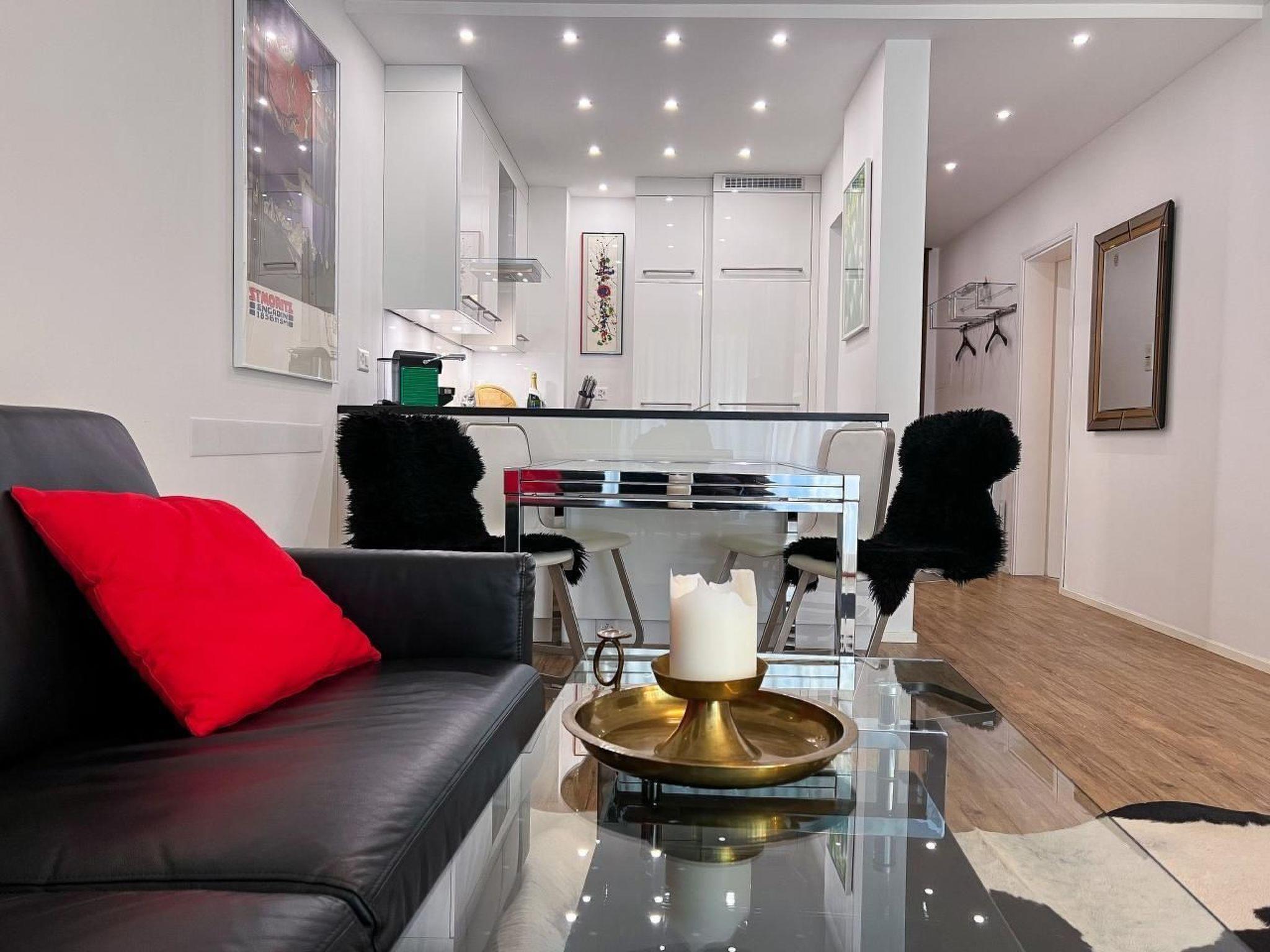 Welcome to St. Moritz! Recently renovated, it offers everything a vacation heart desires: stylish furnishings, TVs in the living room and bedroom and a modern and top-equipped designer kitchen with dishwasher, Nespresso machine and many other amenities. In the bedroom there is a double bed. In the living room a very comfortable sofa bed for 2. An underground parking space and a balcony with great view are also part of the 65sqm apartment.