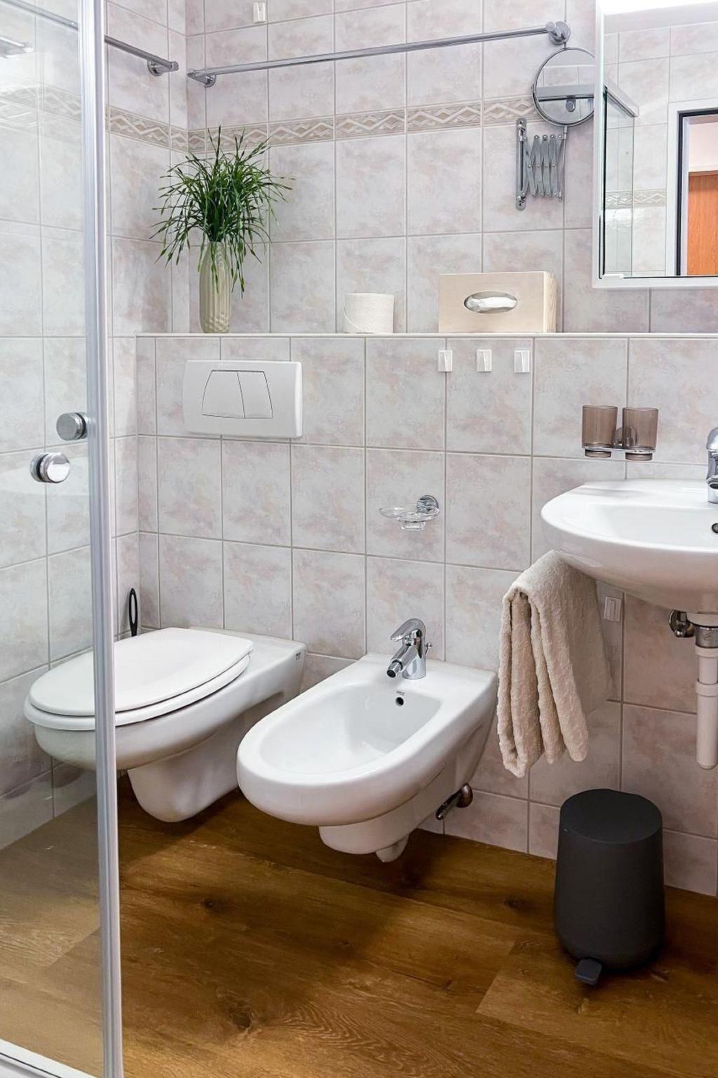 The interior reflects the comfort and elegance that make a stay here unforgettable. Three cosy bedrooms with double beds invite you to dream, while two modern bathrooms provide refreshment and relaxation. The flat is equipped with underfloor heating throughout and an electric fireplace to create a cosy atmosphere. In the fully equipped kitchen, you can freely develop your cooking skills. The spacious living room, which offers a panoramic view of the mountains, is the ideal place to relax and socialise.