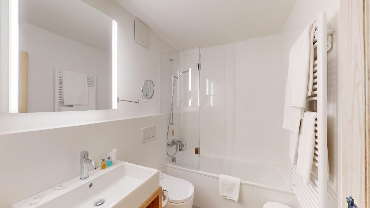 Gemütliches, hochwertig renoviertes Studio im 4. Stock mit Balkon und schöner Aussicht auf Muottas Muragl. Wohn- /Esszimmer mit Schrankbett sowie Sofaecke, die auch als Schlafsofa genutzt werden kann. Separate Küche mit Durchreiche. Bad mit Dusche/Badewanne und WC. Lift vorhanden. 1 Tiefgaragenparkplatz im Gebäude (Höhe: 2.10 m, Breite: 2.00 m).