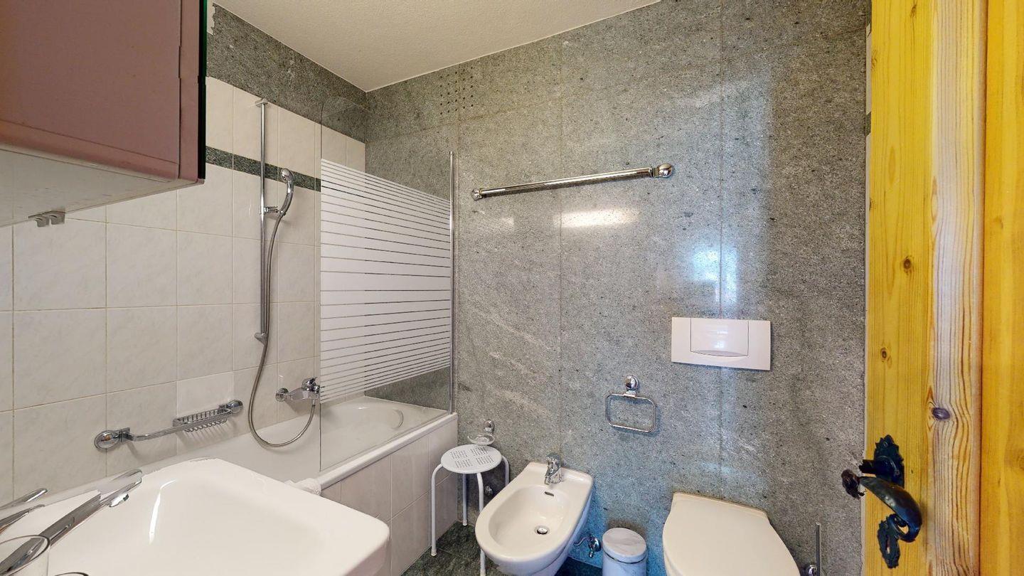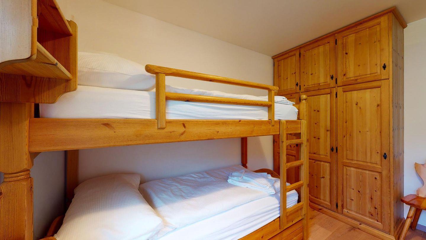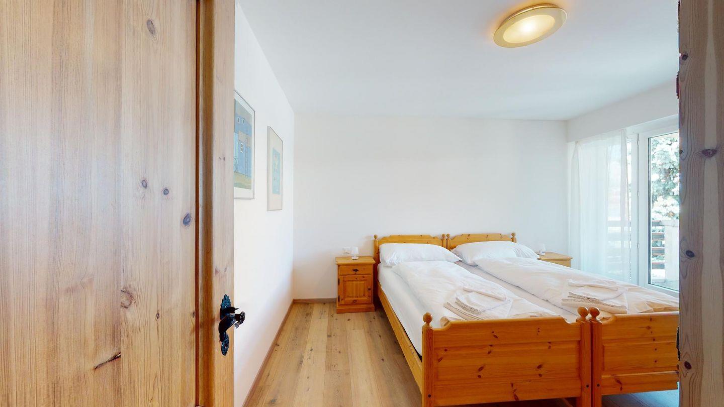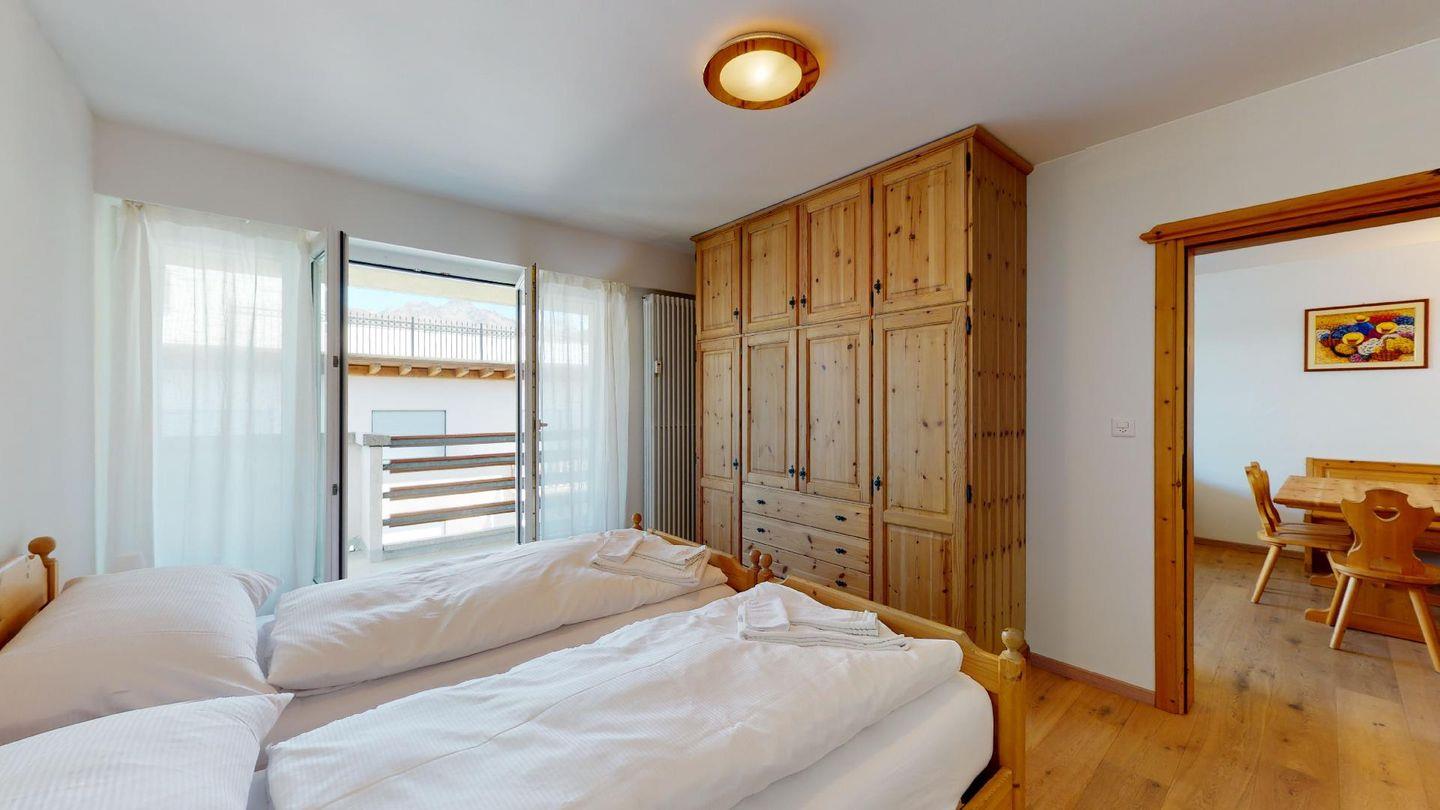 3-Zimmerwohnung im 4. Stock mit Lift. Geschlossene Küche mit Herd, Ofen, Geschirrspüler. Wohnzimmer mit TV, Internet, Essecke und Balkon. Ein Doppelschlafzimmer (zwei Einzelbetten). Ein Schlafzimmer mit Etagenbett. Badezimmer mit Wanne, WC, Bidet und Lavabo. Aussenparkplatz. Haustiere sind erlaubt. Nichtraucherwohnung.