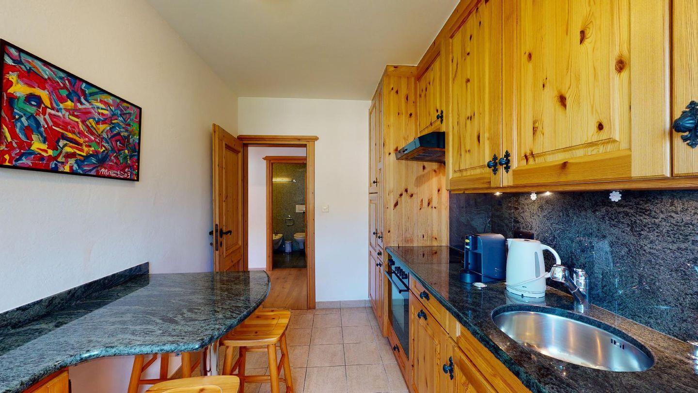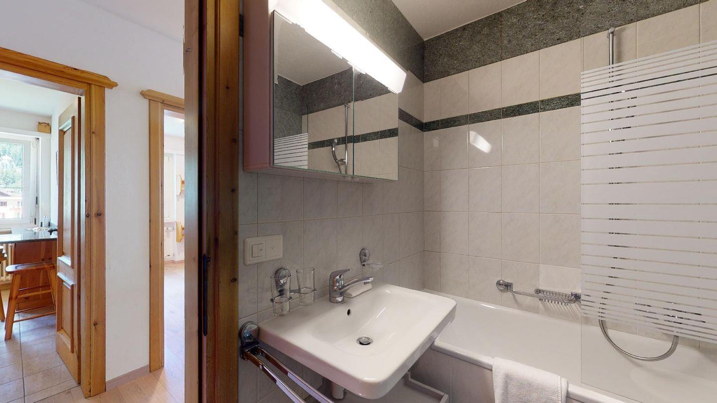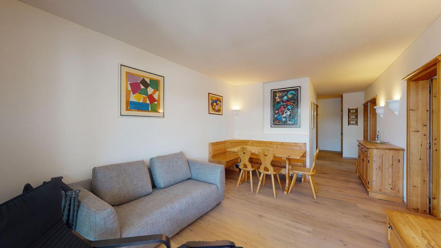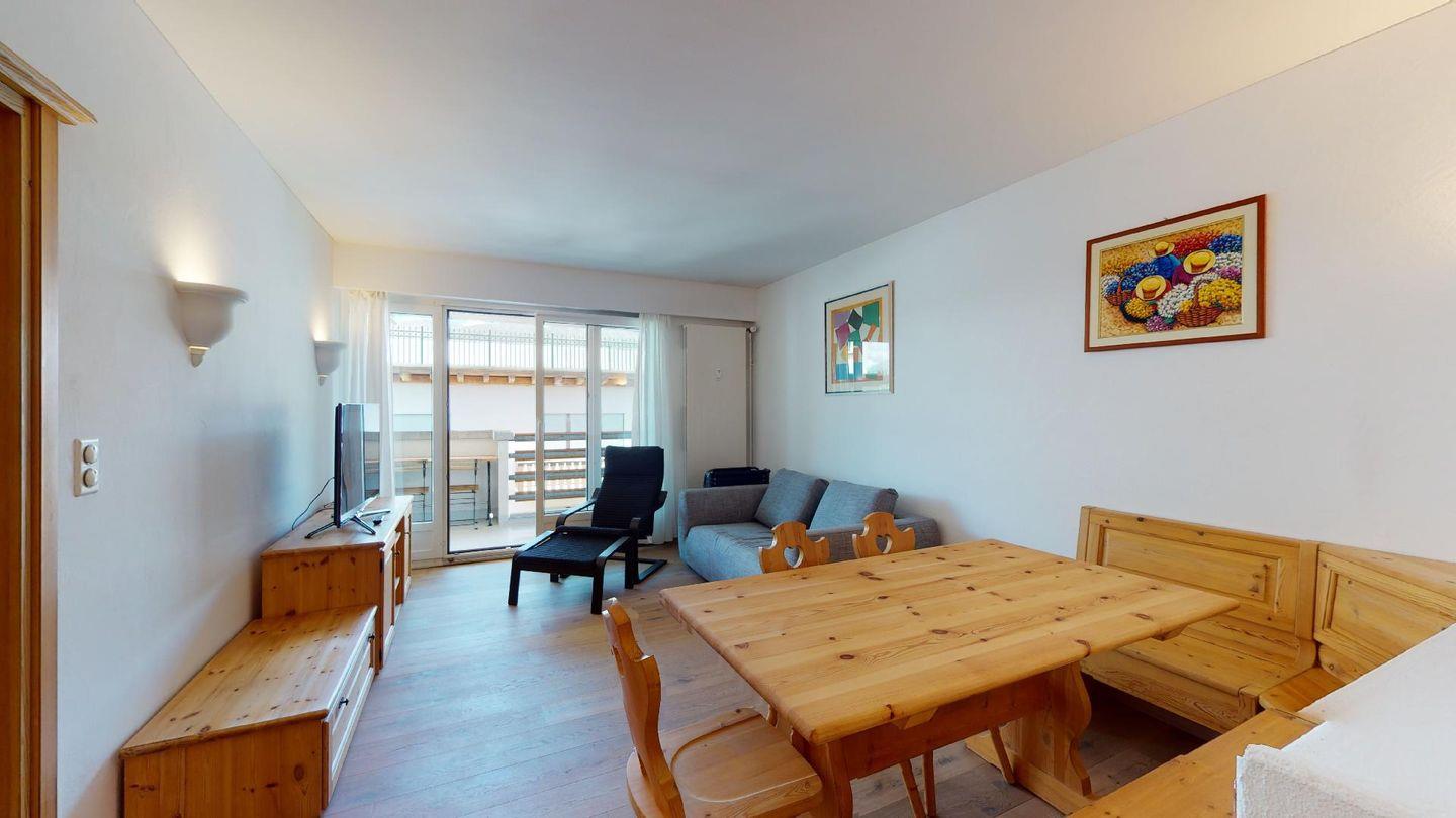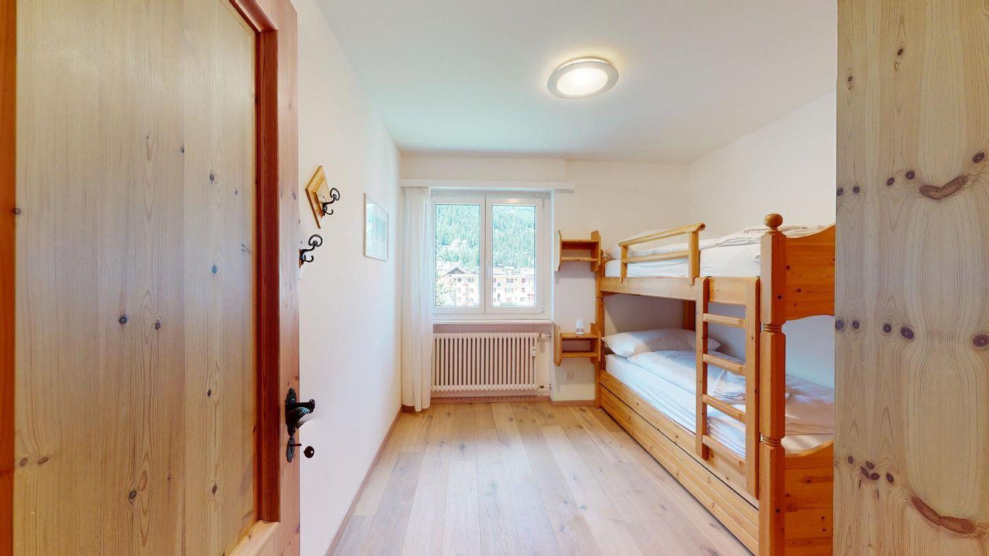 3-Zimmerwohnung im 4. Stock mit Lift. Geschlossene Küche mit Herd, Ofen, Geschirrspüler. Wohnzimmer mit TV, Internet, Essecke und Balkon. Ein Doppelschlafzimmer (zwei Einzelbetten). Ein Schlafzimmer mit Etagenbett. Badezimmer mit Wanne, WC, Bidet und Lavabo. Aussenparkplatz. Haustiere sind erlaubt. Nichtraucherwohnung.
