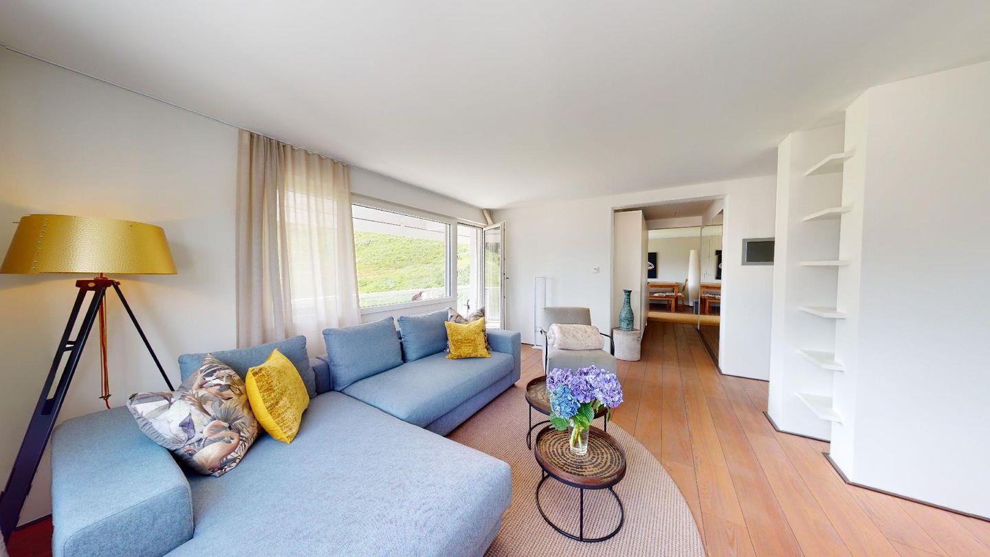 Luxuriöses, stilvolles 4.5-Zimmer-Ferienappartement im 3. Stock. Harmonisch eingerichtet, widerspiegelt es modernen Design, Luxus und komfortablen Wohnraum für Ihren wohlverdienten Urlaub. Der offene Wohn- und Essbereich ist schön gestaltet und bietet viel Platz zum Entspannen. 3 Doppelschlafzimmer, zwei davon mit ensuite Badezimmer. 1 Dusche/WC und ein Gäste WC mit Waschmaschine/Tumbler. Balkon mit Traumsicht. Lift. 2 Garagenparkplätze und Skiraum.