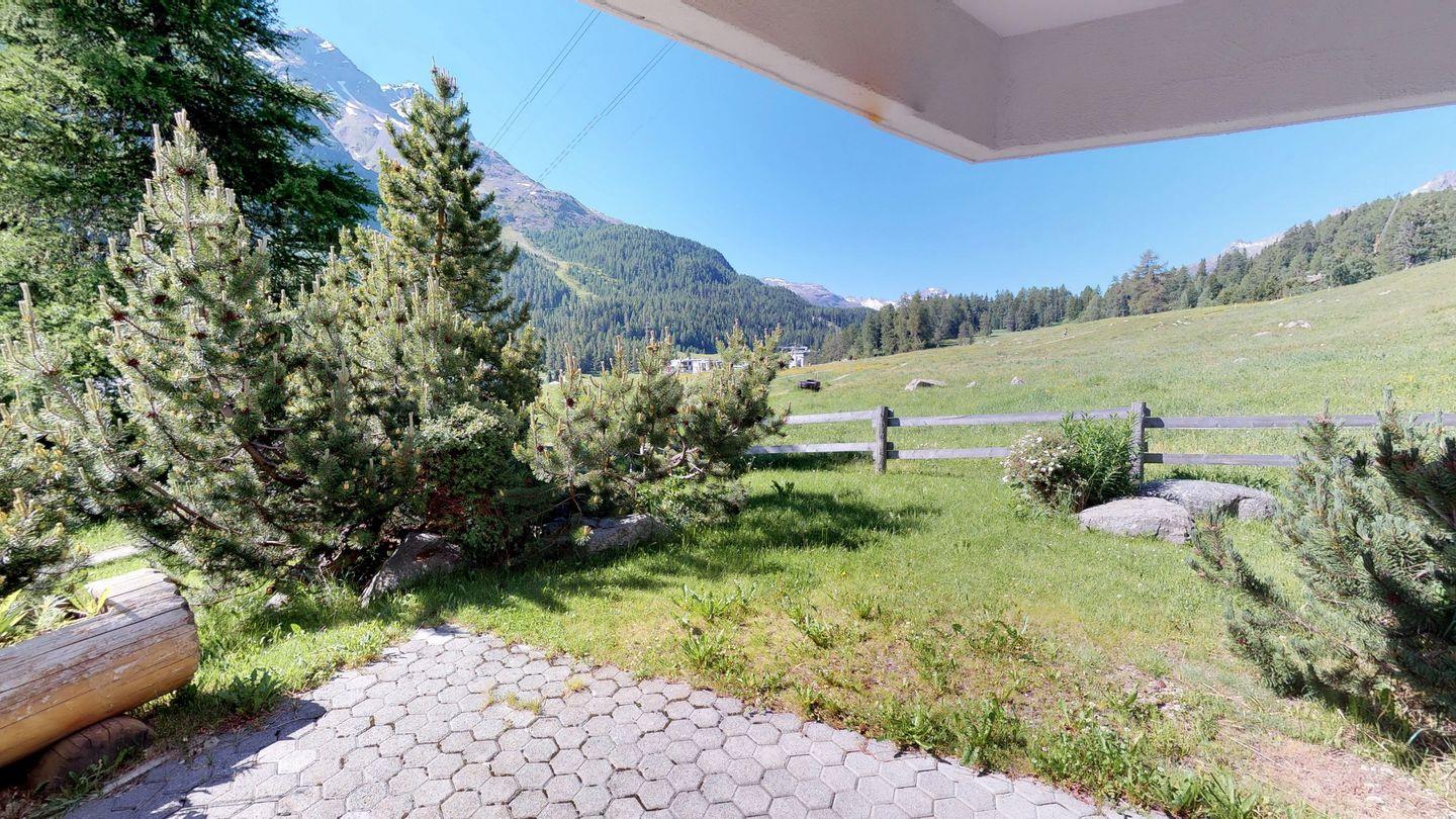 Die Ski-In/Ski-Out-Lage ist eine Rarität in St. Moritz. Einkaufsmöglichkeiten, Restaurants sowie der Supermarkt Coop sind in etwa 5 Minuten zu Fuß erreichbar.
