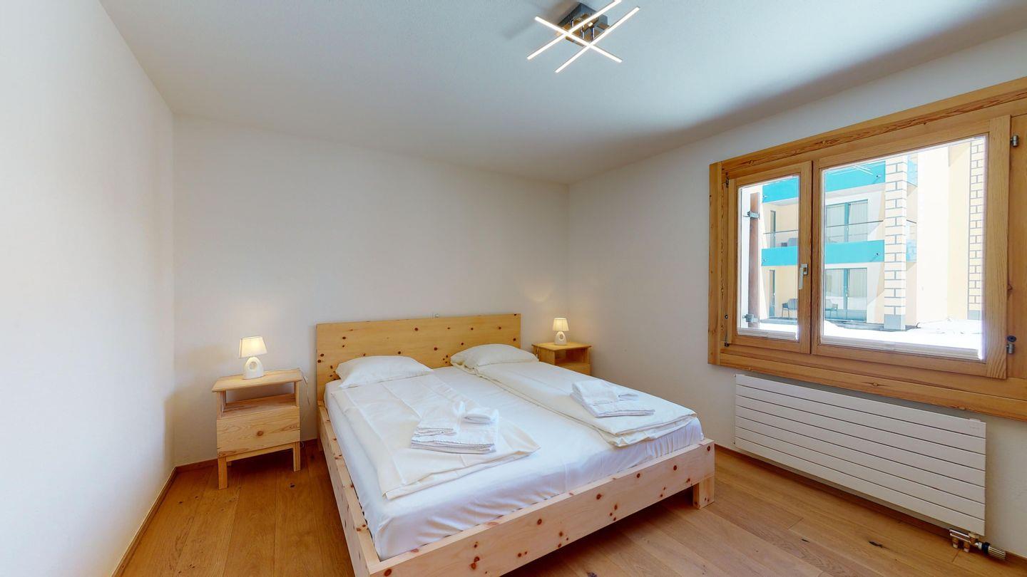 Die Wohnung verfügt über ein grosszügiges und helles Wohnzimmer mit einem Sofa, Fernseher, Esstisch sowie einer modernen, offenen Küche mit hochwertigen Materialien und neuen Geräten. Das Schlafzimmer ist mit einem Doppelbett ausgestattet, und das stilvolle Badezimmer bietet eine Badewanne. Eine zusätzliche Schlafmöglichkeit für eine Person bietet das Sofabett im Wohnzimmer. Vom Wohnzimmer aus gelangen Sie auf die Terrasse, die eine herrliche und sonnige Aussicht mit Nachmittags- und Abendsonne bietet. Eine gemeinschaftliche Waschküche steht zur Verfügung, und ein privater Abstellraum befindet sich direkt vor dem Wohnungseingang. Ein Garagenparkplatz kann kostenpflichtig dazugebucht werden.