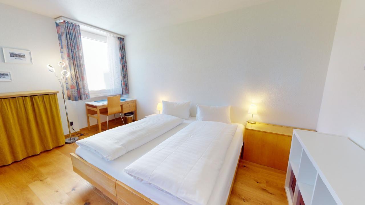 Grosszügige und einladende 2.5 - Zimmer-Ferienwohnung im 3. Obergeschoss. Eingang mit separater Küche. Wohn- /Esszimmer mit integrierten Schrankbetten 80 x 200. Überdachter Balkon. Bad mit Dusche, separates Doppelschlafzimmer. Im Ferienhaus befindet sich ein Lift. 1 Parkplatz in Garagenbox. Fitnessraum zur öffentlichen Nutzung befindet sich im Ferien-Apartmenthaus.