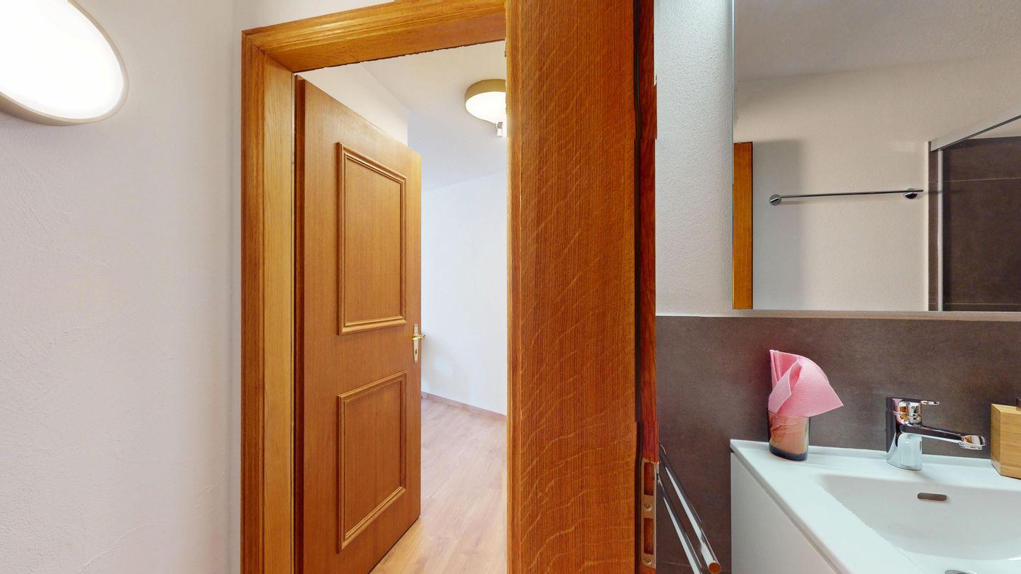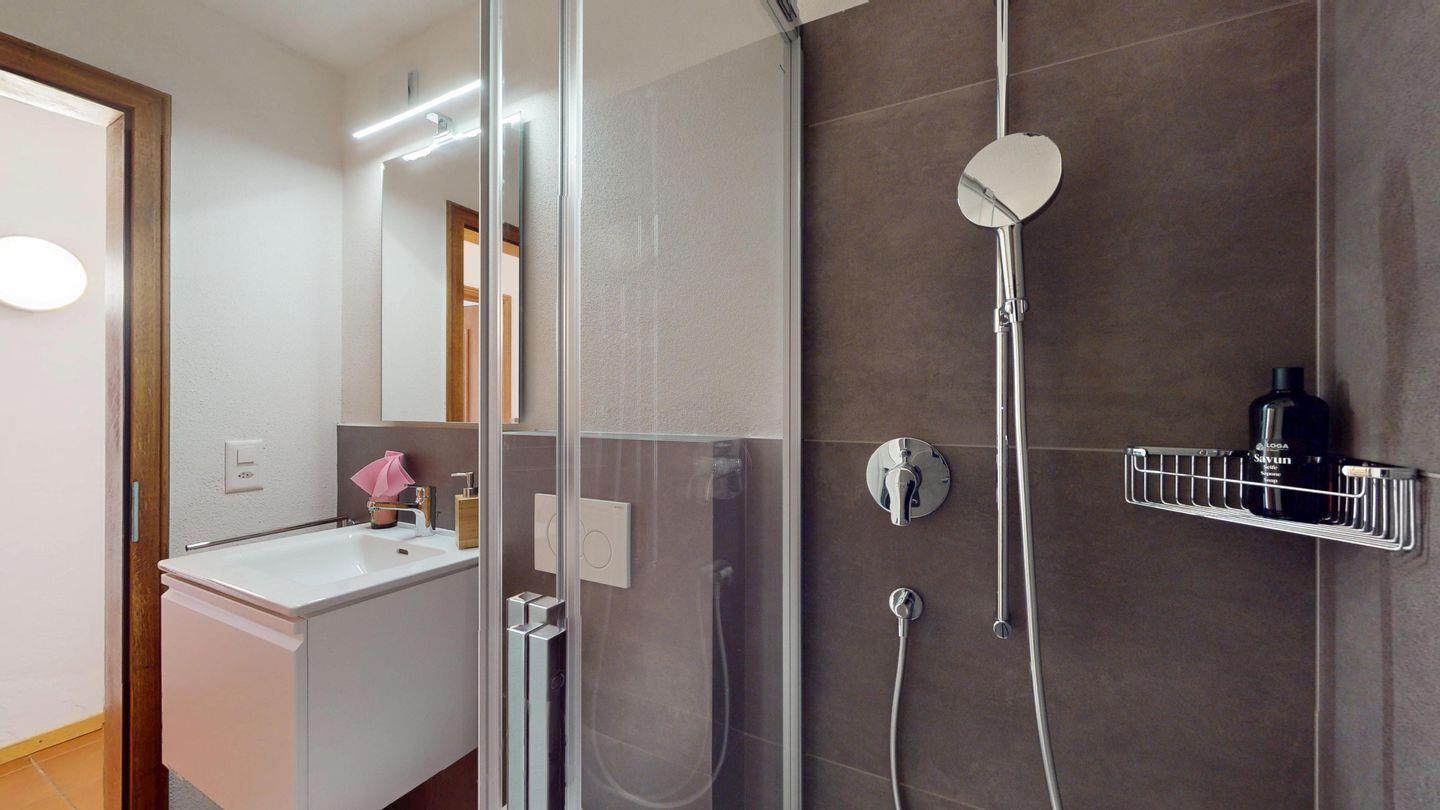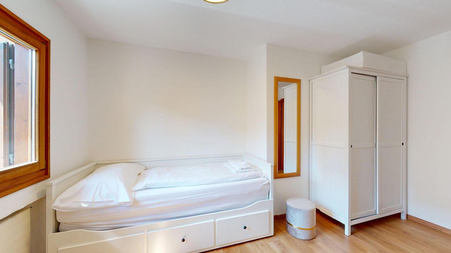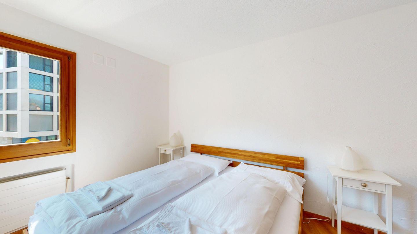3½-Zimmerwohnung im 2. Stock, ca. 90 m2. Entree mit Garderobe. Wohnzimmer mit Essecke und Kamin. Balkon gegen Süd/Ost mit Seeblick und Küche mit Ofen, Kühlschrank und Abwaschmaschine. Ein Doppelzimmer mit Balkon und Bad/WC/Lavabo/Bidet. Ein Zimmer mit einem Einzelbett, welches zu einem Doppelbett ausgezogen werden kann. Dusche/WC/Lavabo. Radio, TV, Internet und Telefon. Komfortable Möblierung. Garagenplatz. Lift. Skiraum und Waschküche zur gemeinsamen Benützung. Haustiere sind nicht erlaubt.